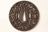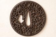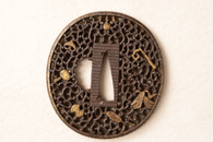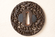 鉄地 南蛮鐔 丸形 透彫 金象嵌