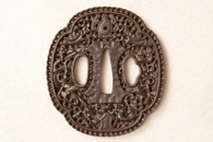 鉄地 南蛮鐔 長丸形 透彫 金象嵌