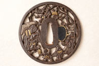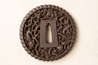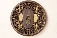 鉄地 広東鐔 丸形 透彫 金象嵌