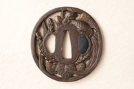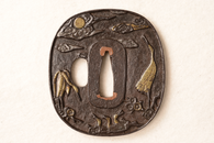 鐔 1枚 笄 1本 縁・頭・目貫 各1点 古美濃 烏金地 高彫 色絵 函館市指定有形文化財