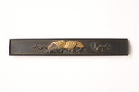 小柄 1本 目貫 2点 烏金地 高彫 色絵 裏板金 函館市指定有形文化財