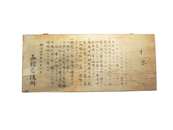 博物場入口に掲出された掲示。開場時間・入場料・入場規則などが明記されている。