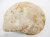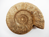 個体の一部破損,放射肋が発達する密巻きの円盤状殻で腹面に深い溝がある。 イギリス 産