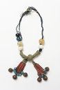 収集地:樺太西海岸 多蘭泊,チョーカー 木綿製飾り布にガラス玉と金属製垂れ飾り縫い付け,国指定重要有形民俗文化財「アイヌの生活用具コレクション」