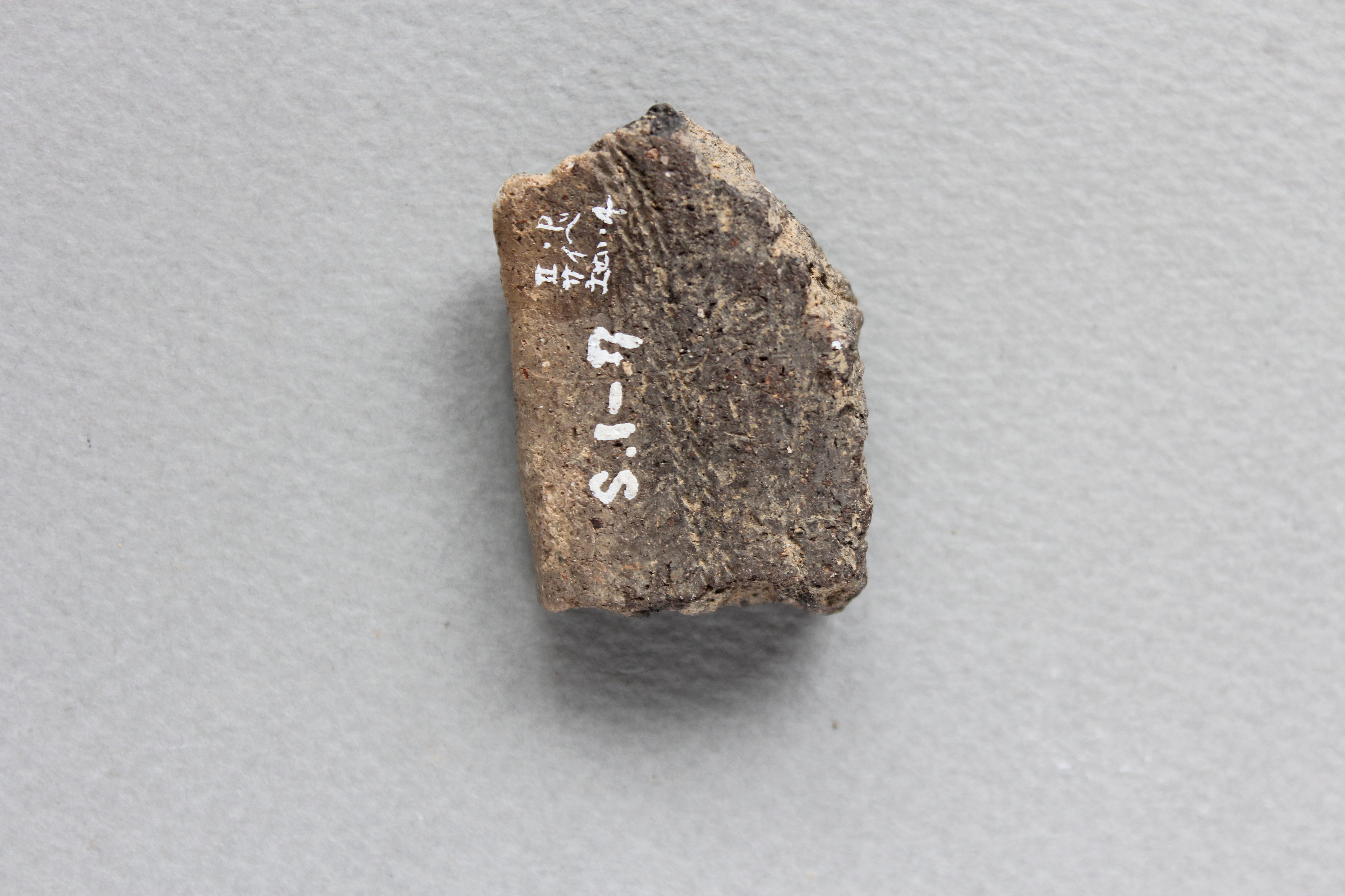 板状の胴部に撚り紐の側面圧痕。乳の表現有り。