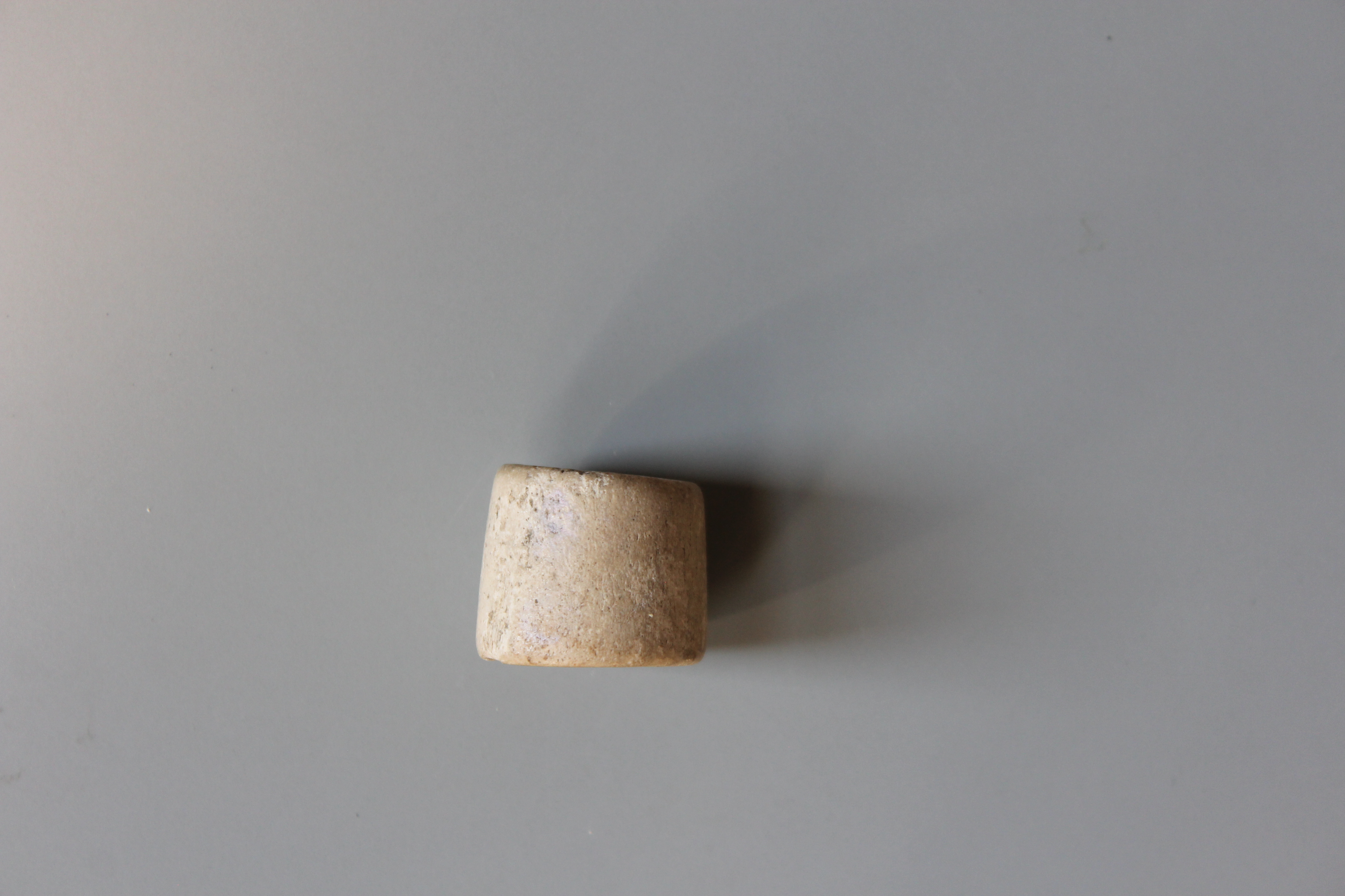 内部が空洞,台形で管状の製品。両端の断面は面取りされている。栓の口かもしれない。