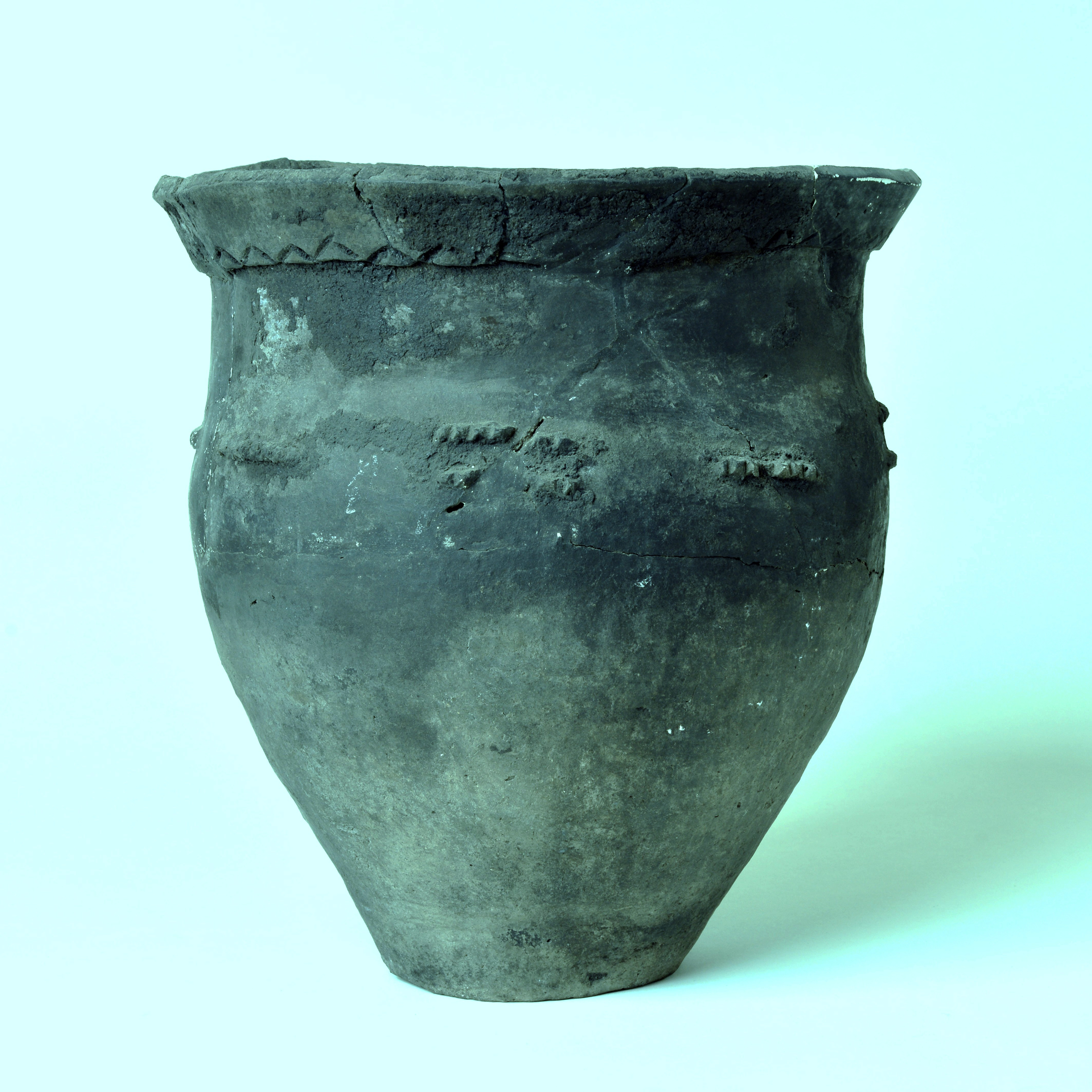 口縁一部欠。刻文,貼付文