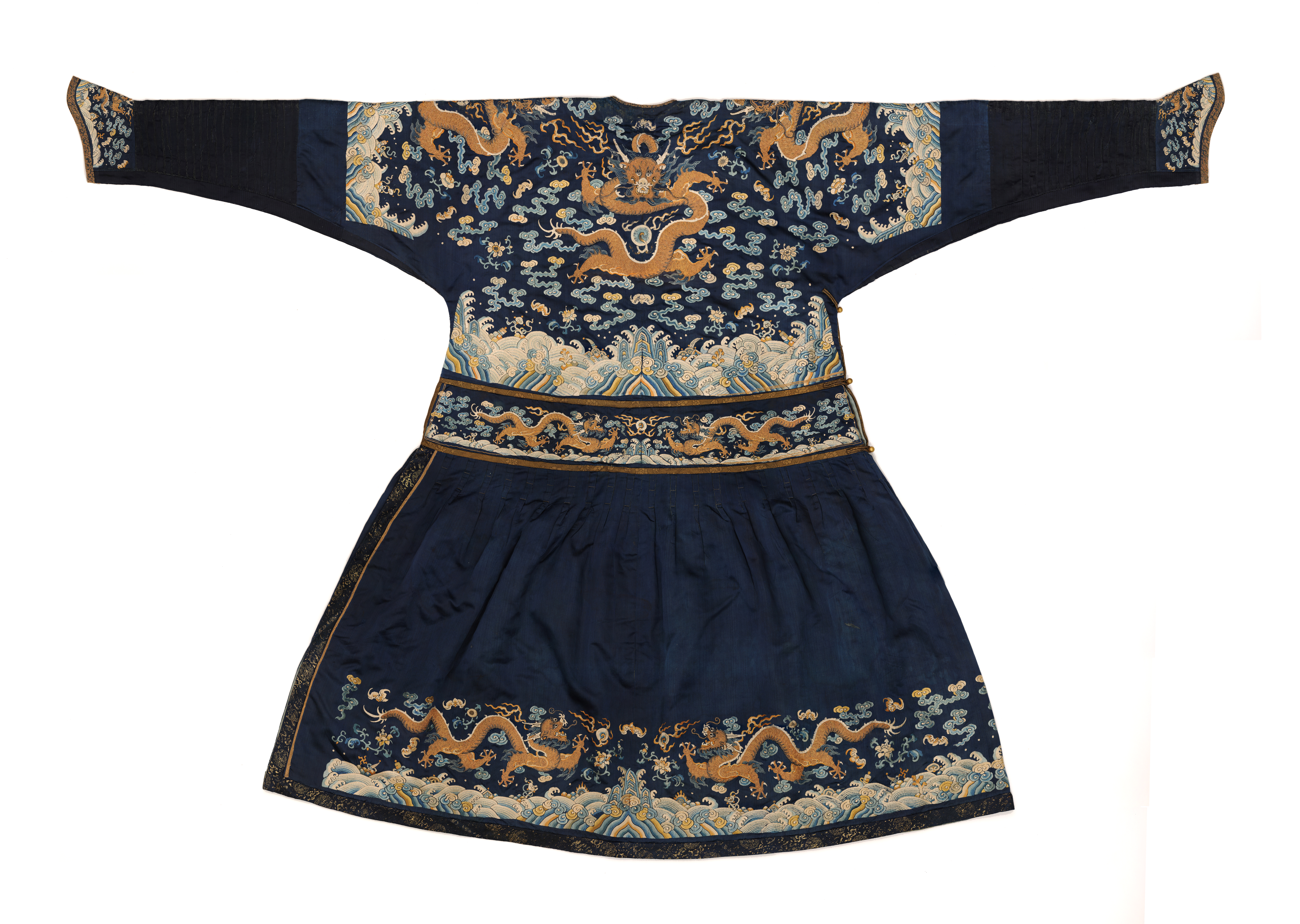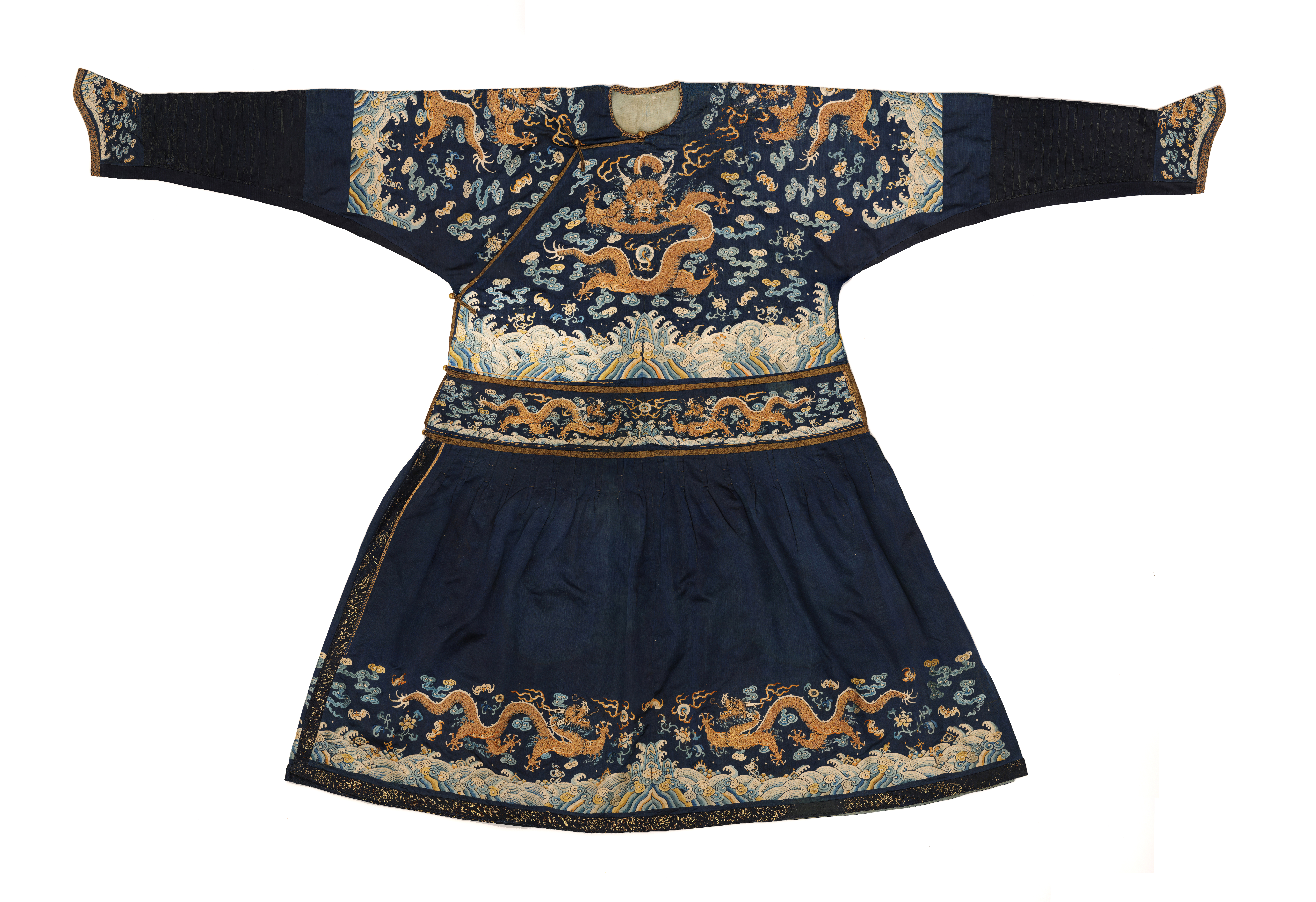 収集地:北海道 日高, 五爪の龍 模様刺繍 1989年京都国立博物館内宇佐見国宝修理所にて修復