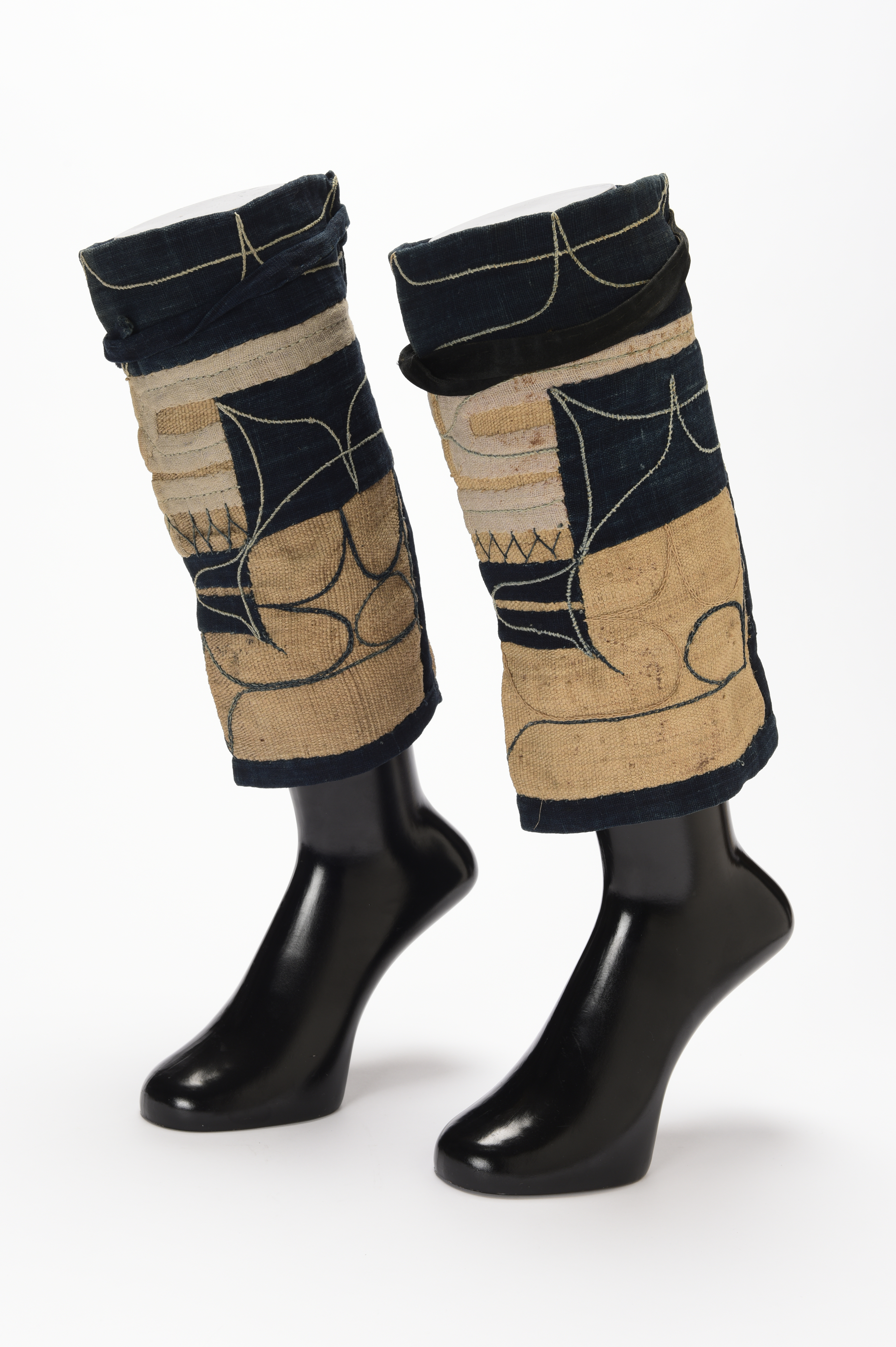 収集地:北海道 厚岸,一足 紺・白木綿切伏 色糸刺繍 紺木綿製紐付