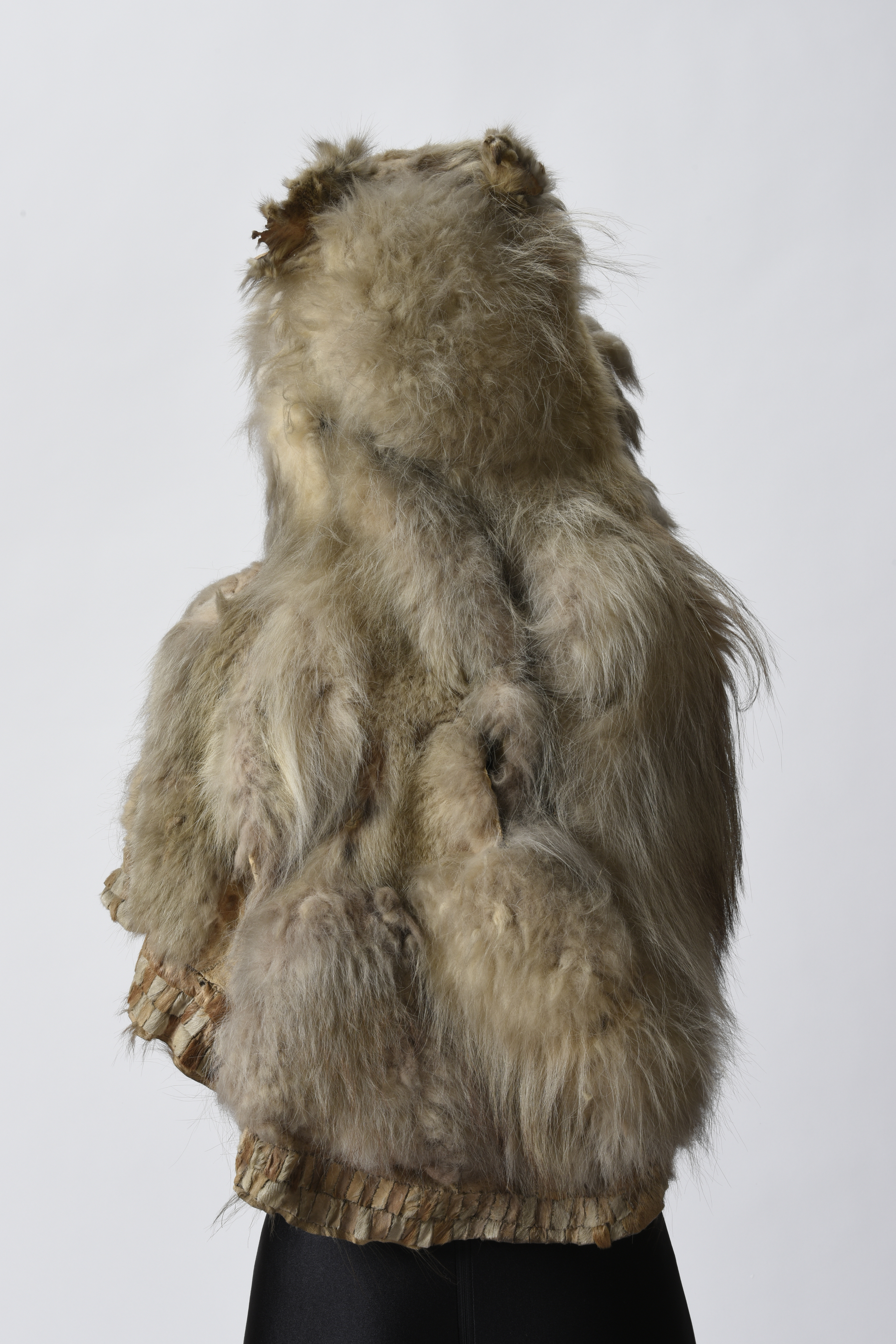 収集地:中部千島 ウルップ島,狩猟の際の擬態用 目玉部分にガラス玉縫付 爪残存