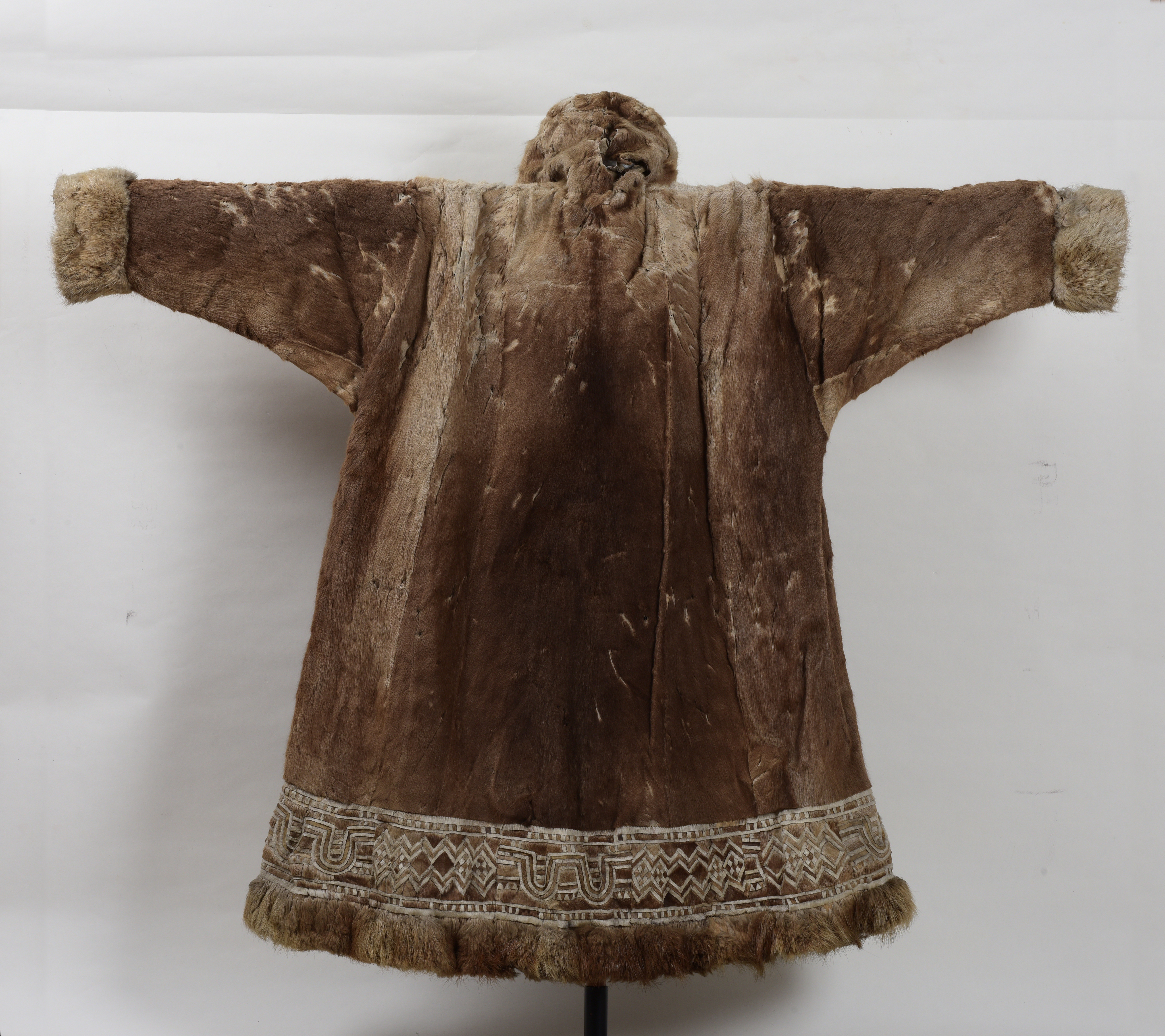収集地:ロシア ペトロパブロフスク,2枚合わせ フード付 裾に色糸刺繍