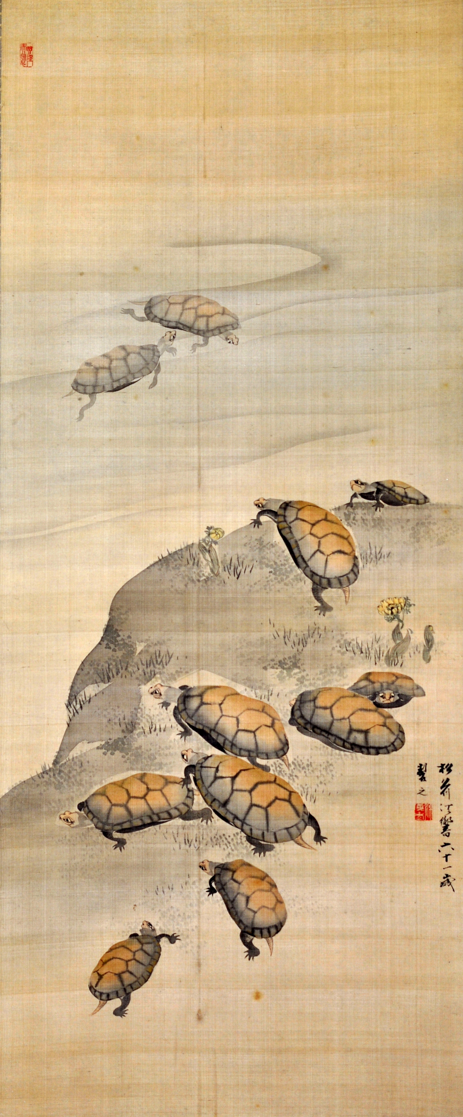 軸装 絹本淡彩 双幅(鶴図・亀図) 款記:「松前波響六十一歳製之」 印章:白文方印「源廣年」 関防印:朱文方印「曾経天覧」