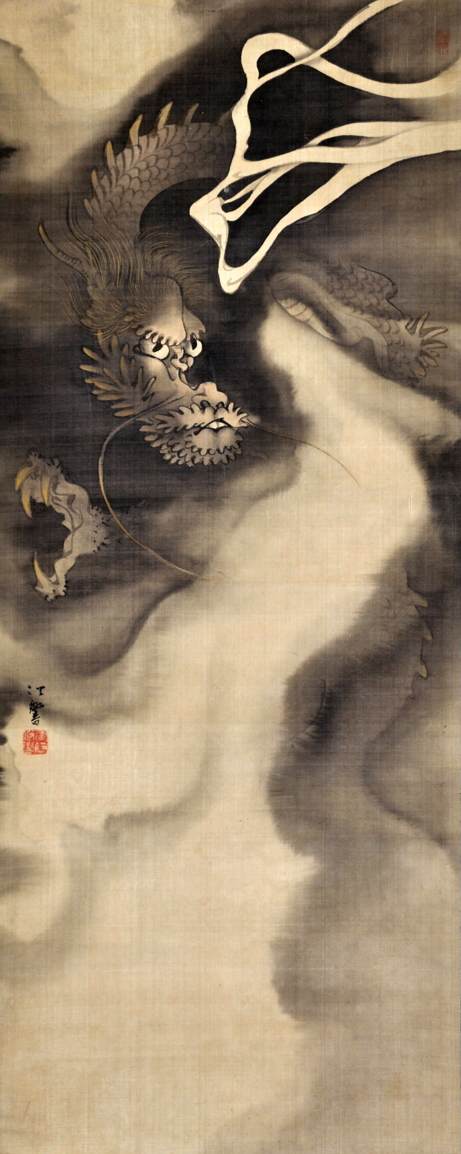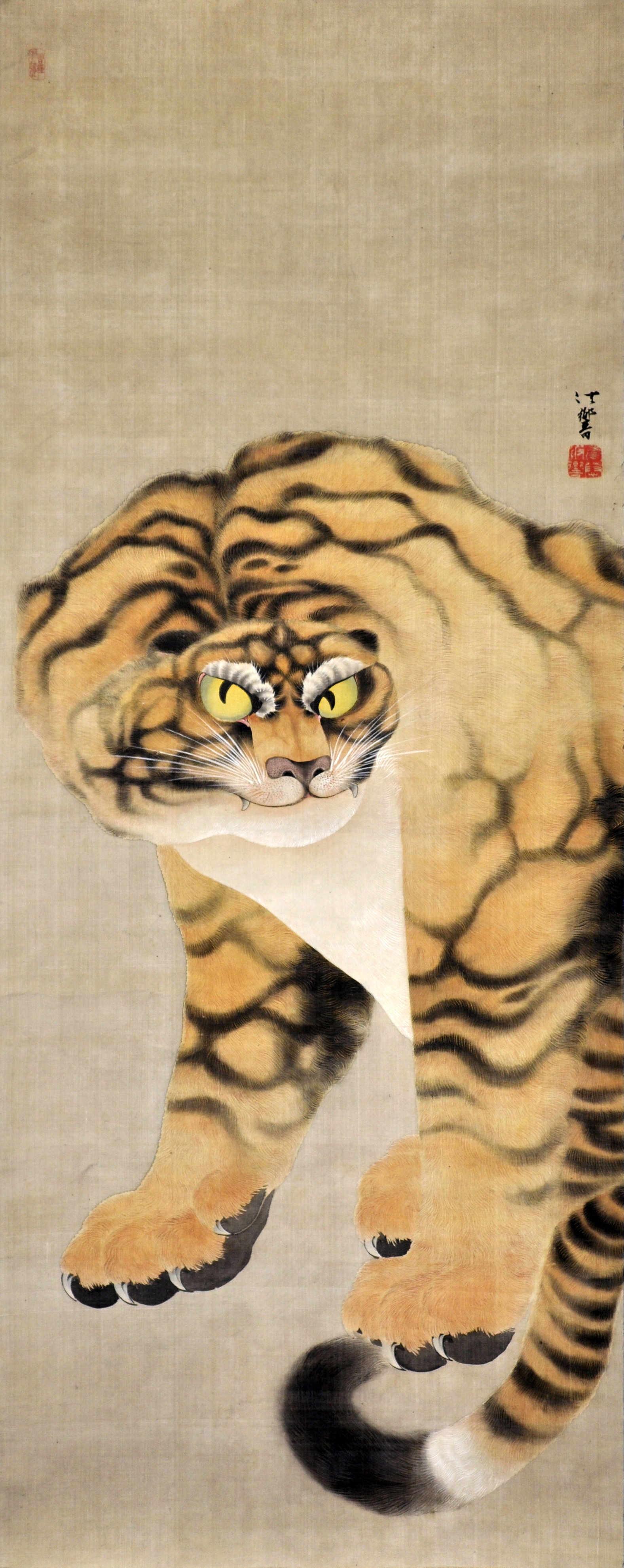 軸装 絹本着色 双幅(龍図・虎図) 箱入 落款:「波響」 印章:白文方印「画陰波響」 関防印:朱文方印「曾経天覧」