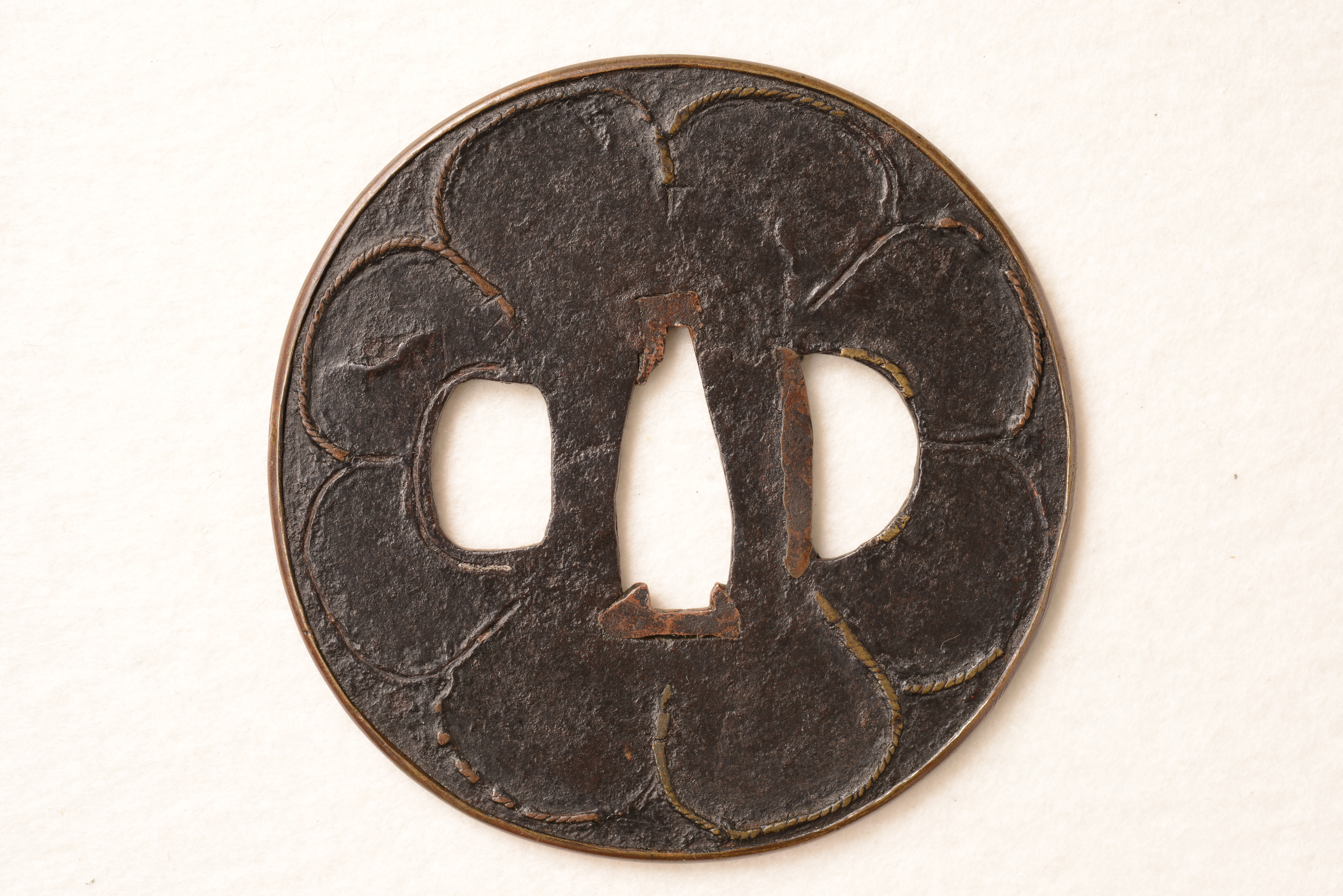 鉄地 丸形 真鍮象嵌 真鍮覆輪