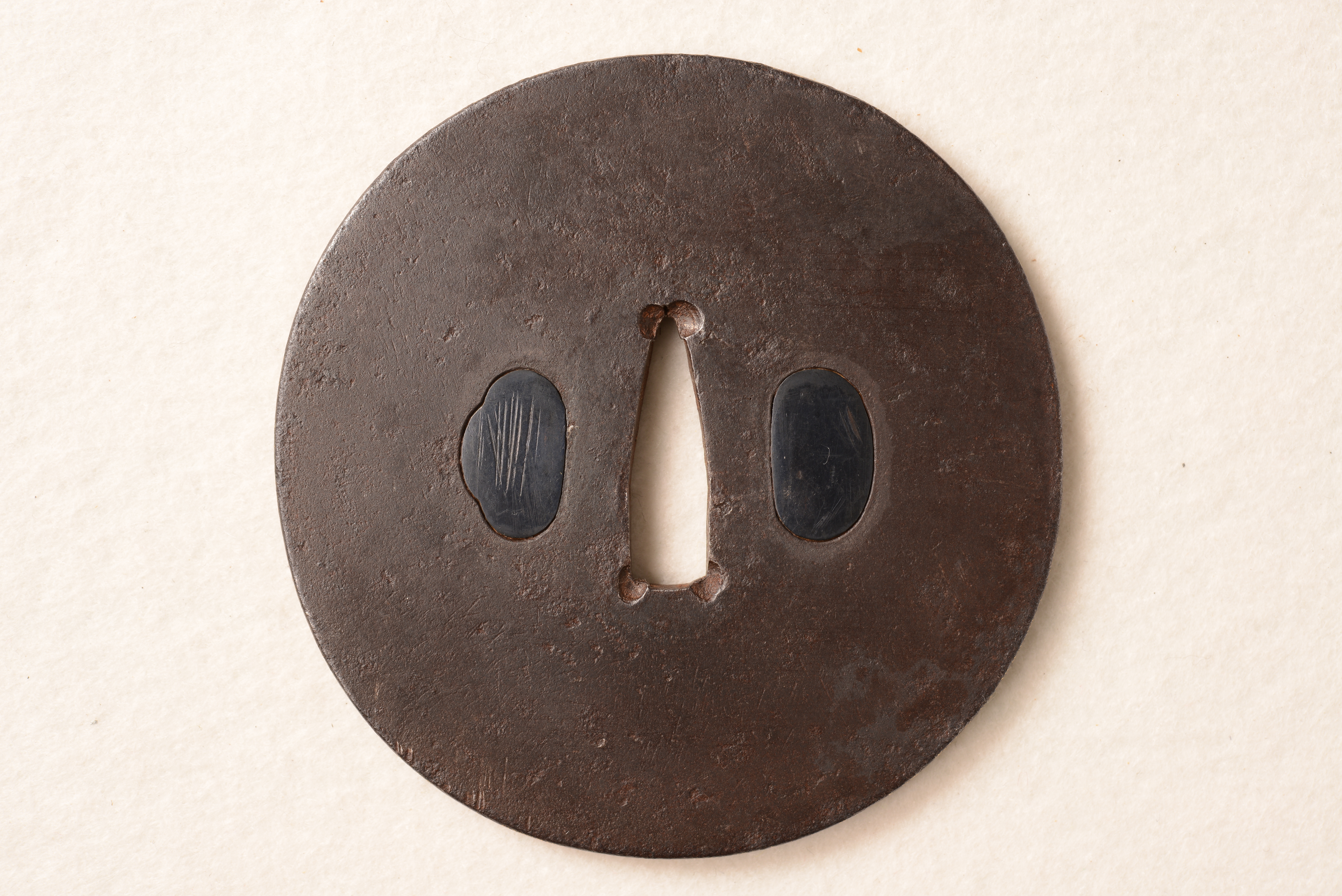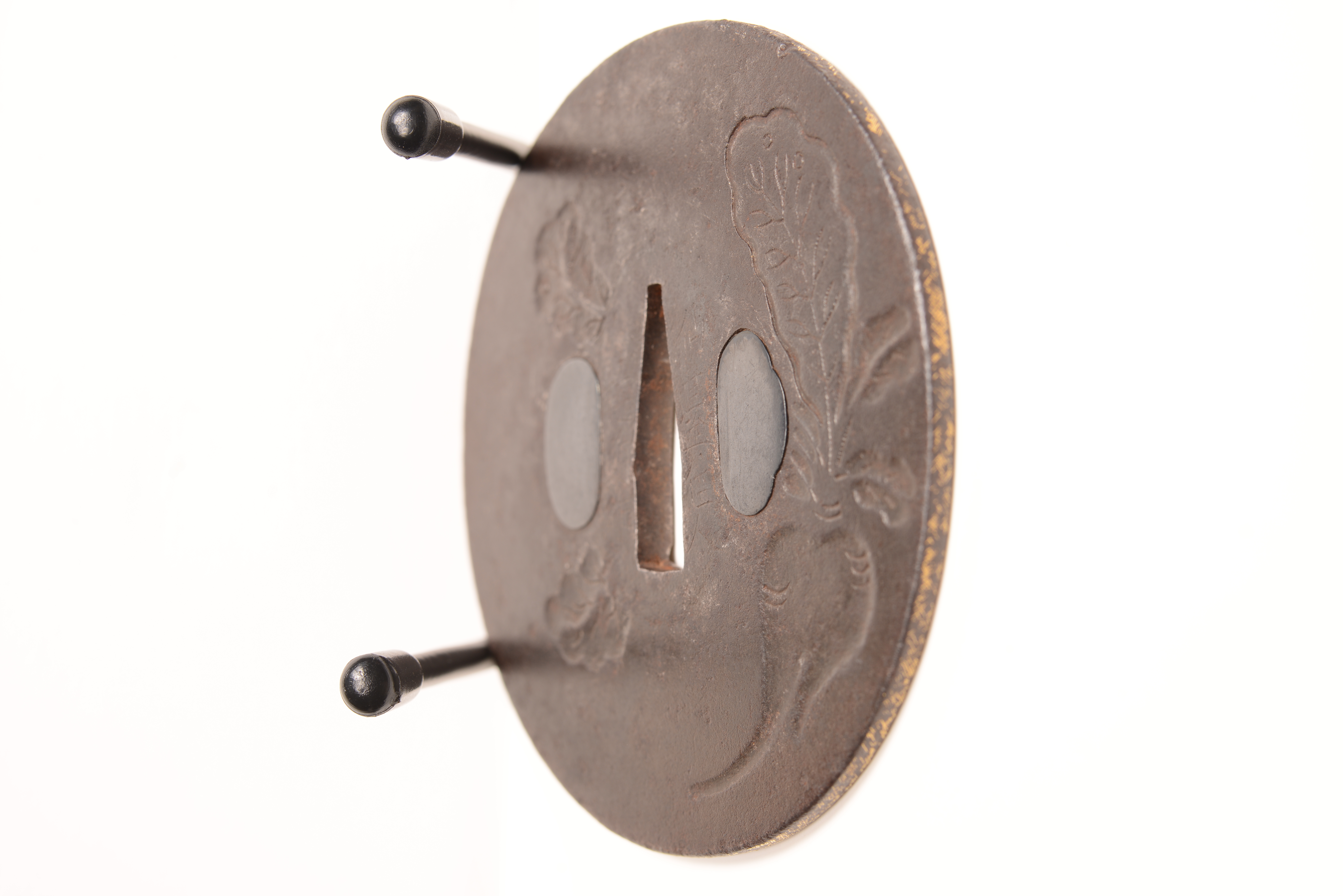 鉄地 丸形 肉彫 銘:仙台住人梅近作