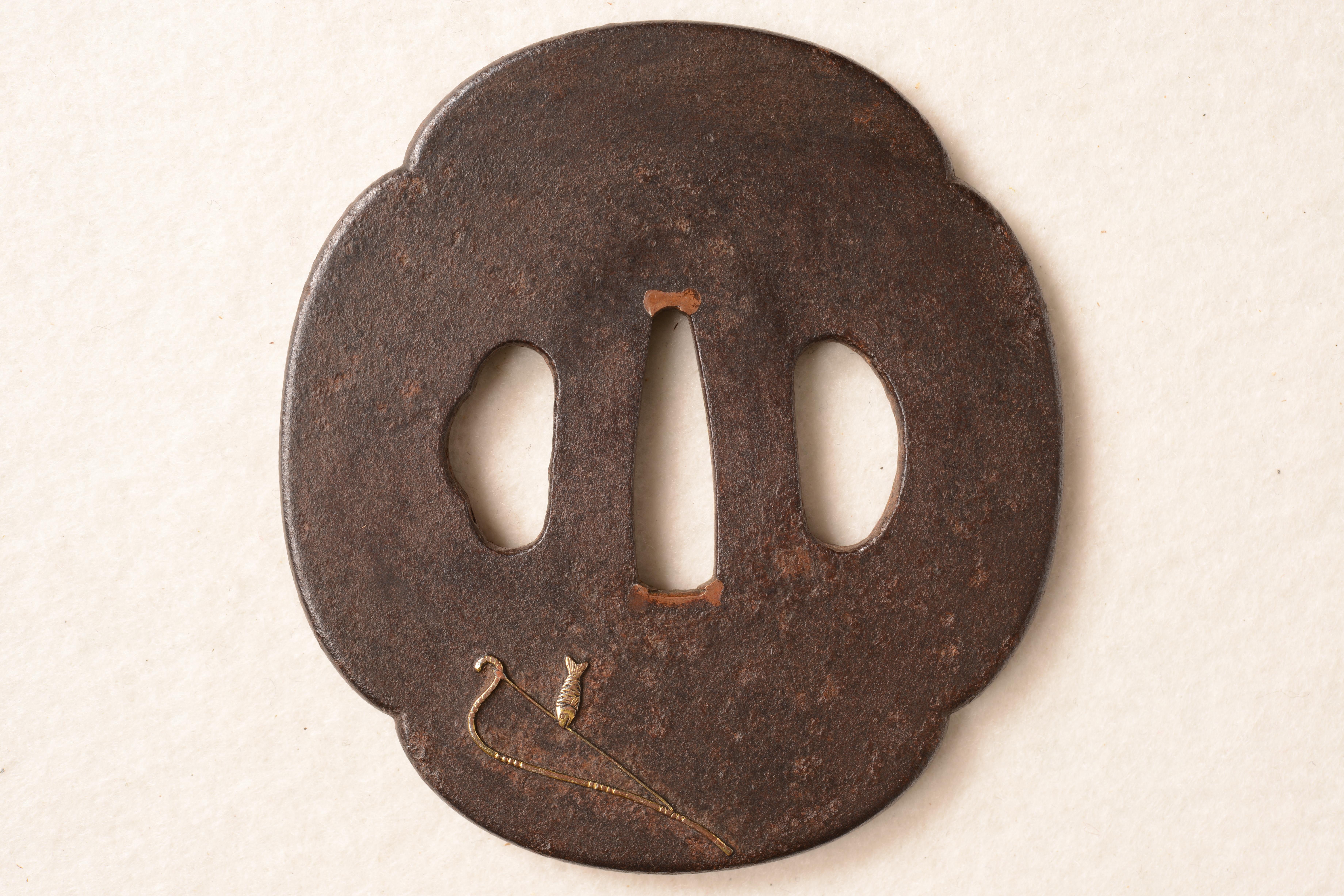 鉄地 木瓜形 銅烏金象嵌