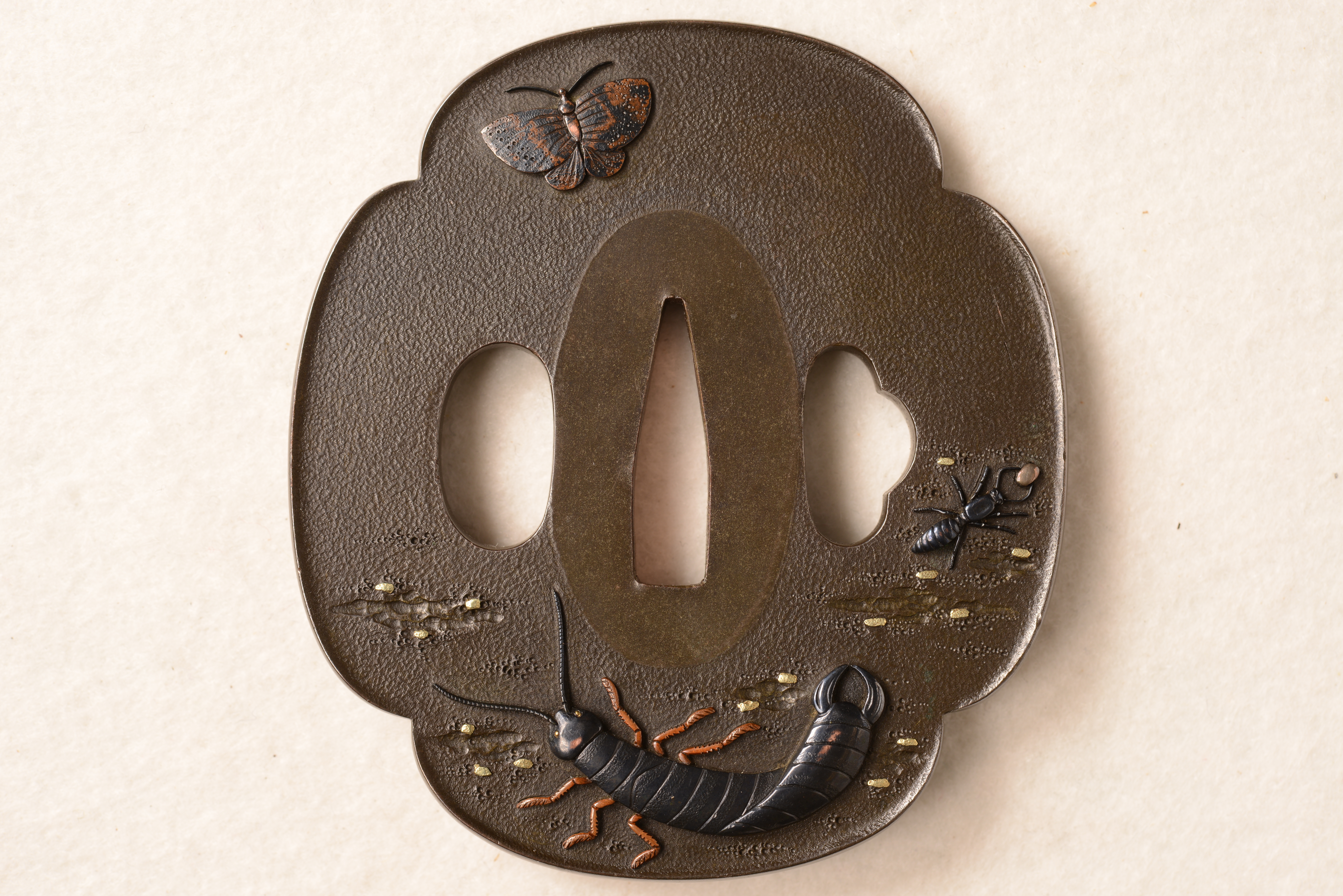 四分一地 木瓜形 高彫 銅象嵌