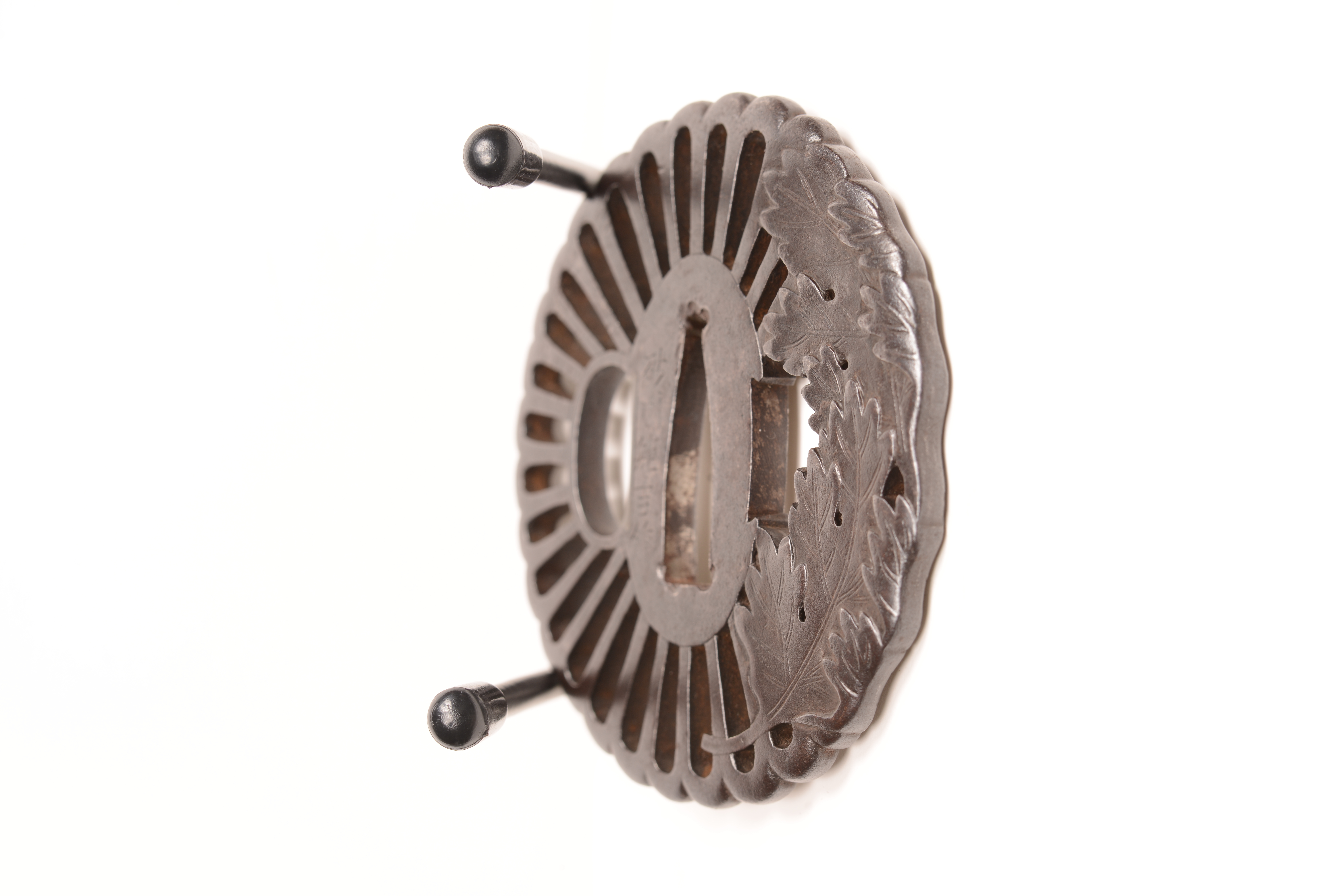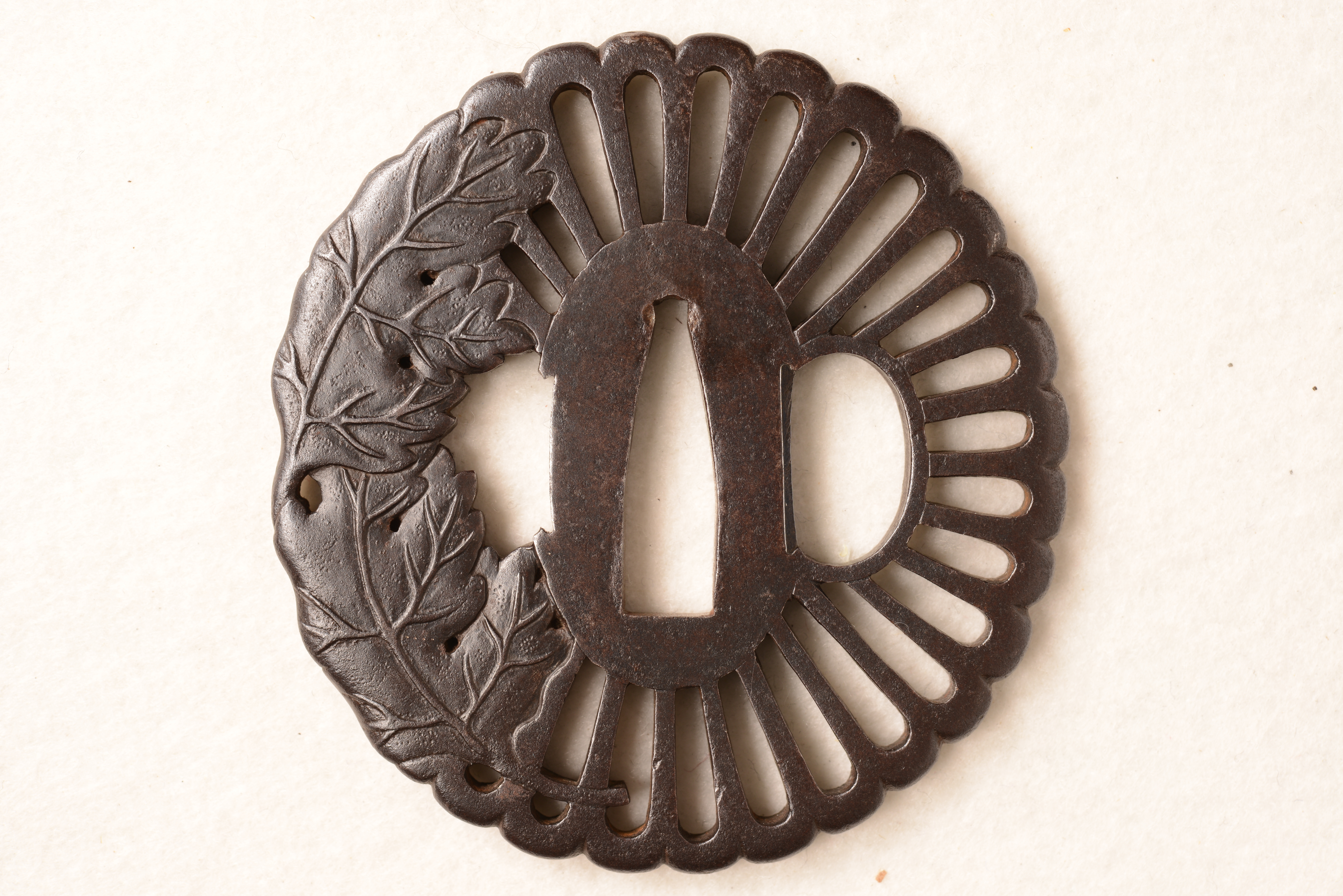 鉄地 菊花形 透彫 銘:砂川矩吉作