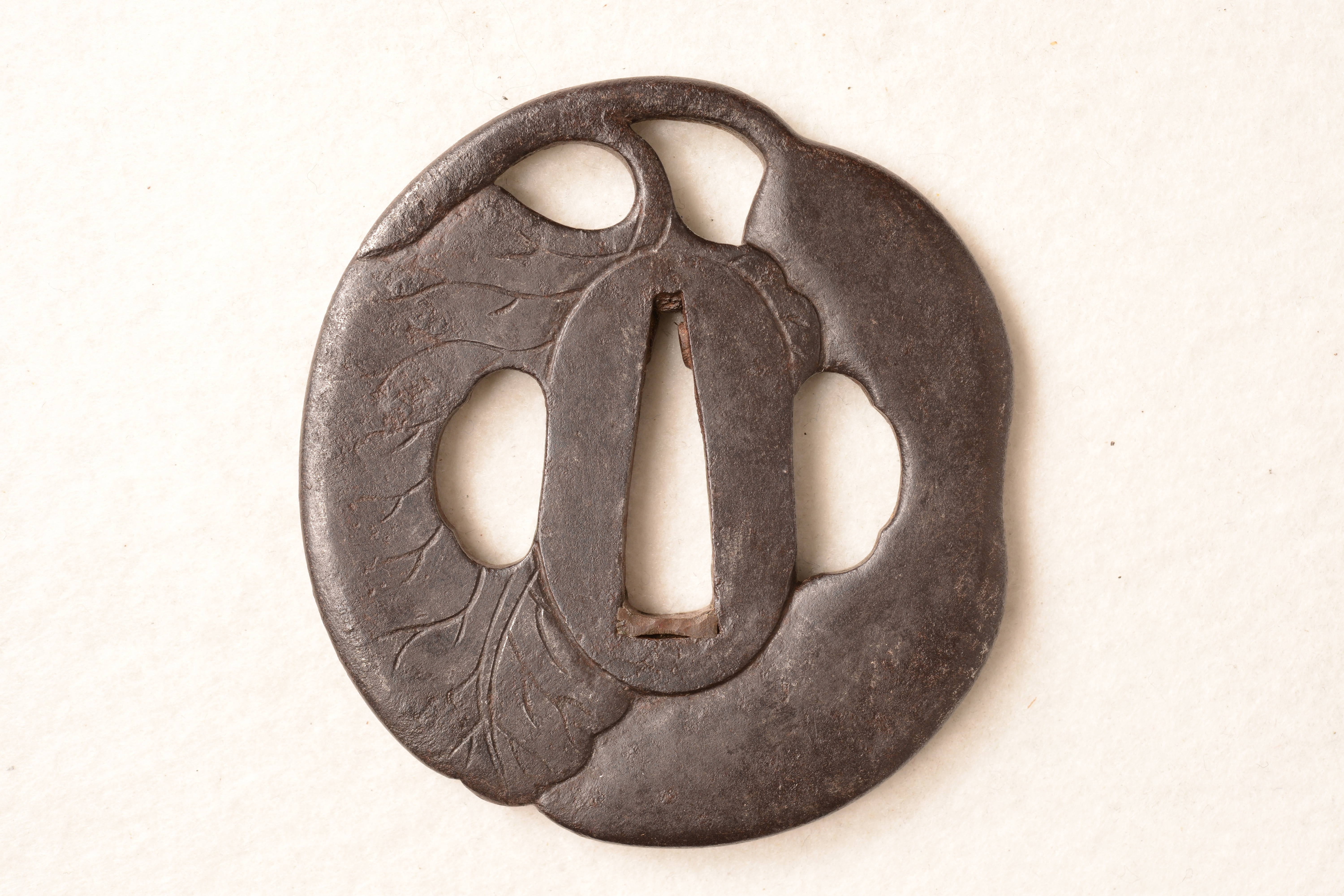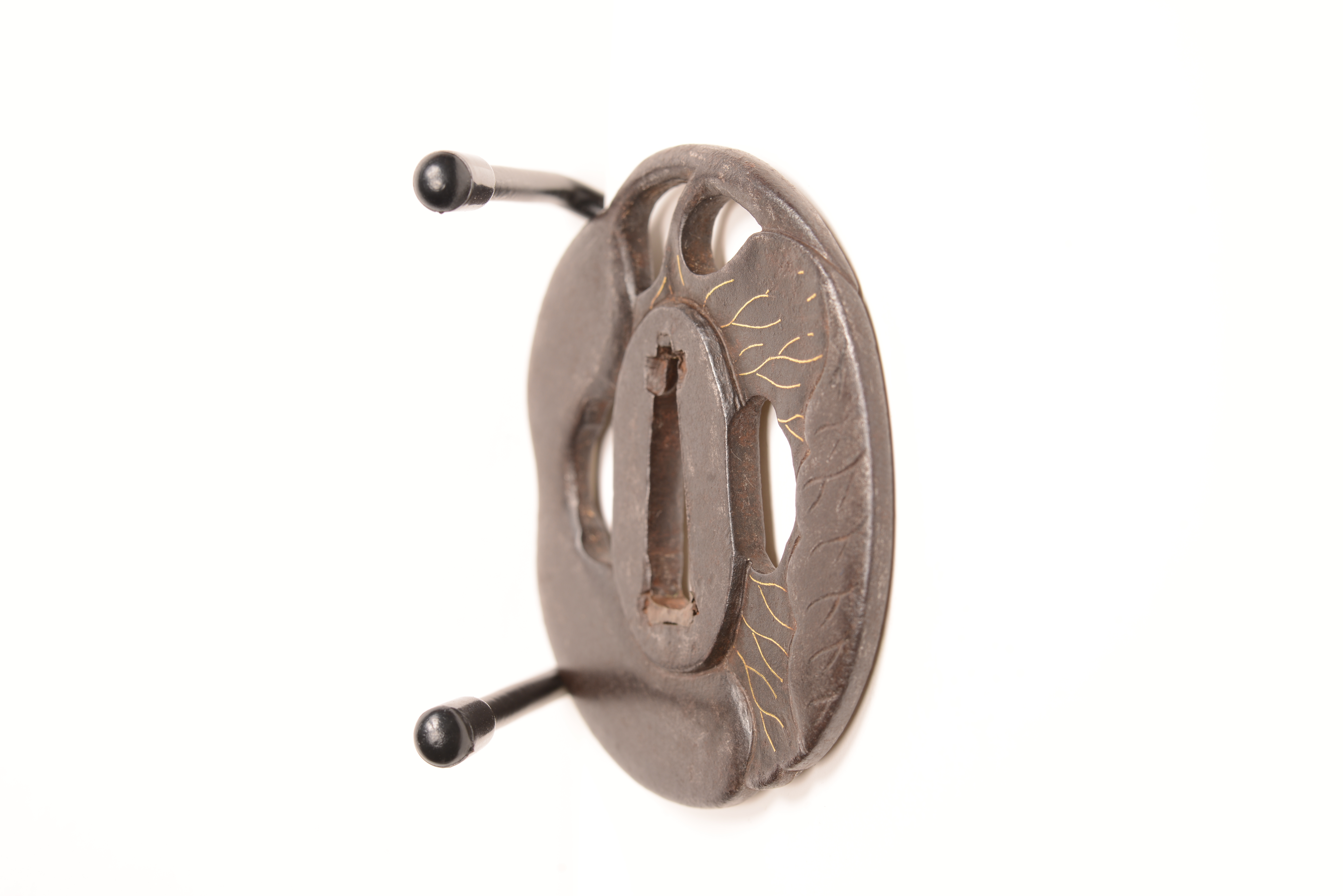 鉄地 変り形 透彫 金象嵌
