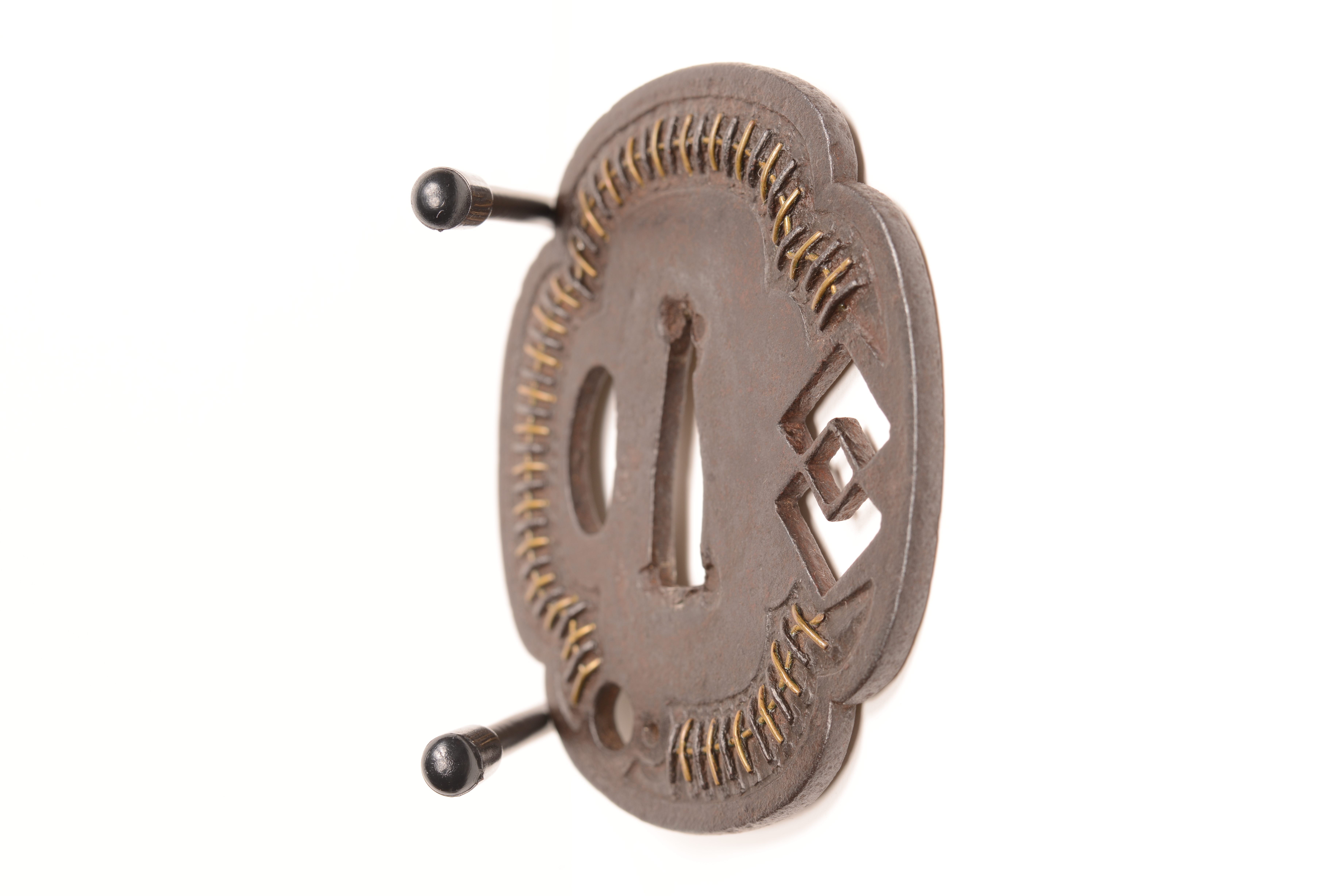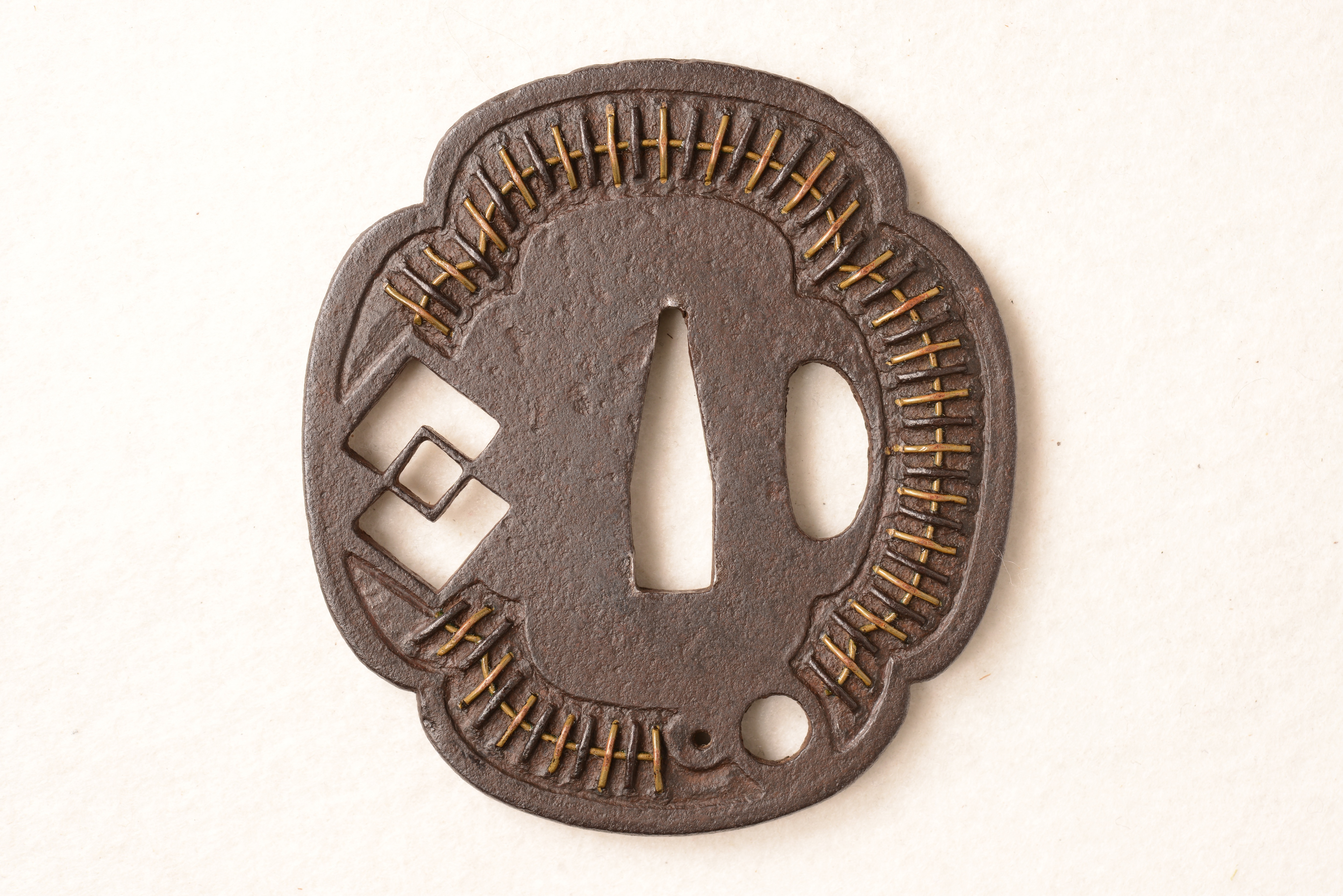 鉄地 木瓜形 小透 真鍮 鉄籠目象嵌