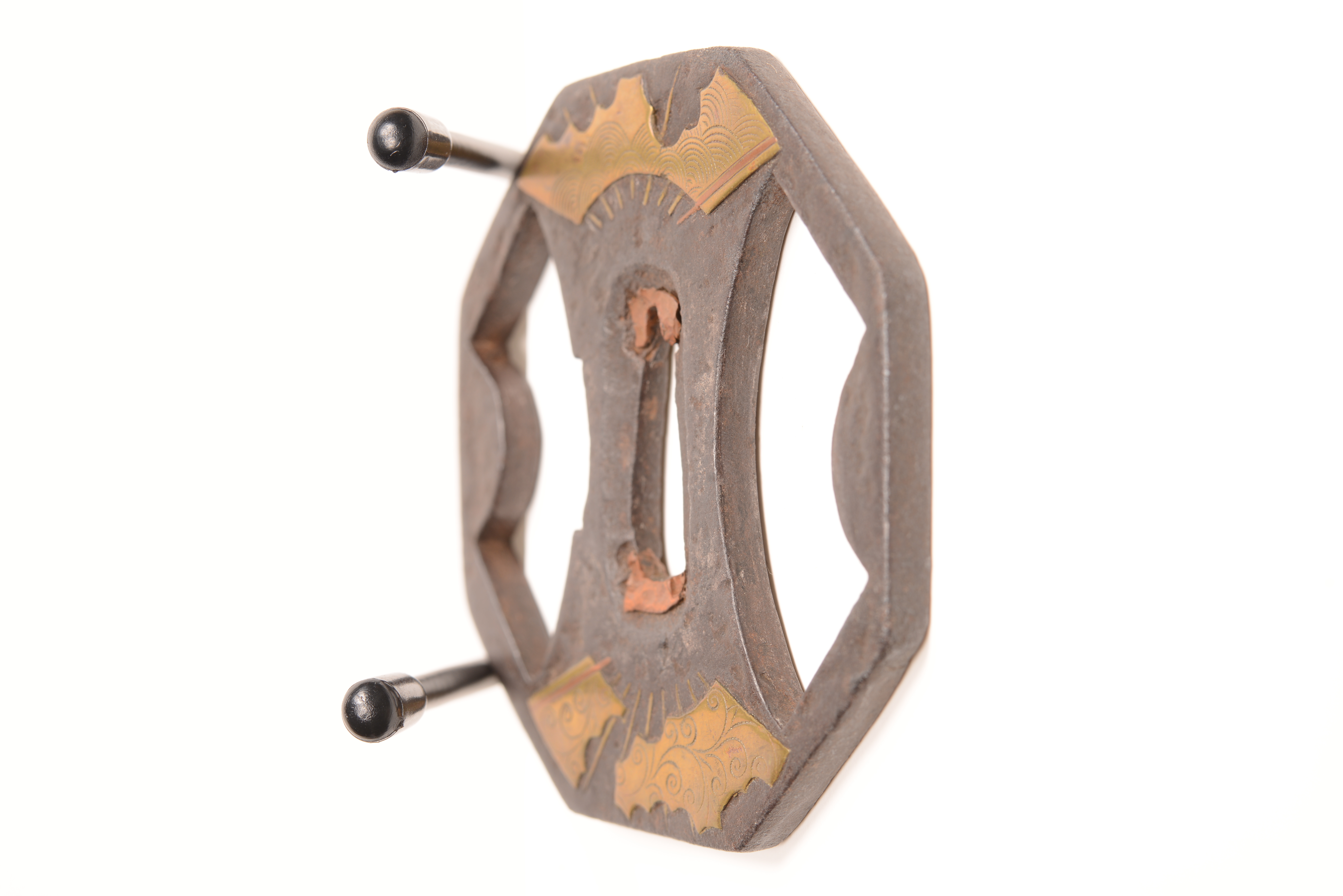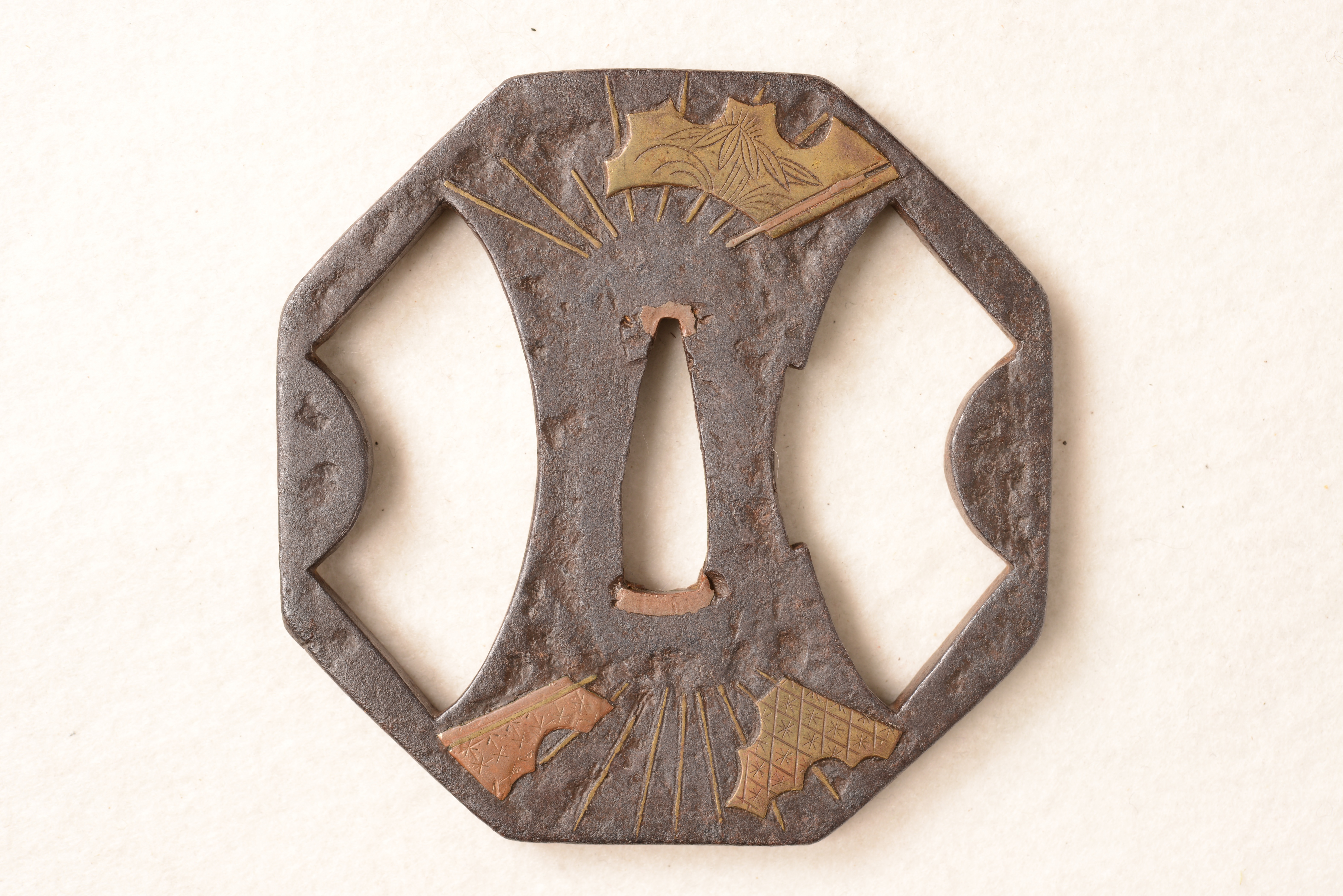 鉄地 八角形 透彫 真鍮銅象嵌