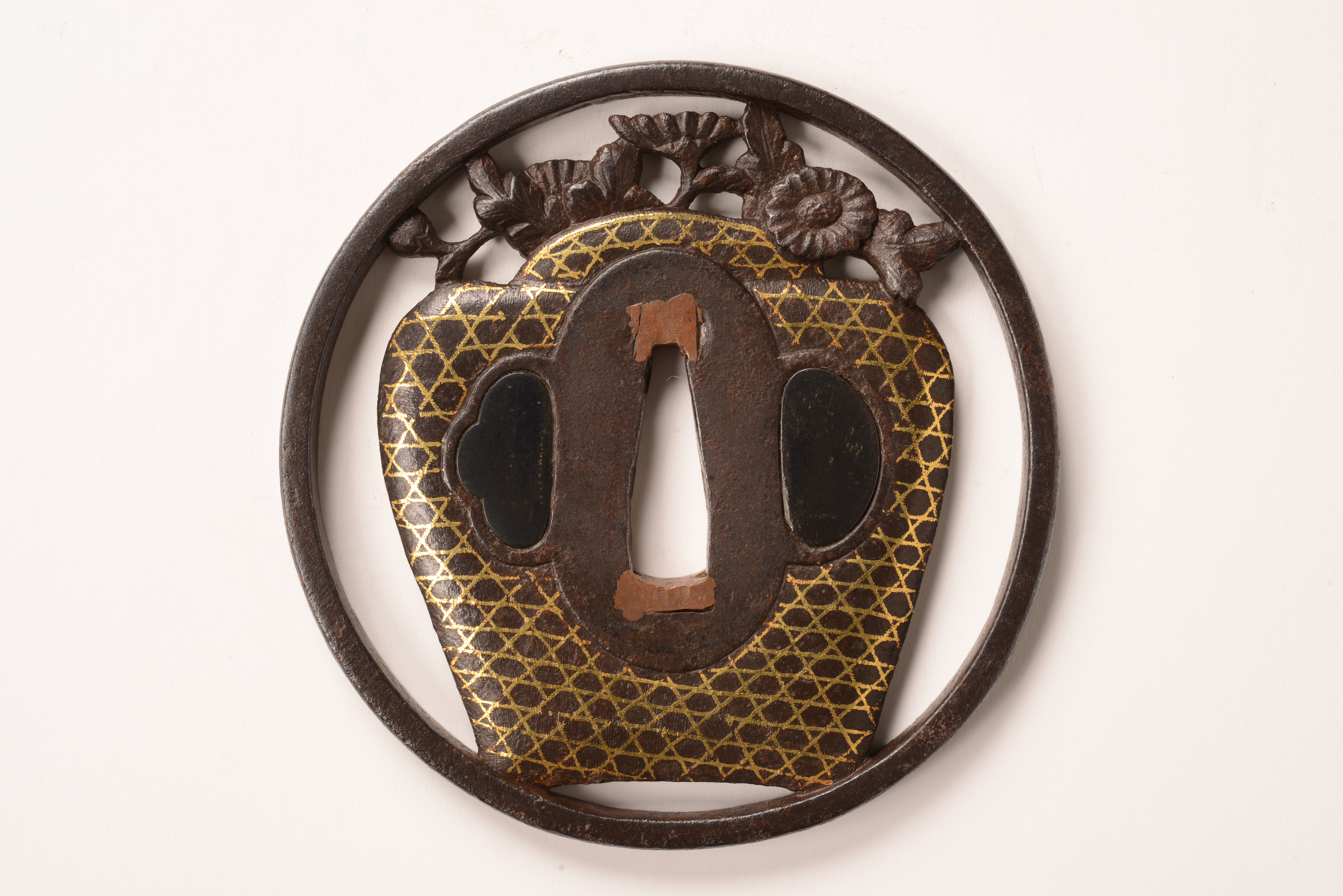 丸形 鉄地 透彫 金象嵌 函館市指定有形文化財