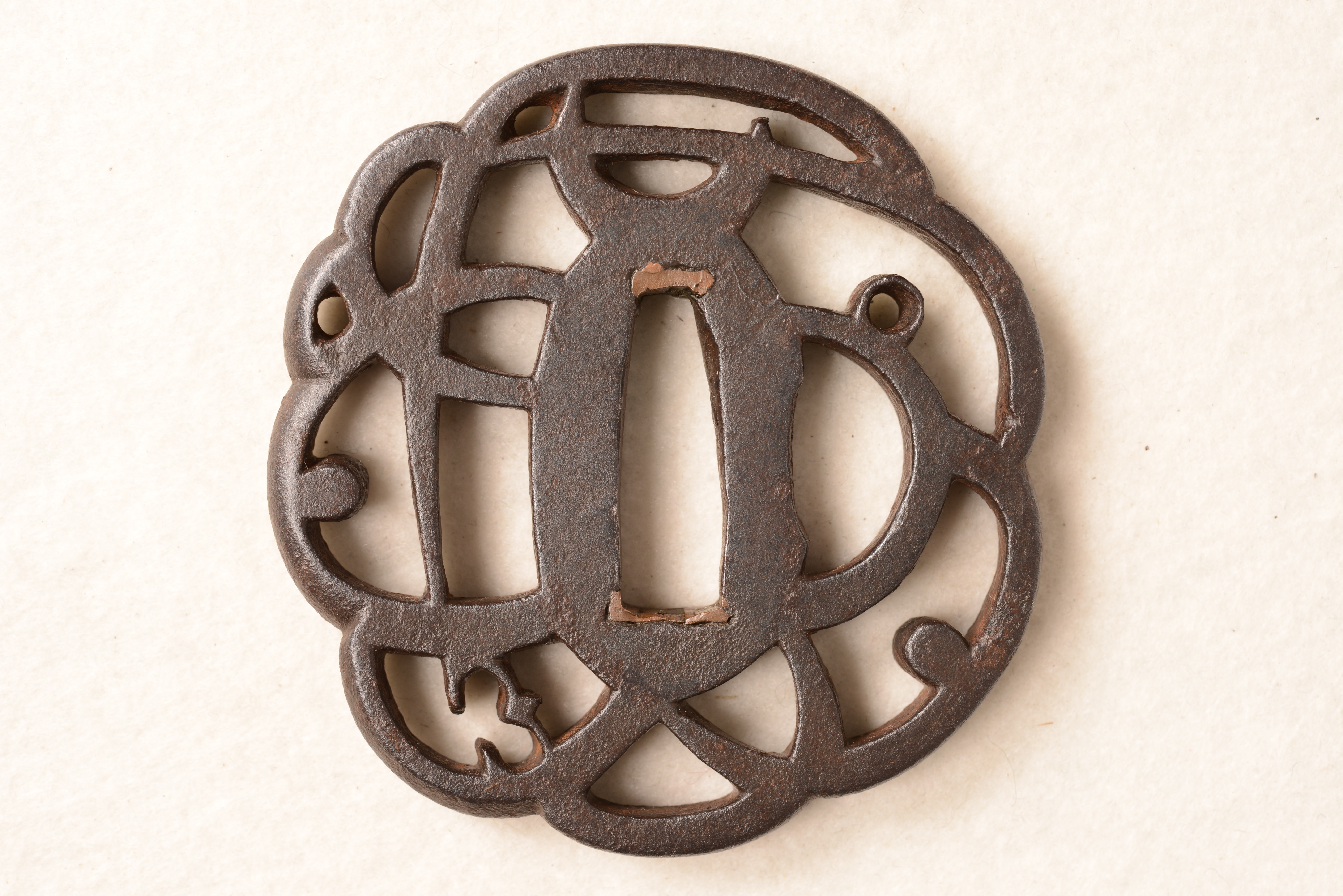 鉄地 金山鐔 変り形 透彫