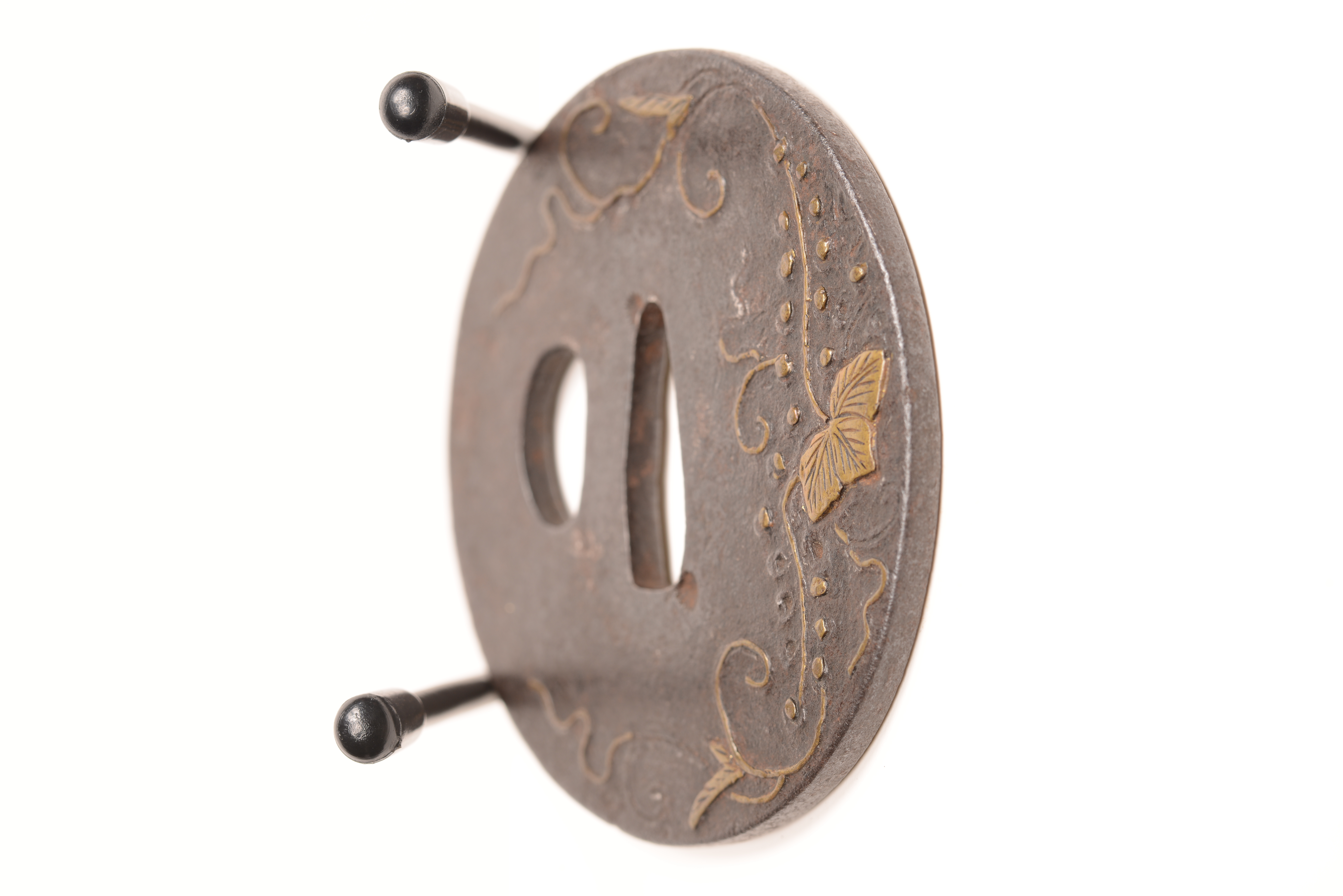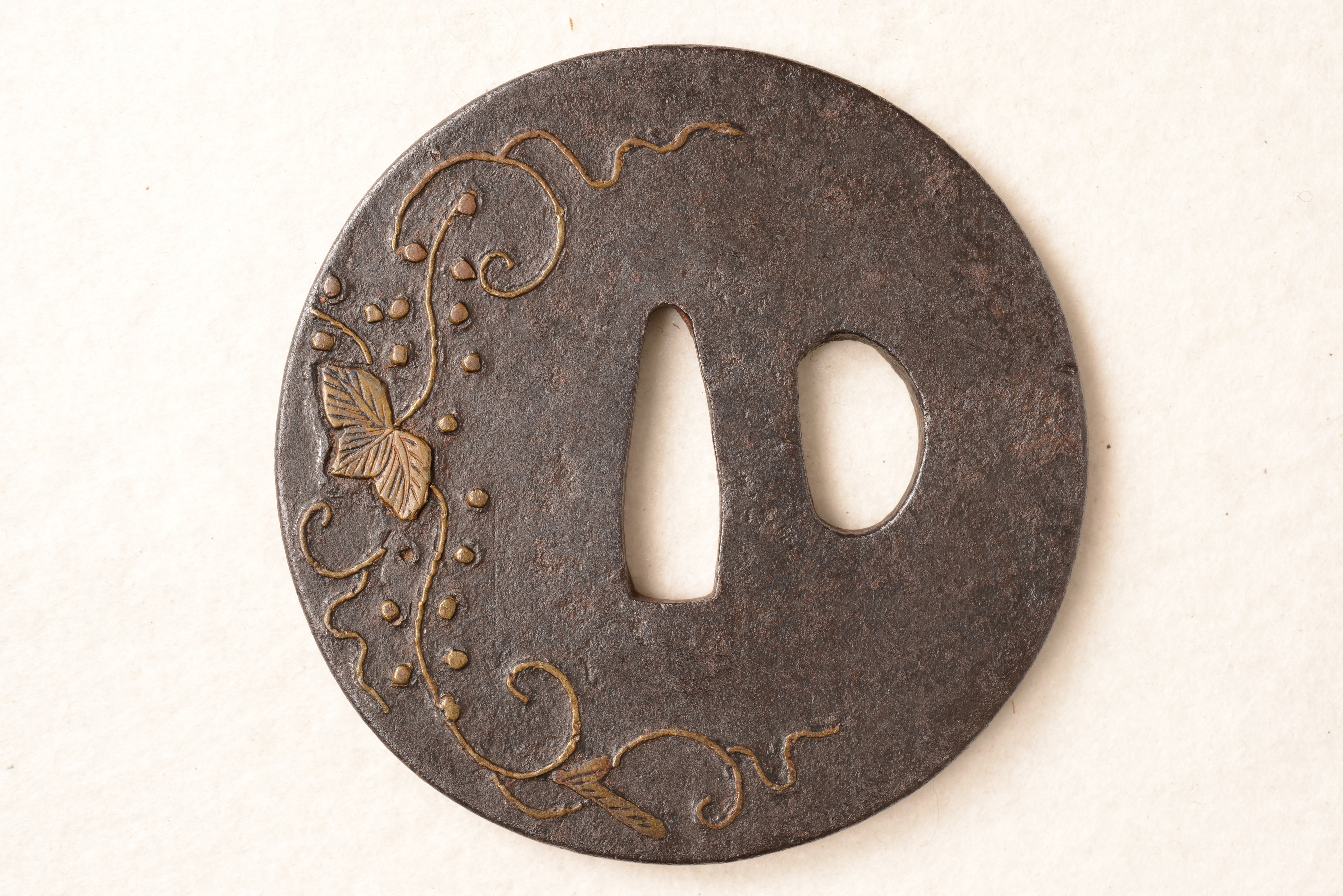鉄地 丸形 真鍮象嵌