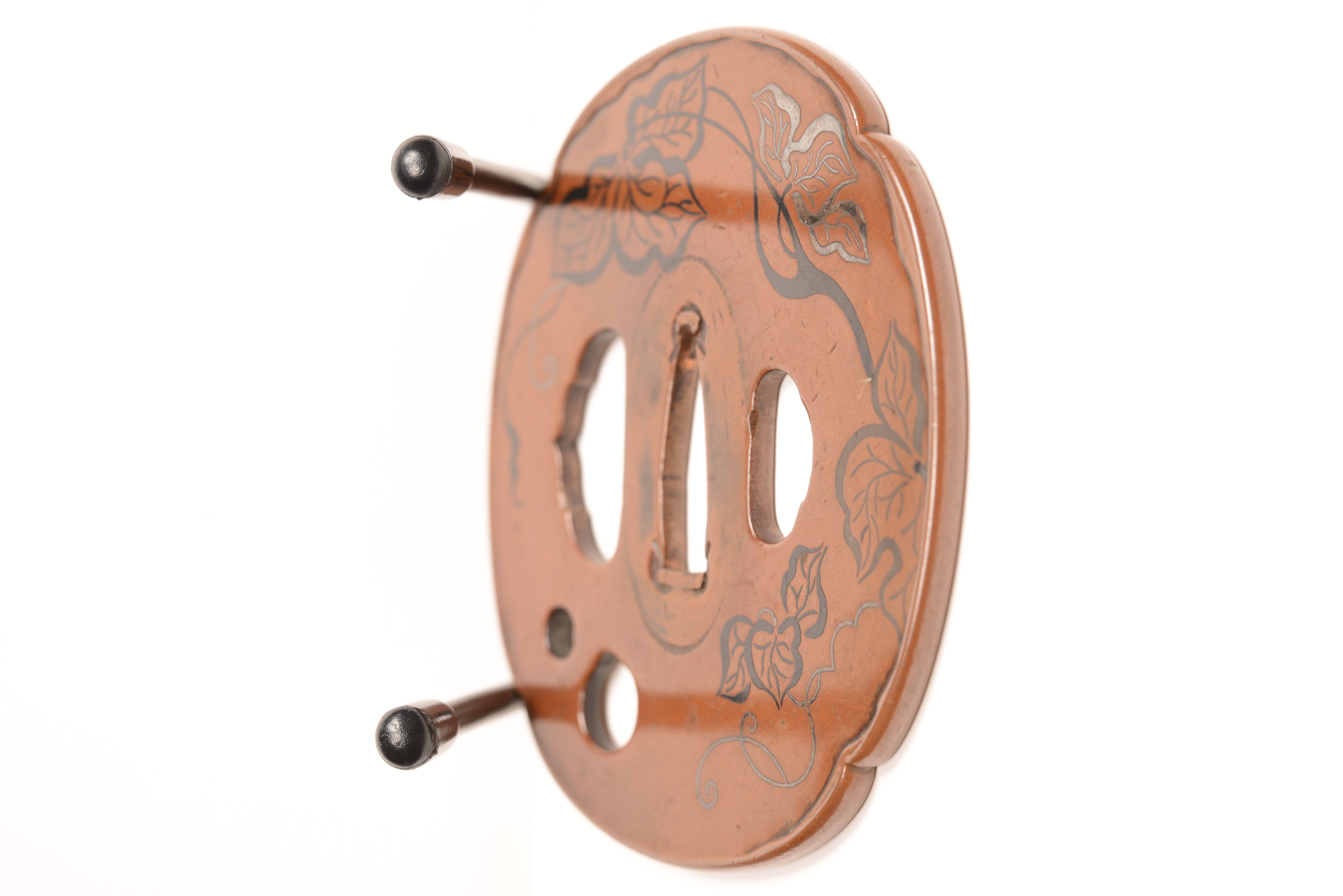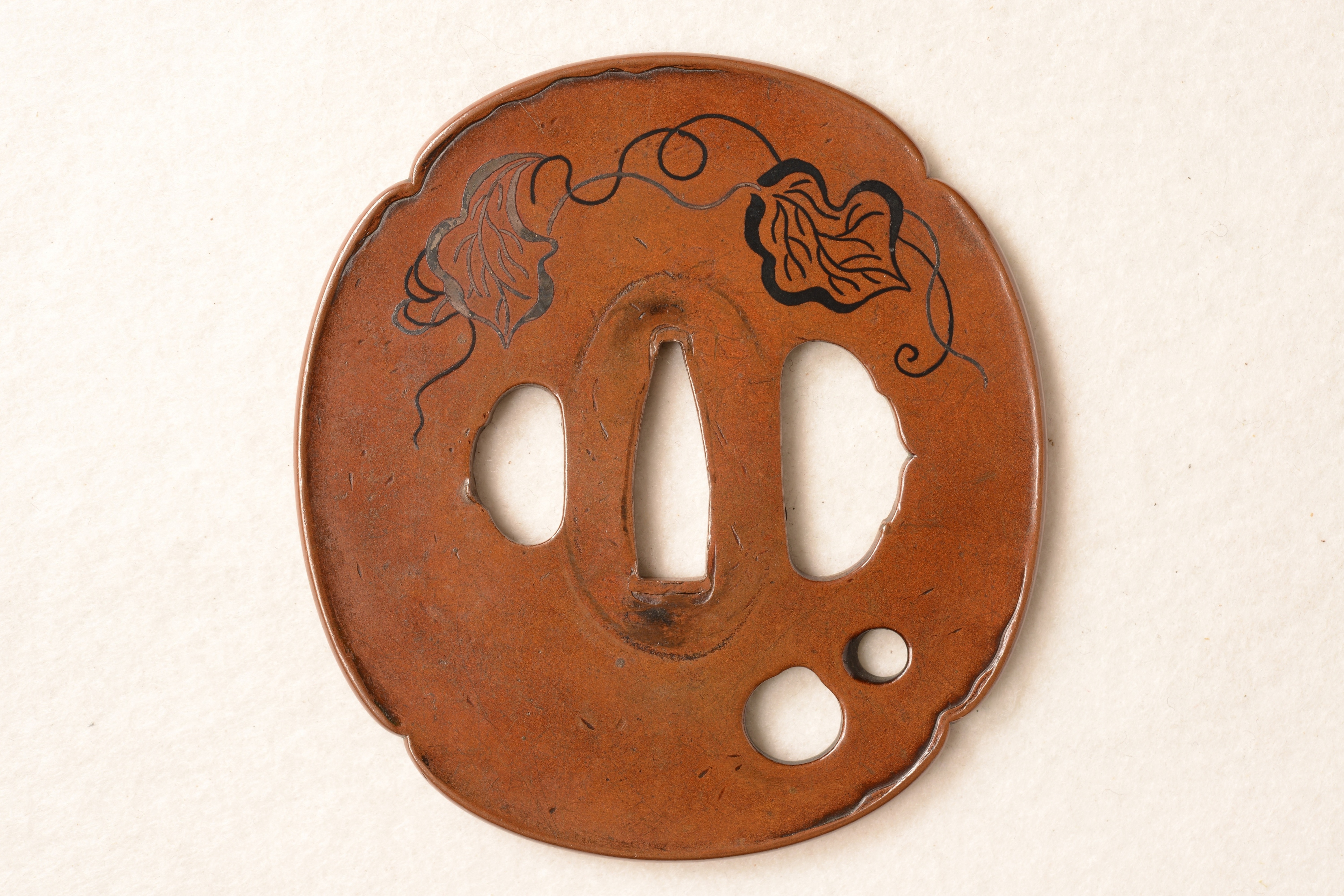 素銅地 木瓜形 漆象嵌