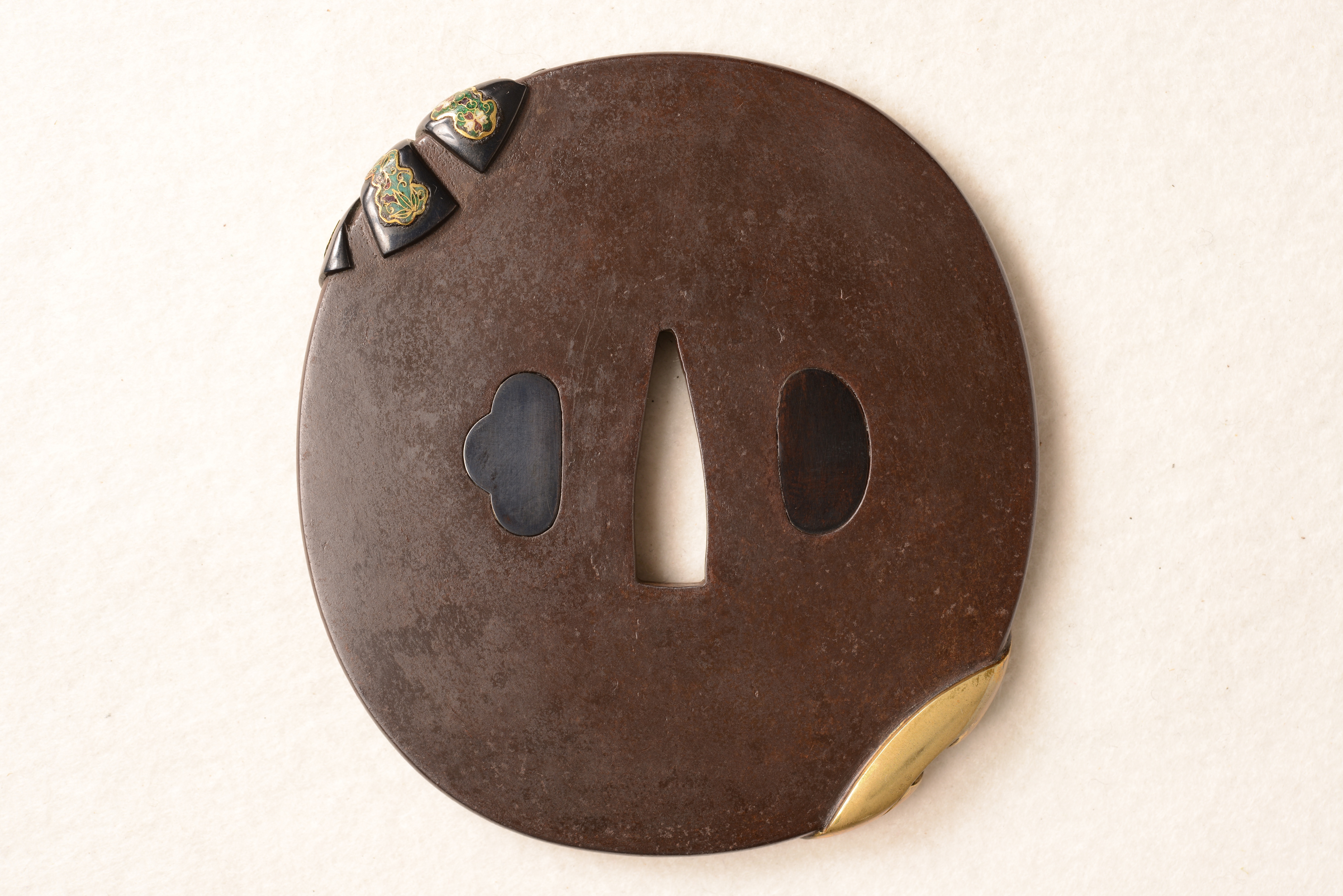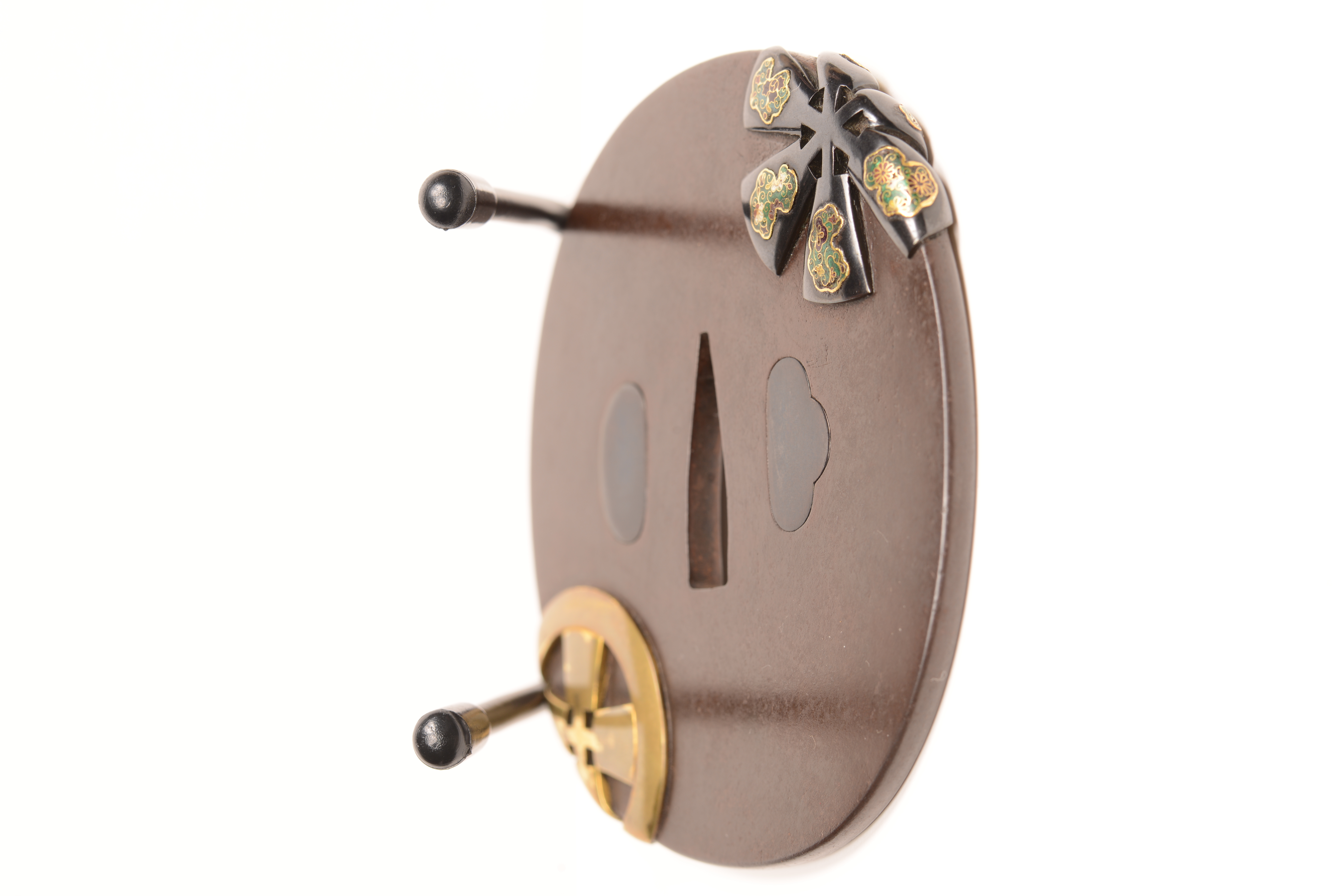 鉄地 竪丸形 金・真鍮・烏金象嵌 七宝