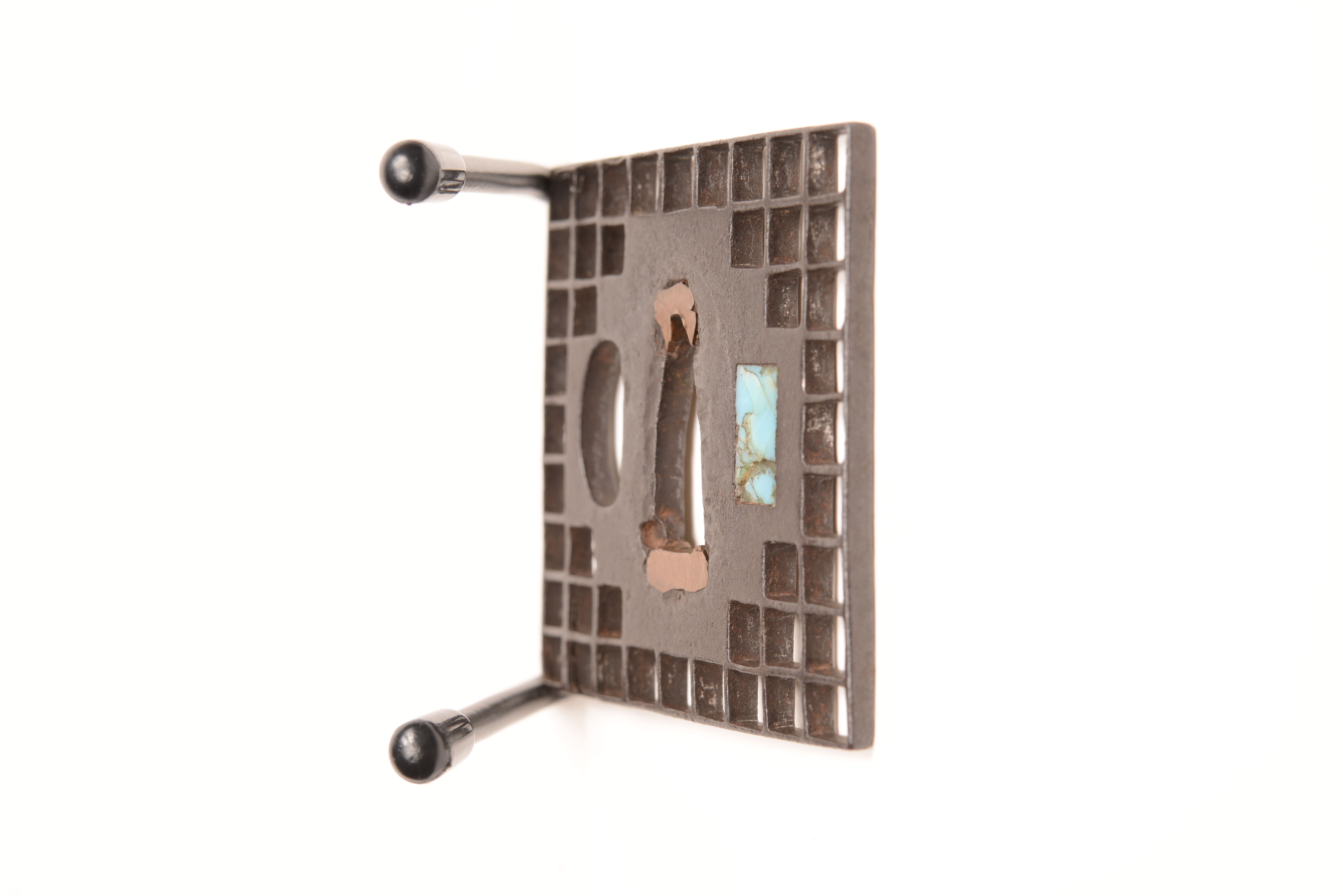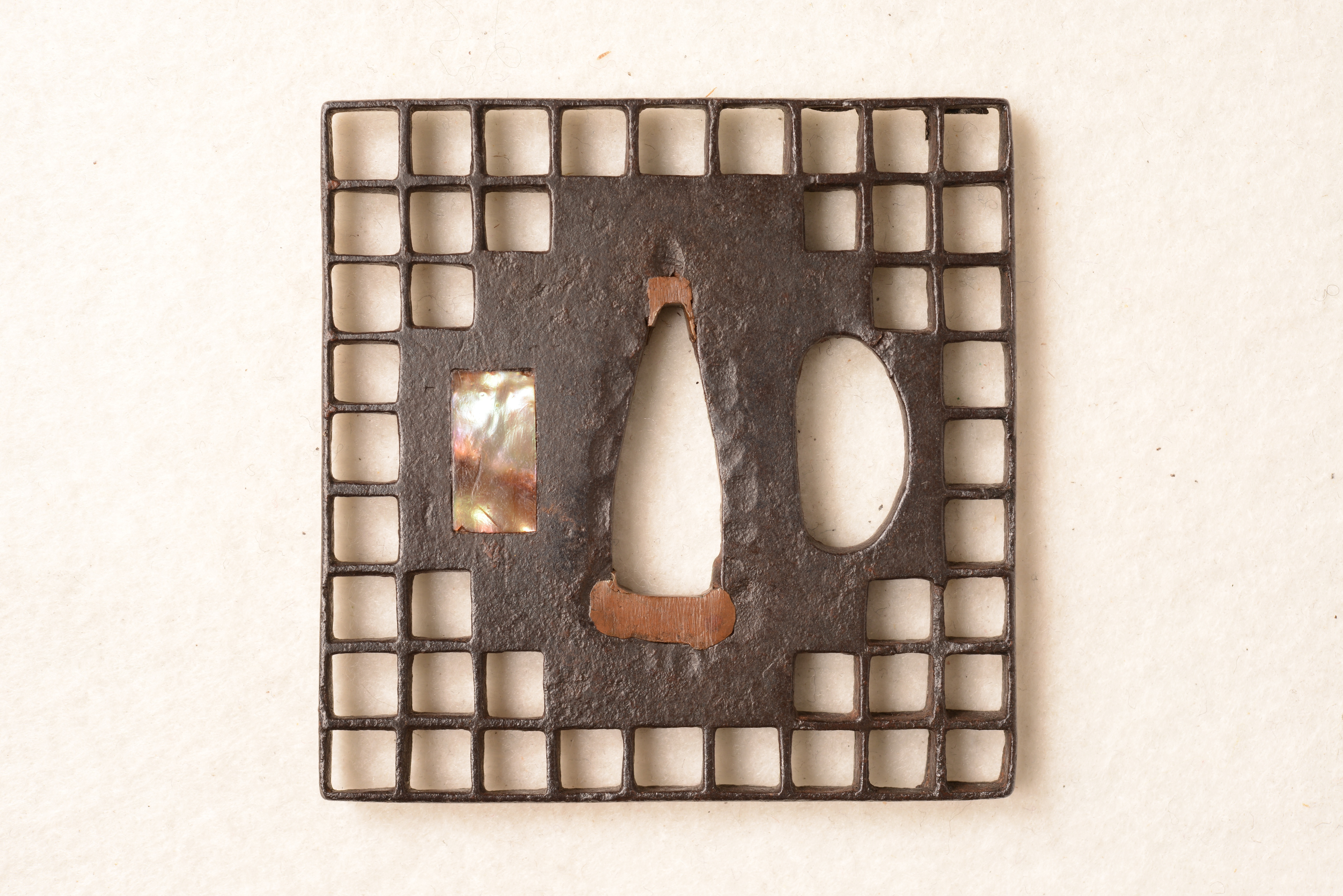 鉄地 角形 透彫 青貝象嵌