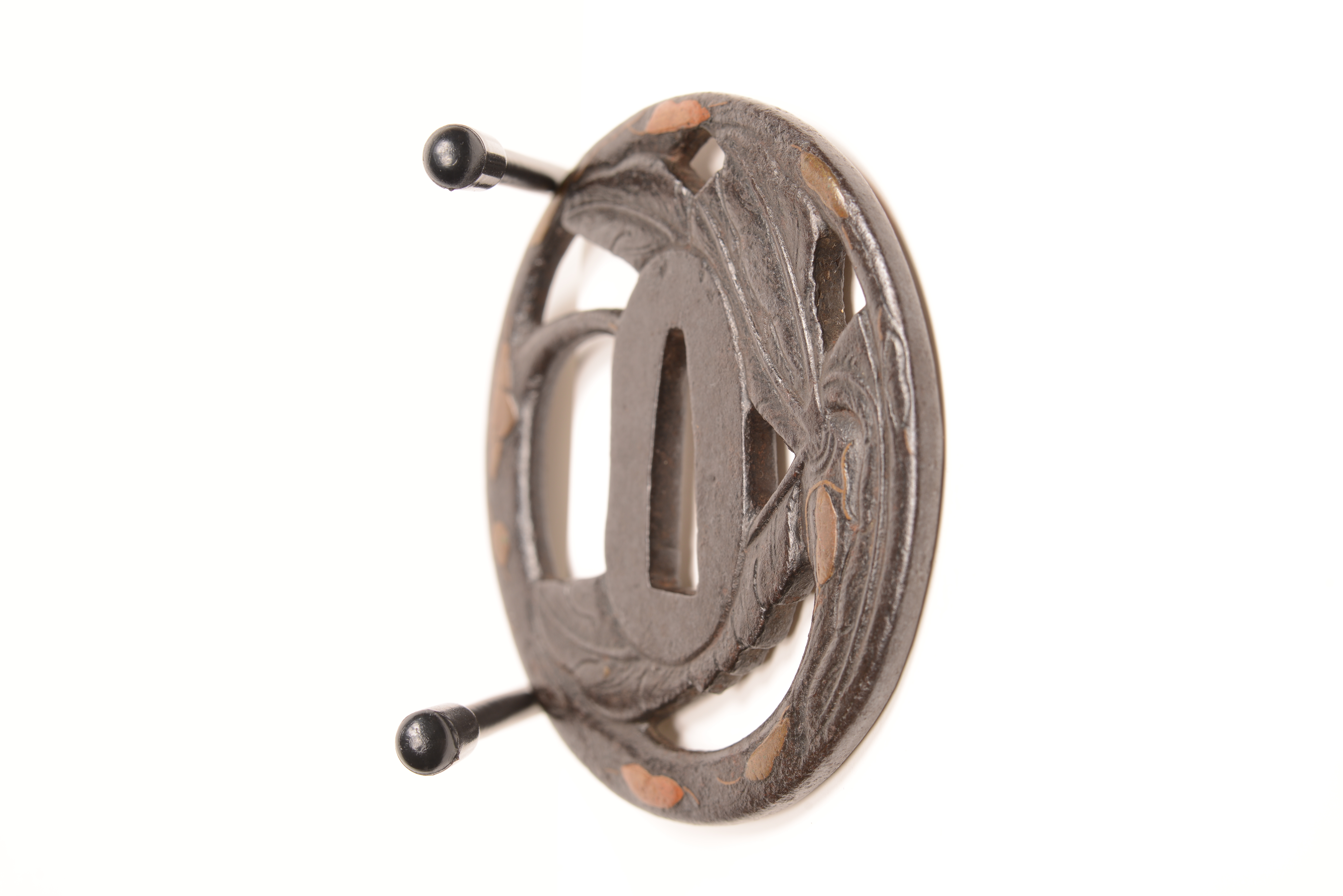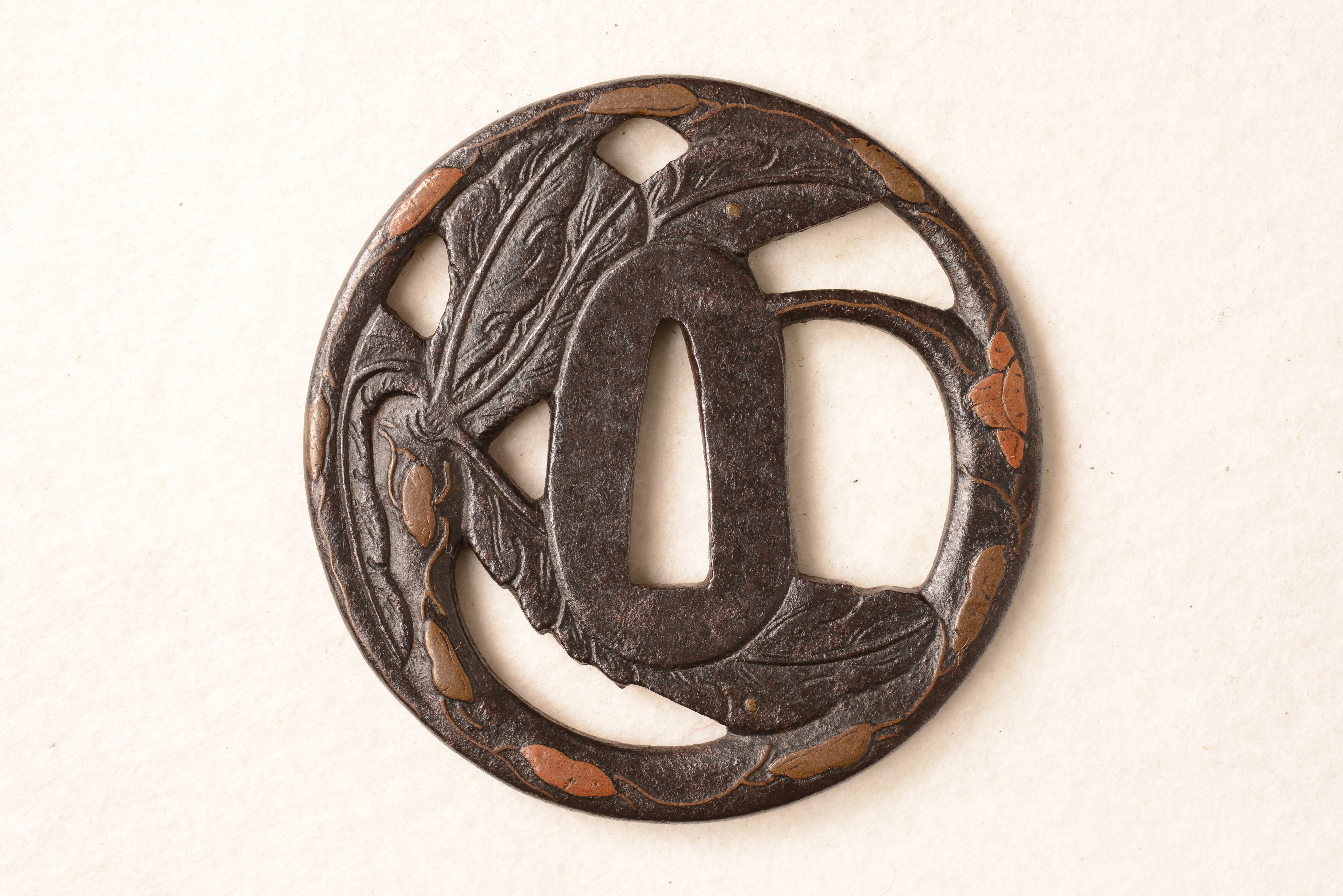鉄地 丸形 透彫 真鍮銅象嵌