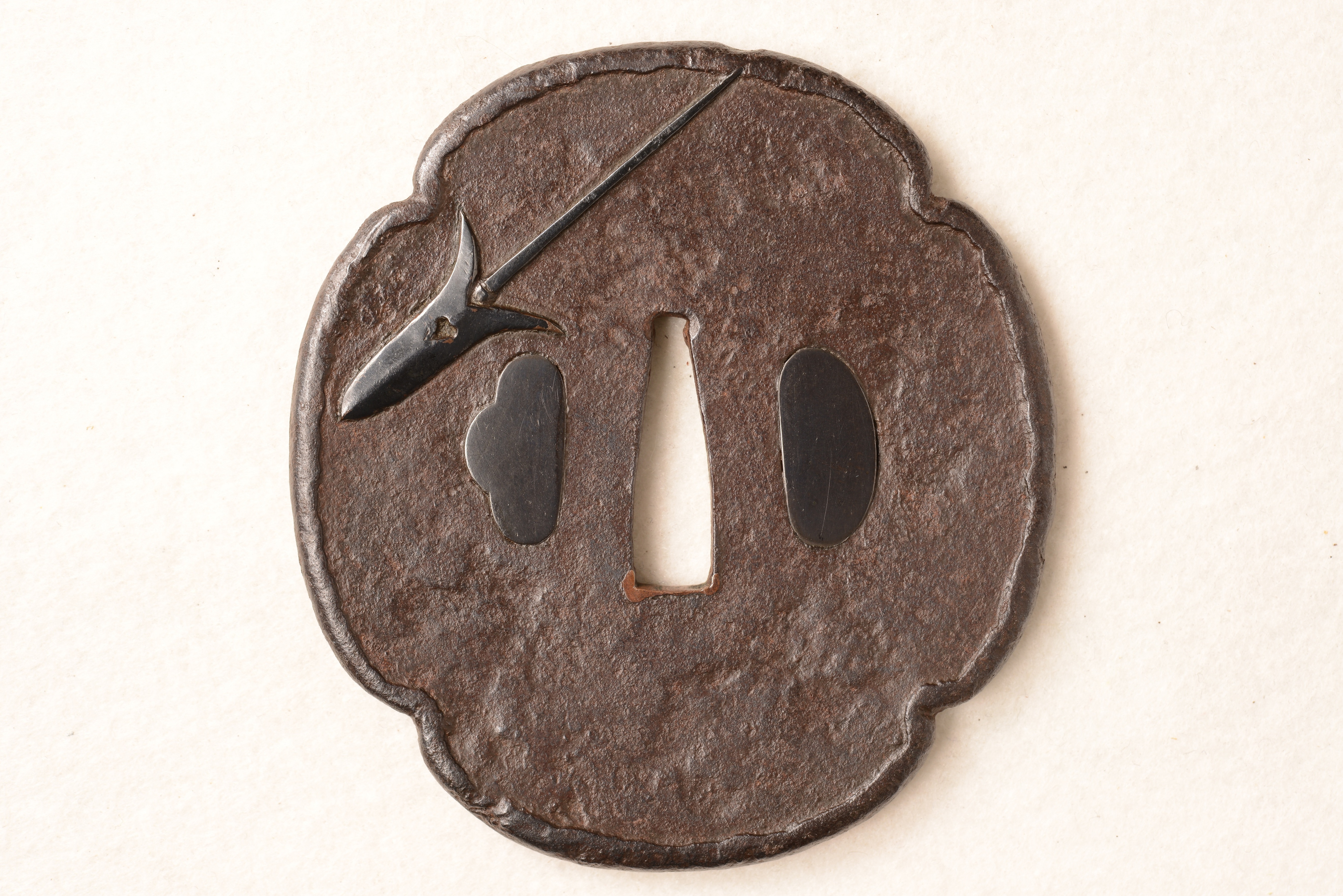 鉄地 木瓜形 銀烏金象嵌