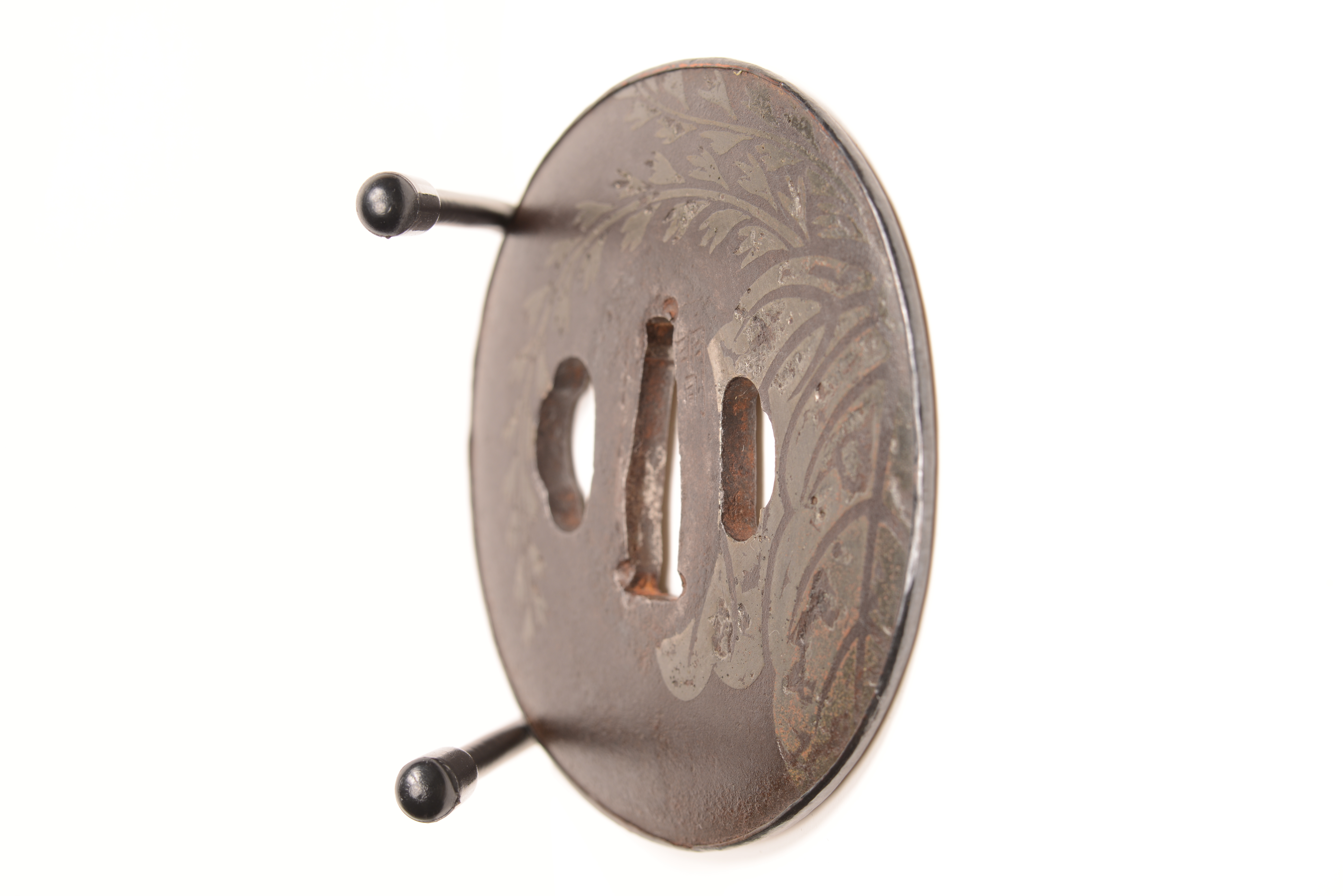 鉄地 丸形 砂張象嵌 烏金覆輪