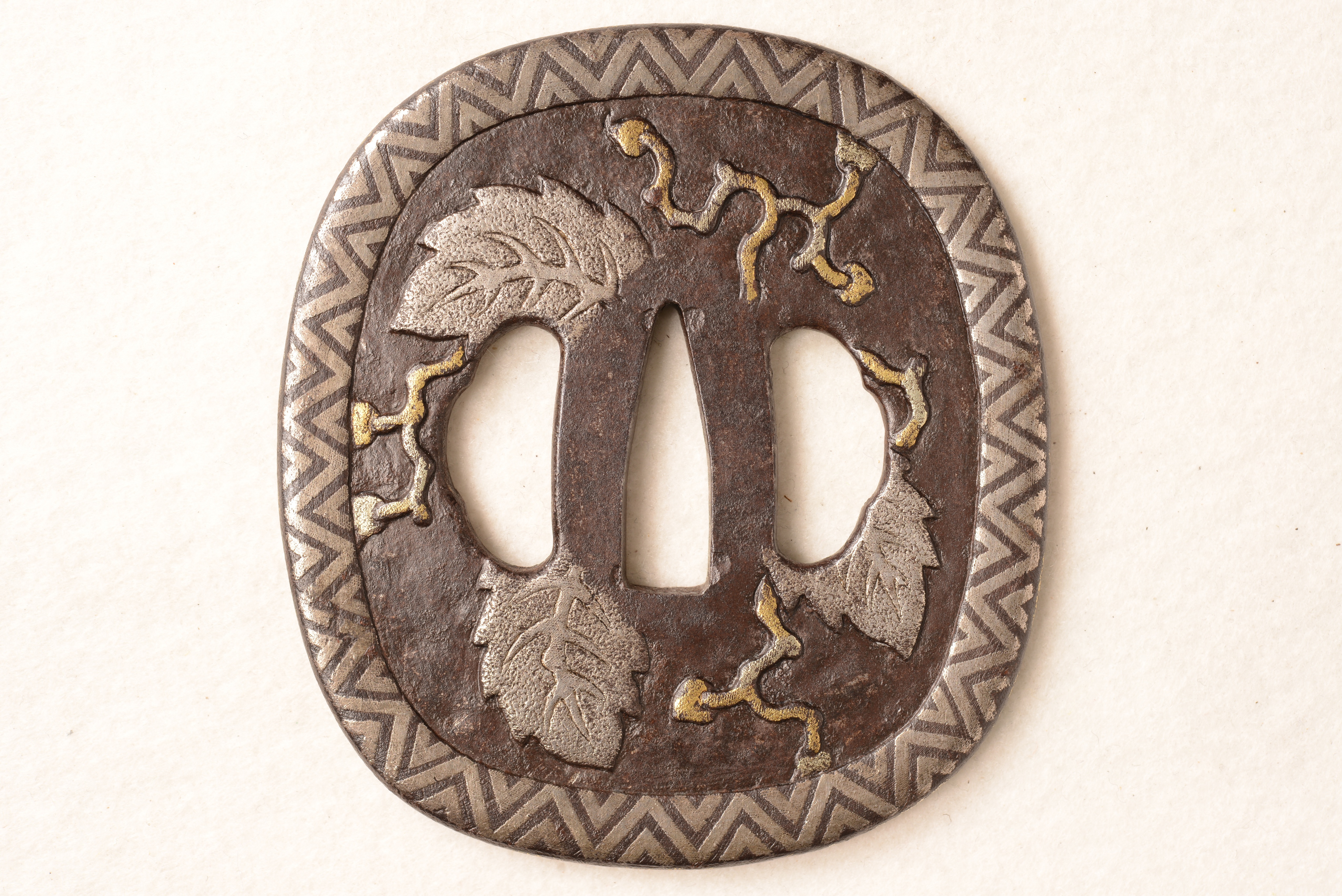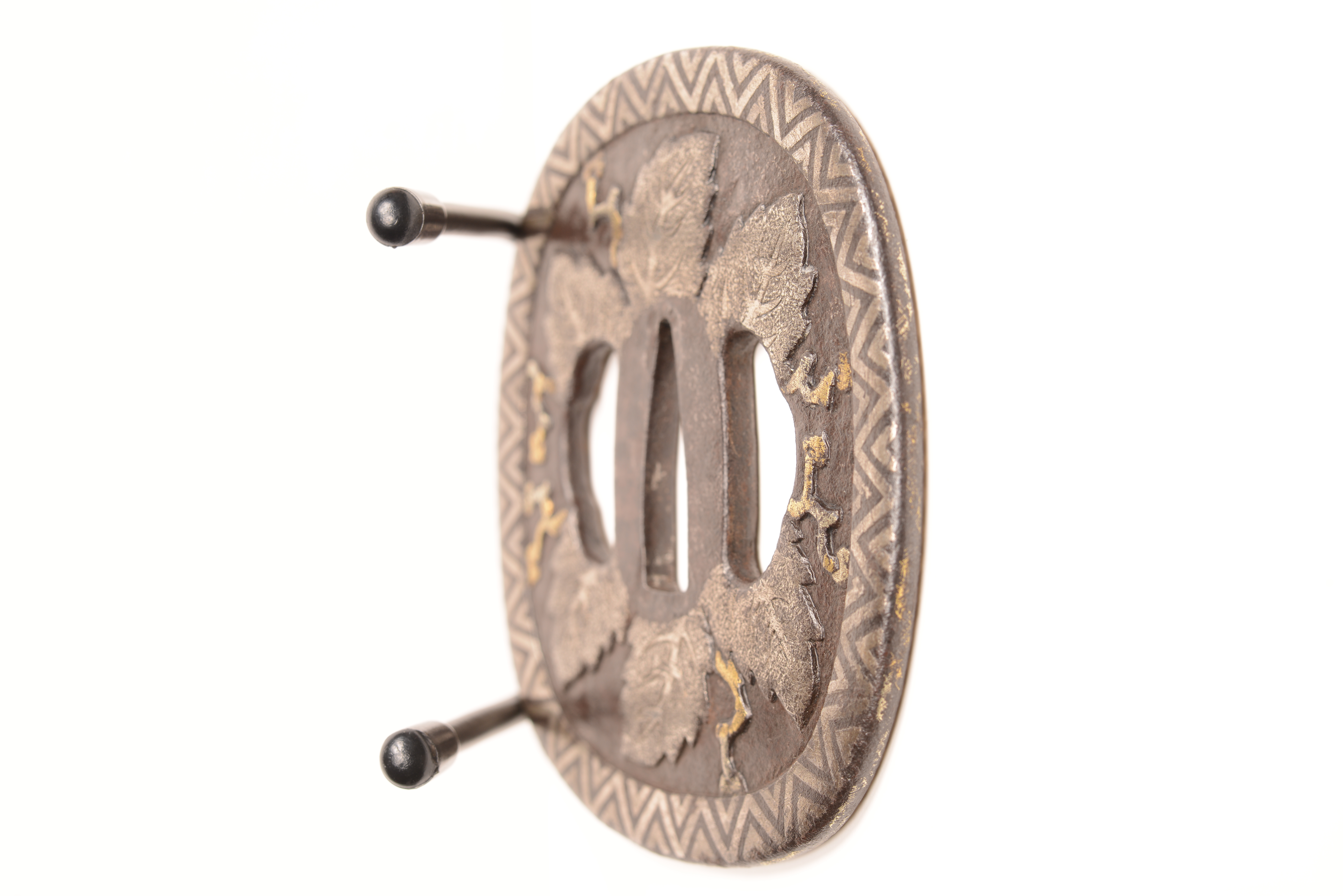 鉄地 竪丸形 金銀象嵌