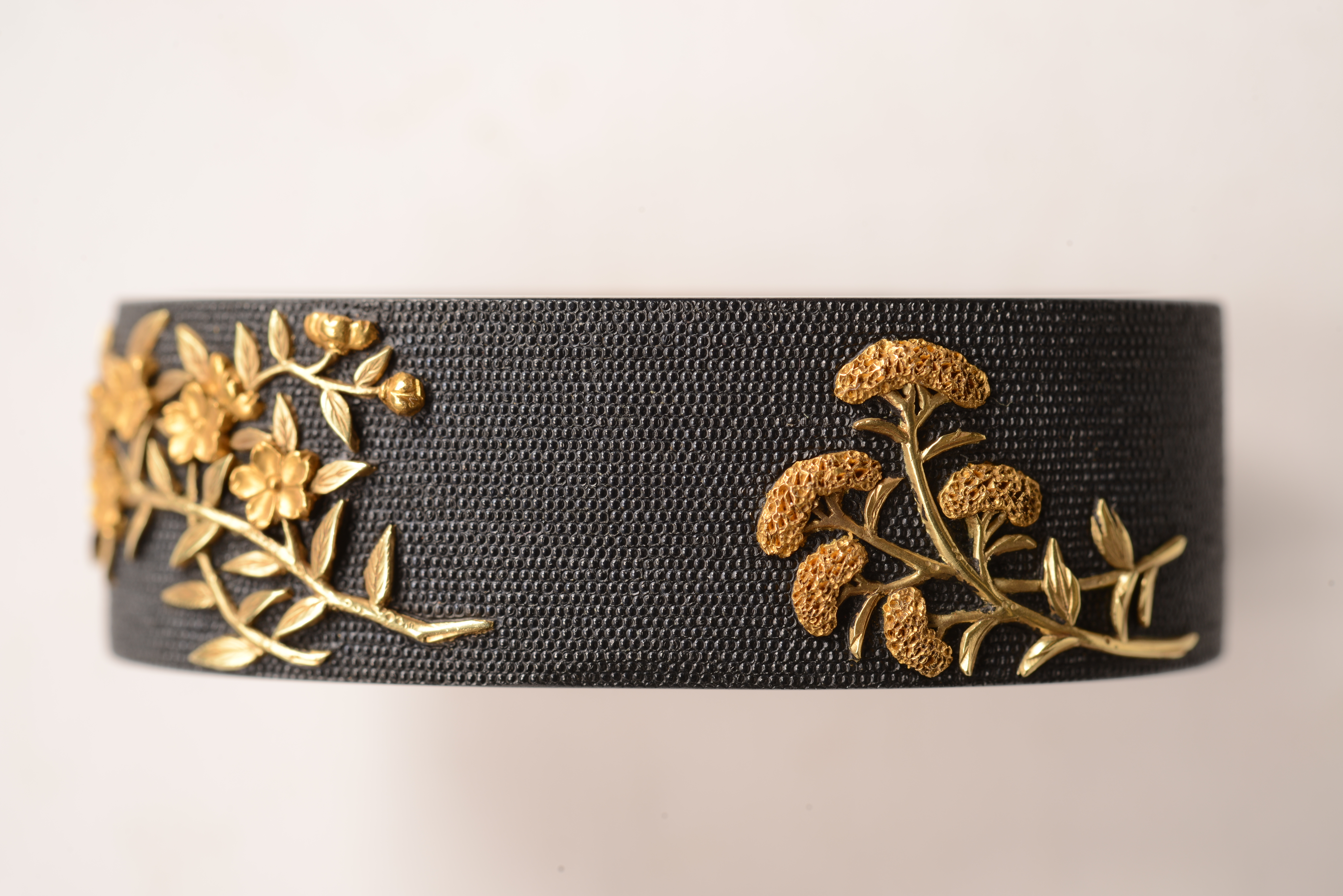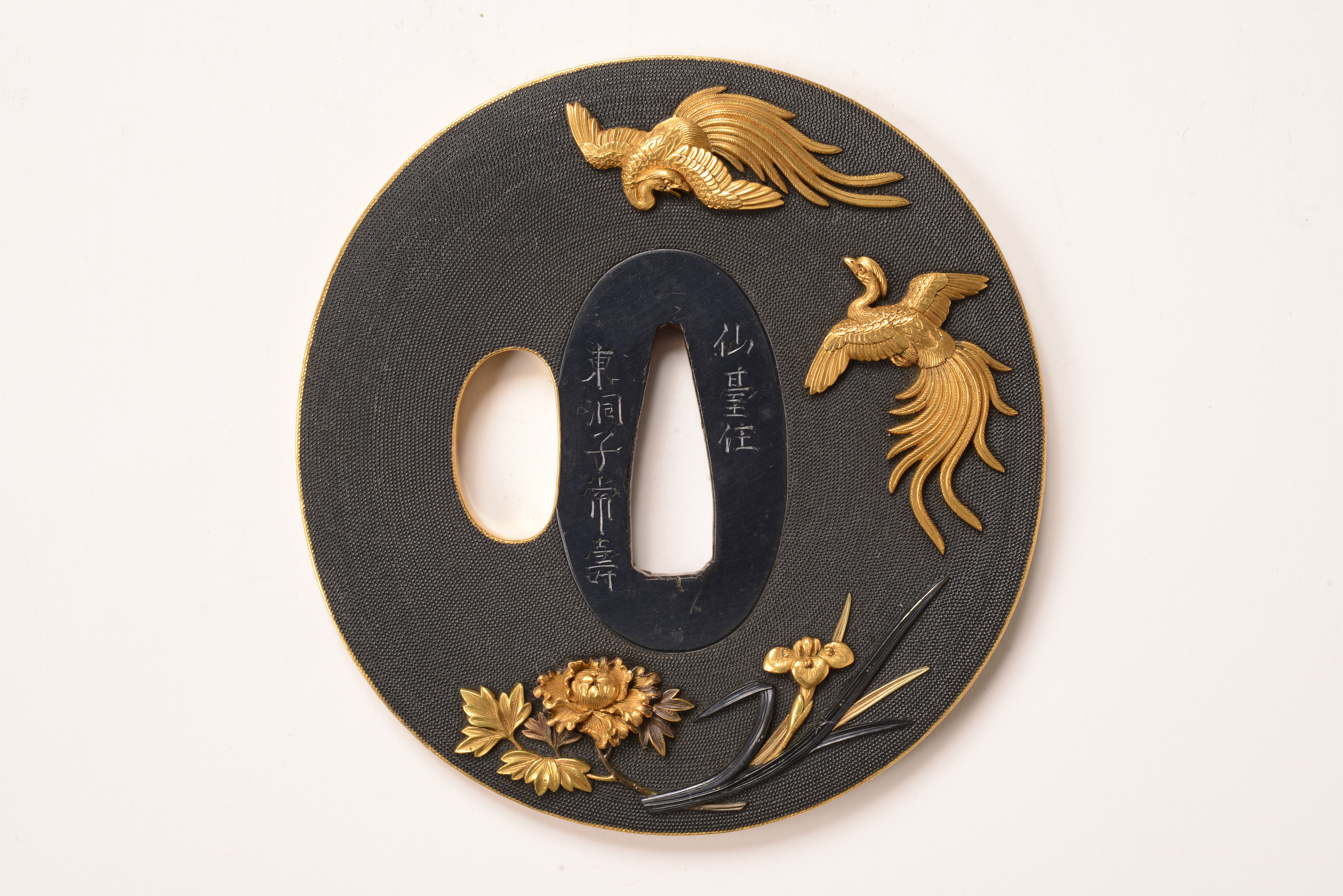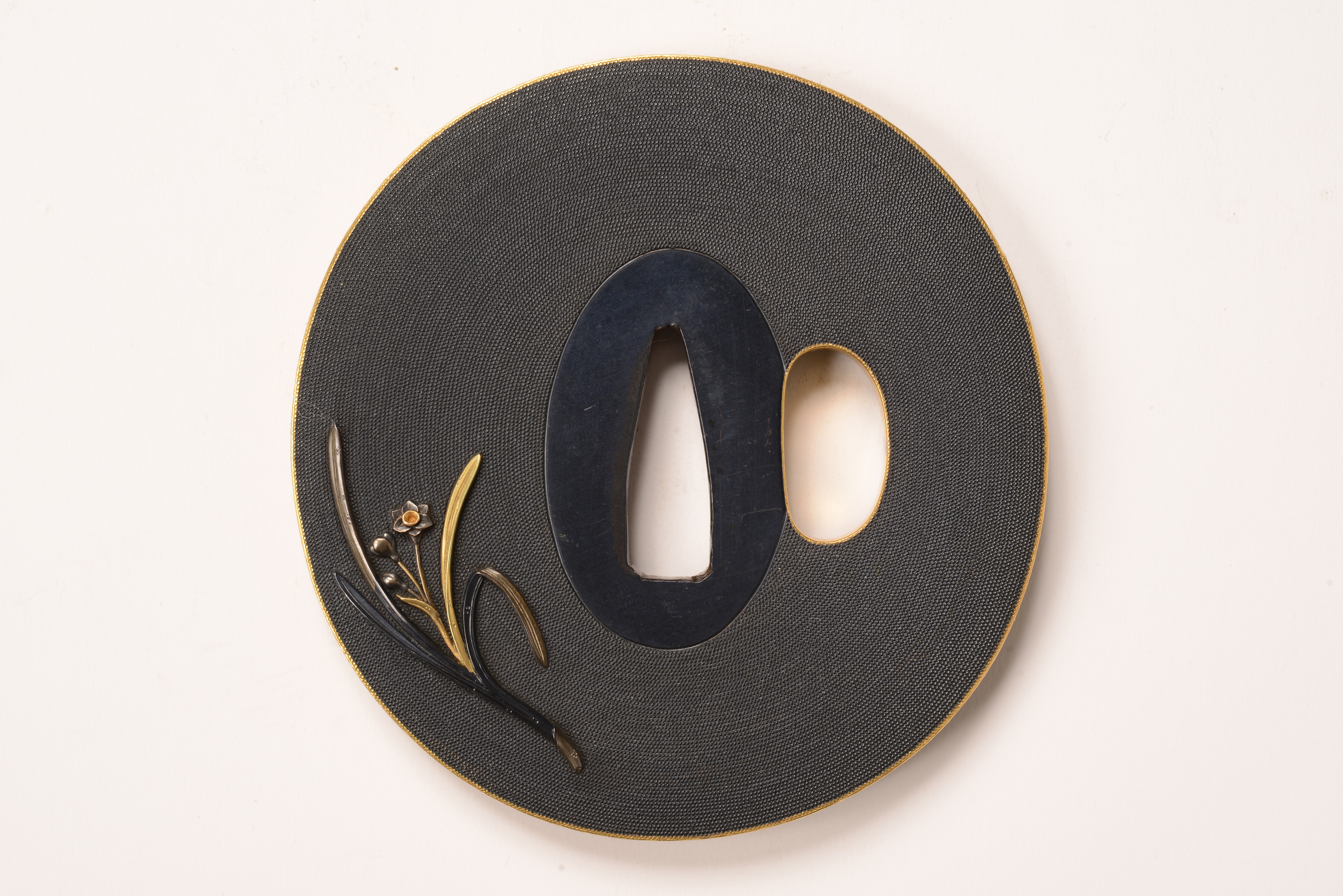 鐔 1枚 木柄 1本 縁・頭 各1点 烏金七々子地 色絵 函館市指定有形文化財