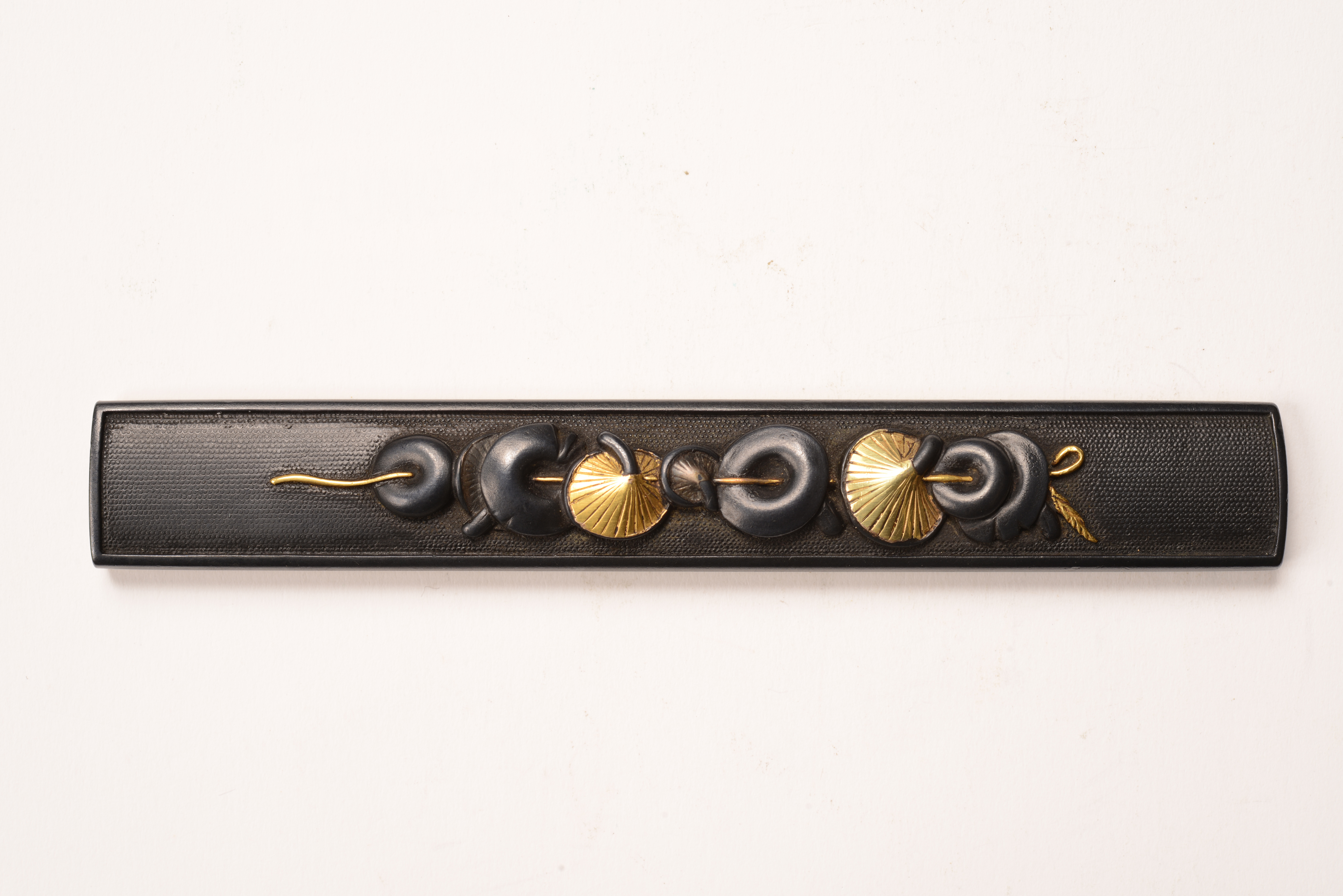小柄 1本 目貫 2点 烏金地 高彫 色絵 裏板金 函館市指定有形文化財