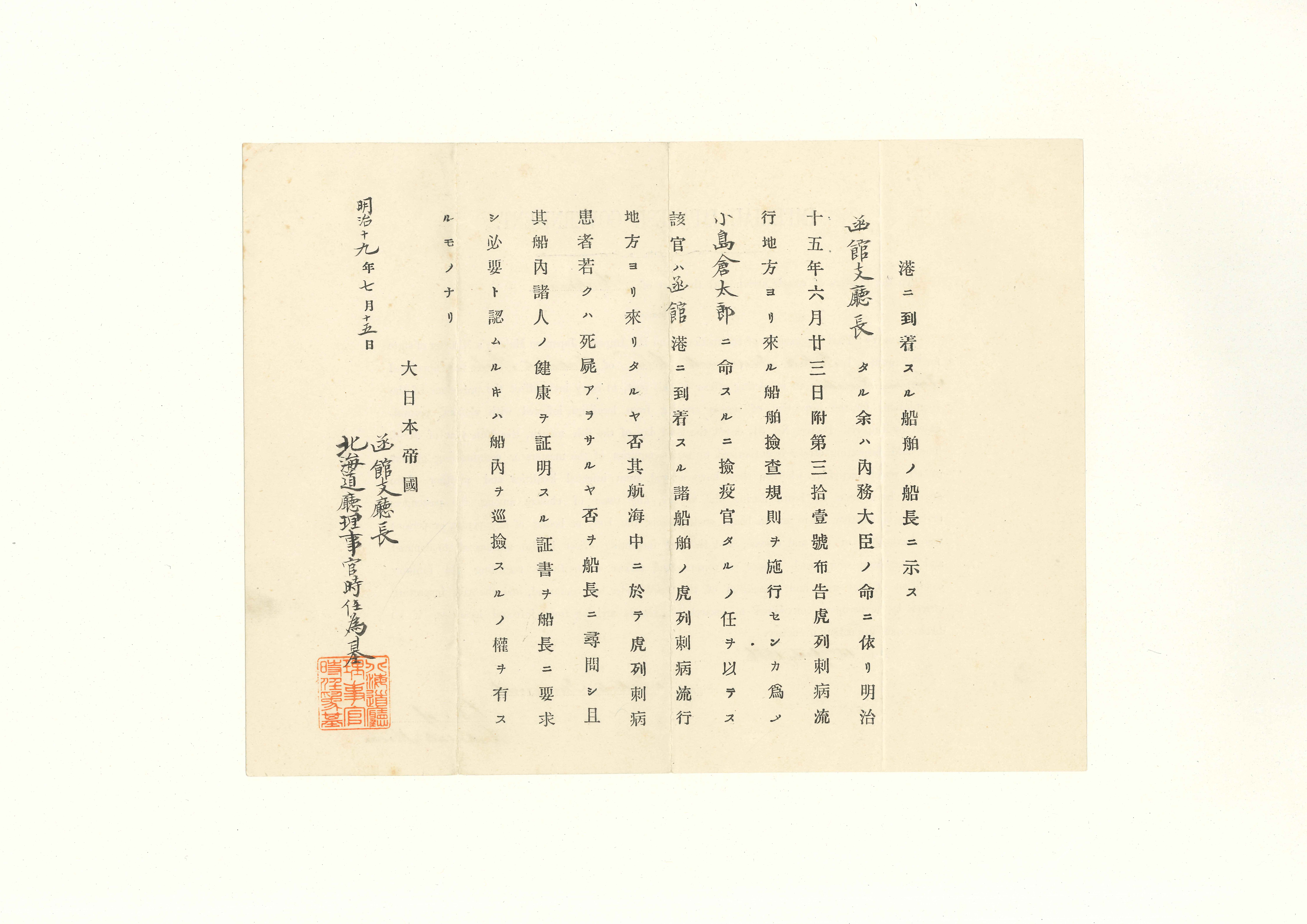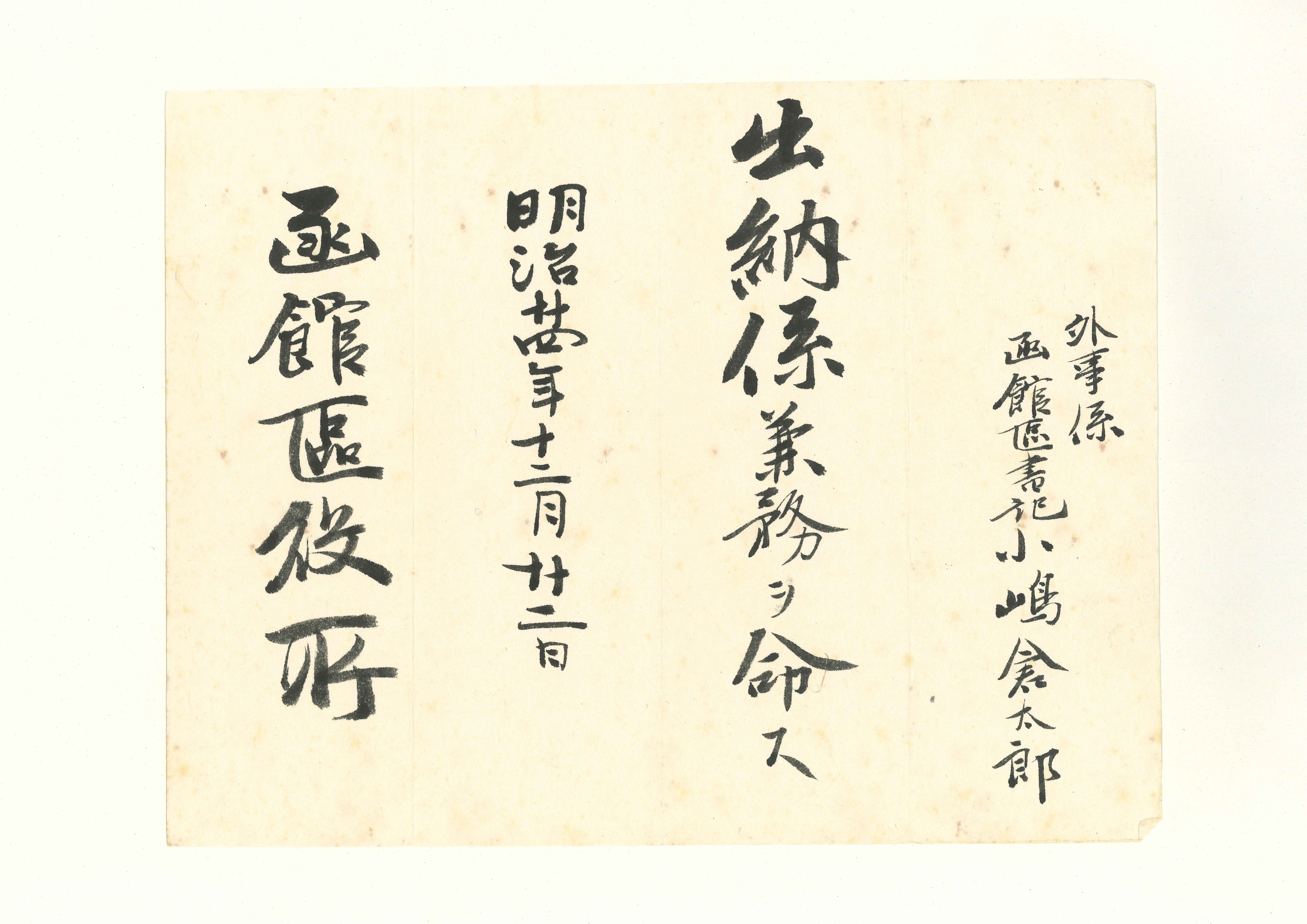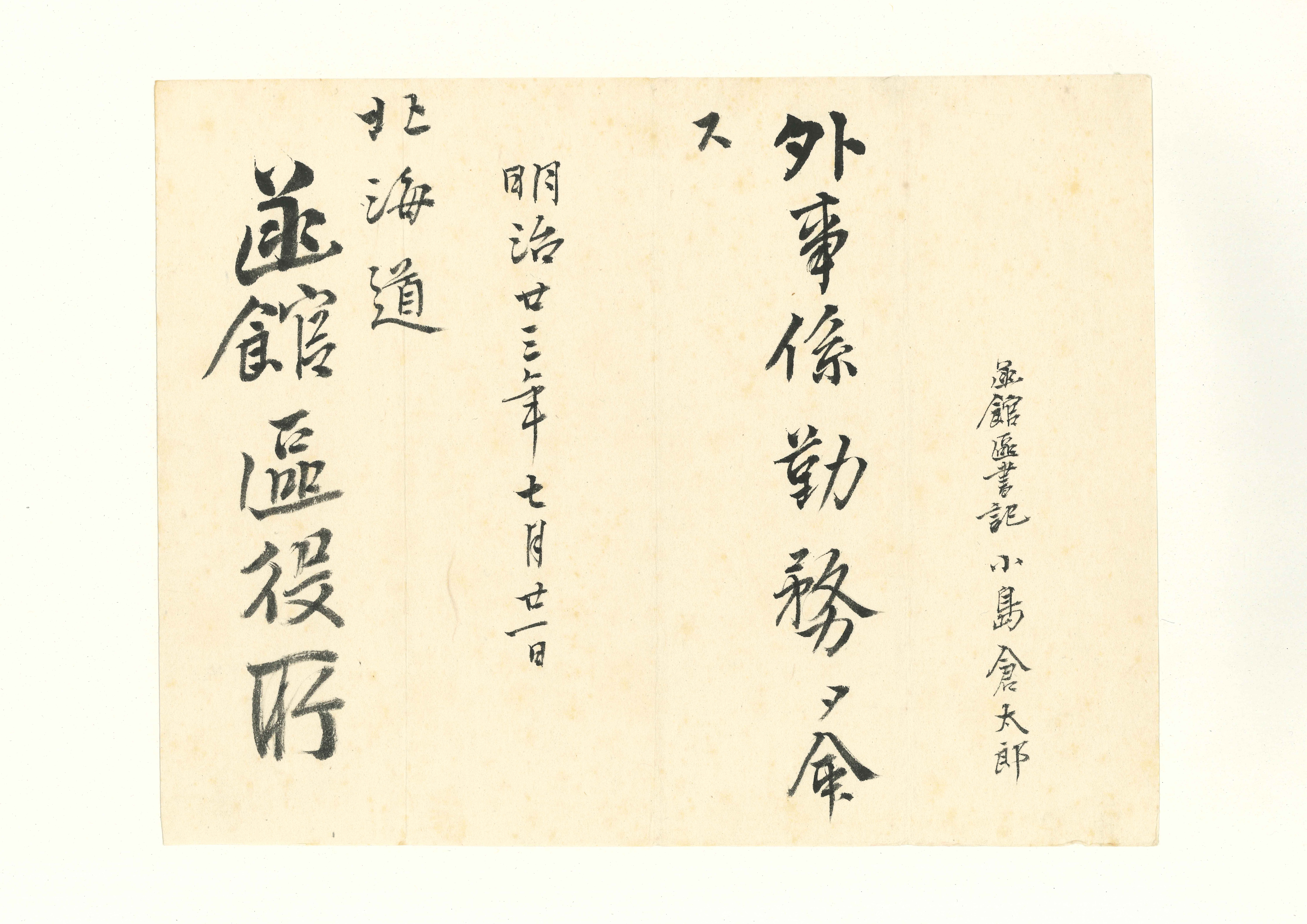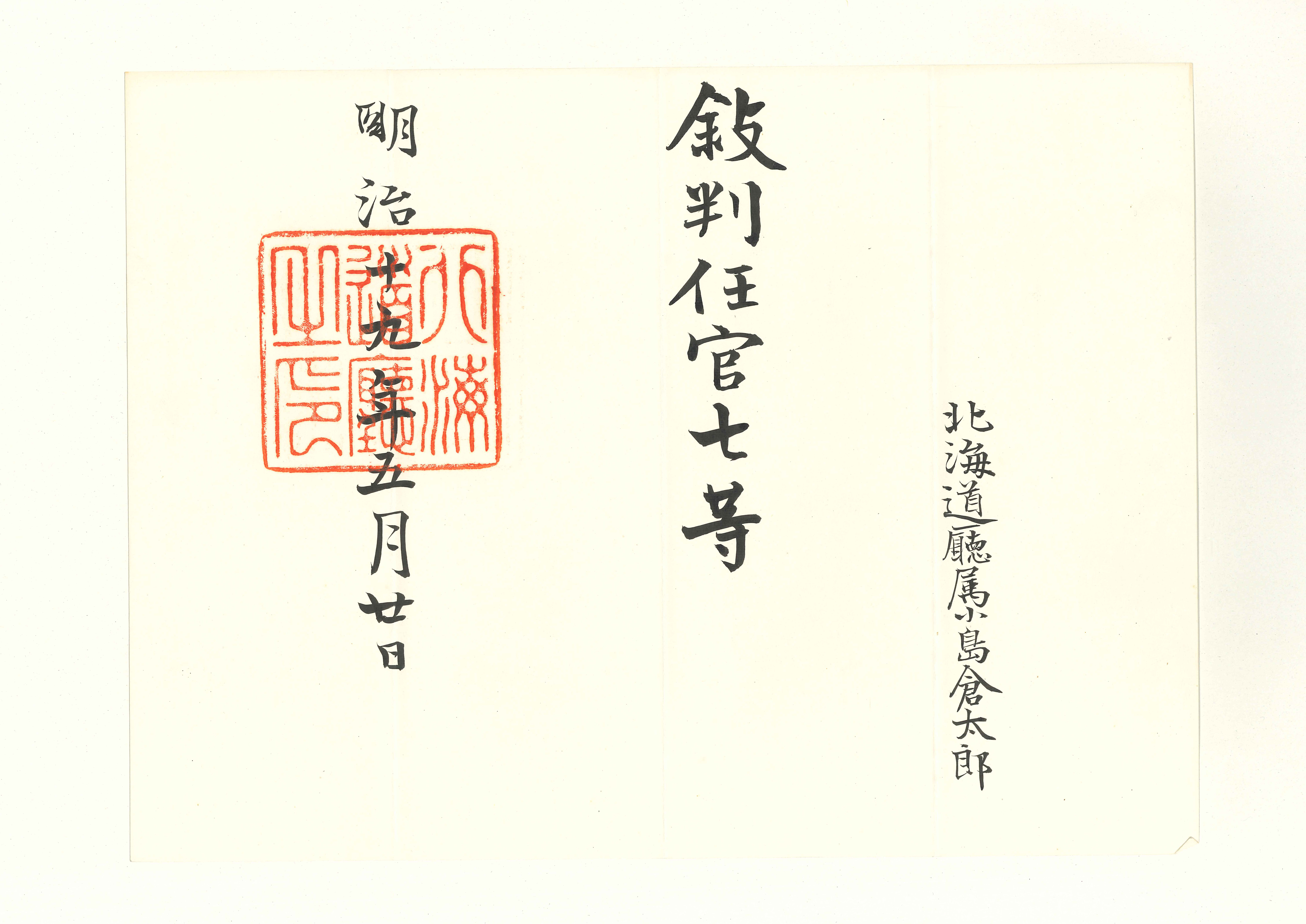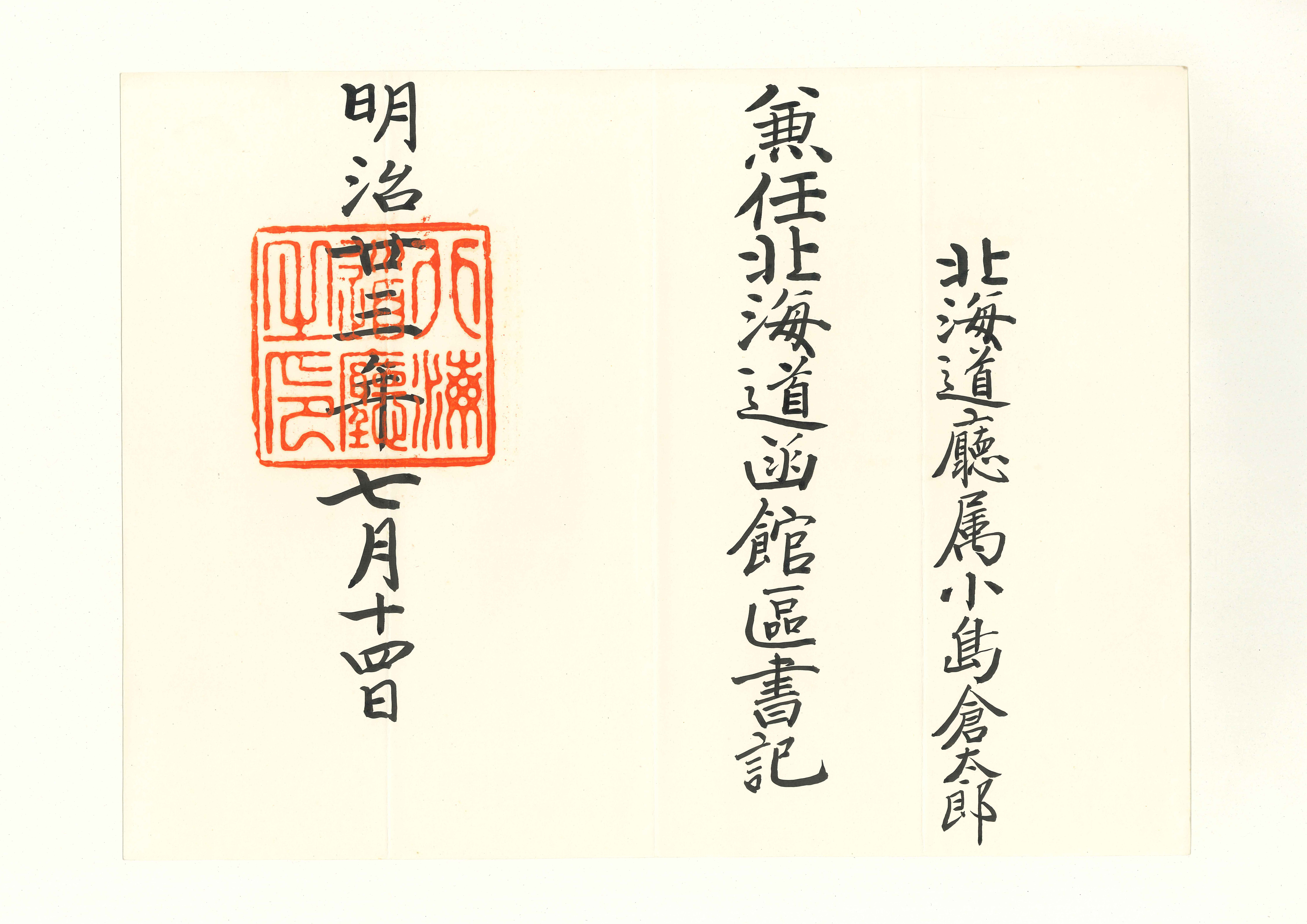 北海道庁から小島倉太郎に交付された辞令および文書類25通。函館区辞令3点を含む。