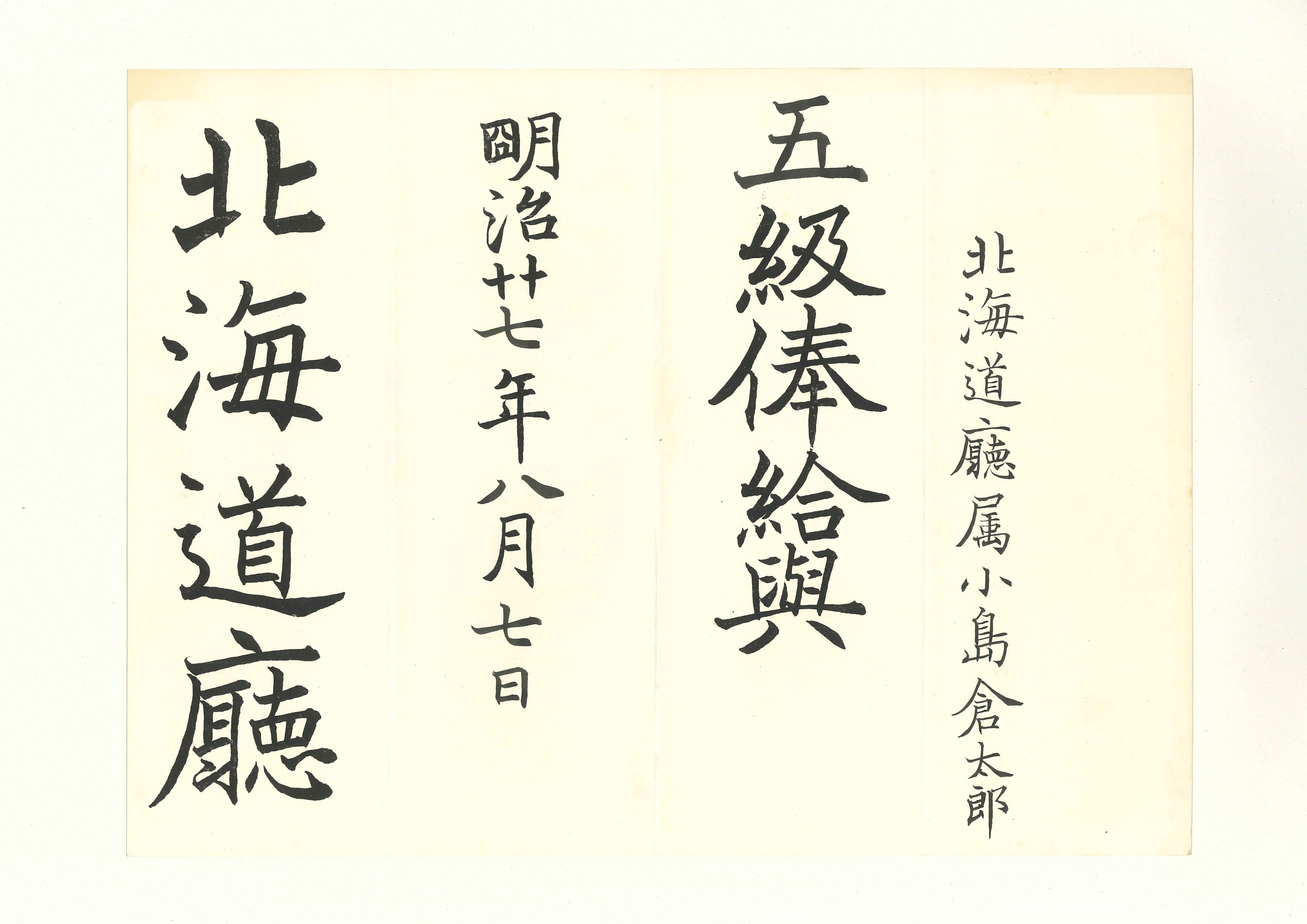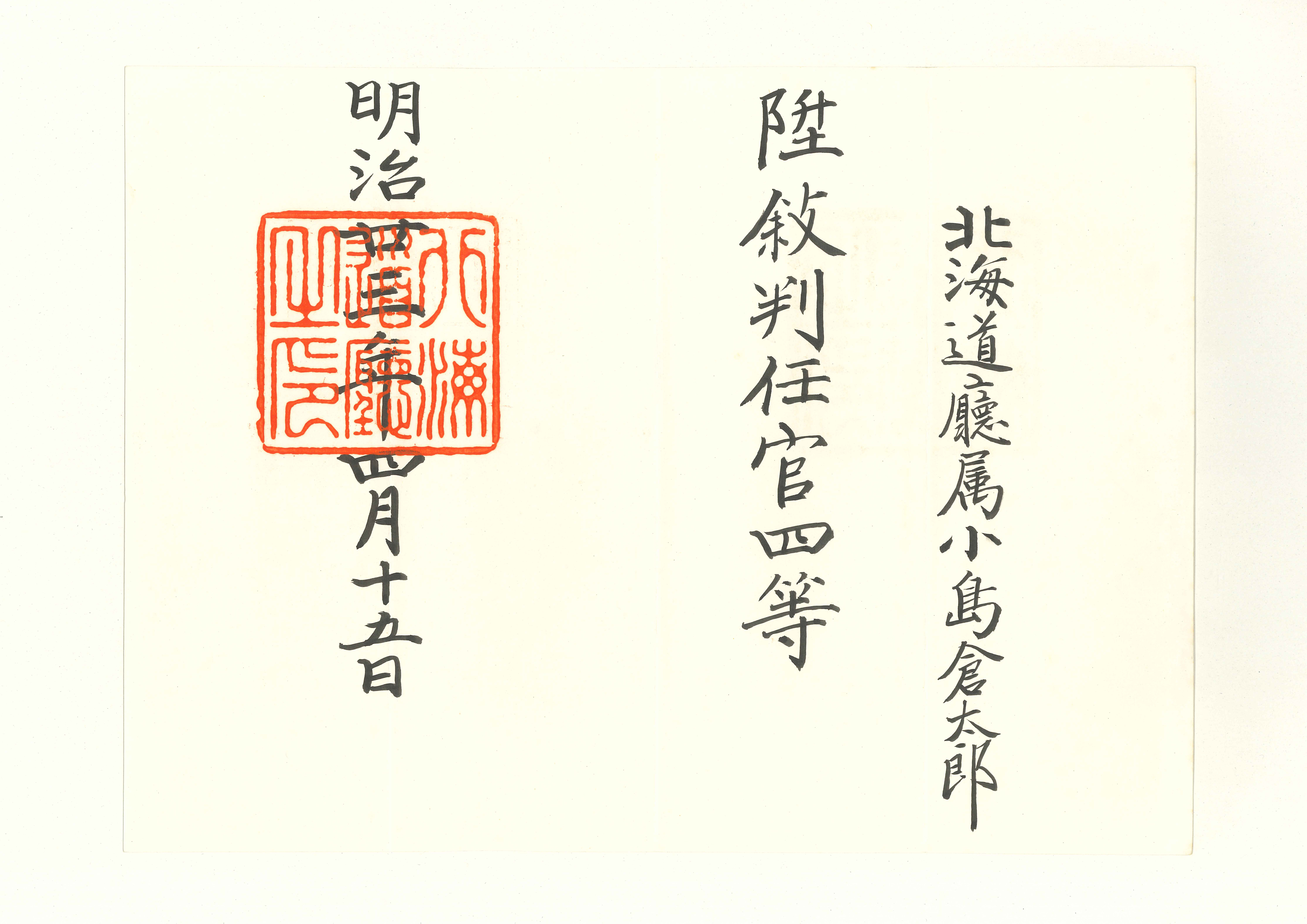 小島倉太郎辞令・文書類 北海道庁関連