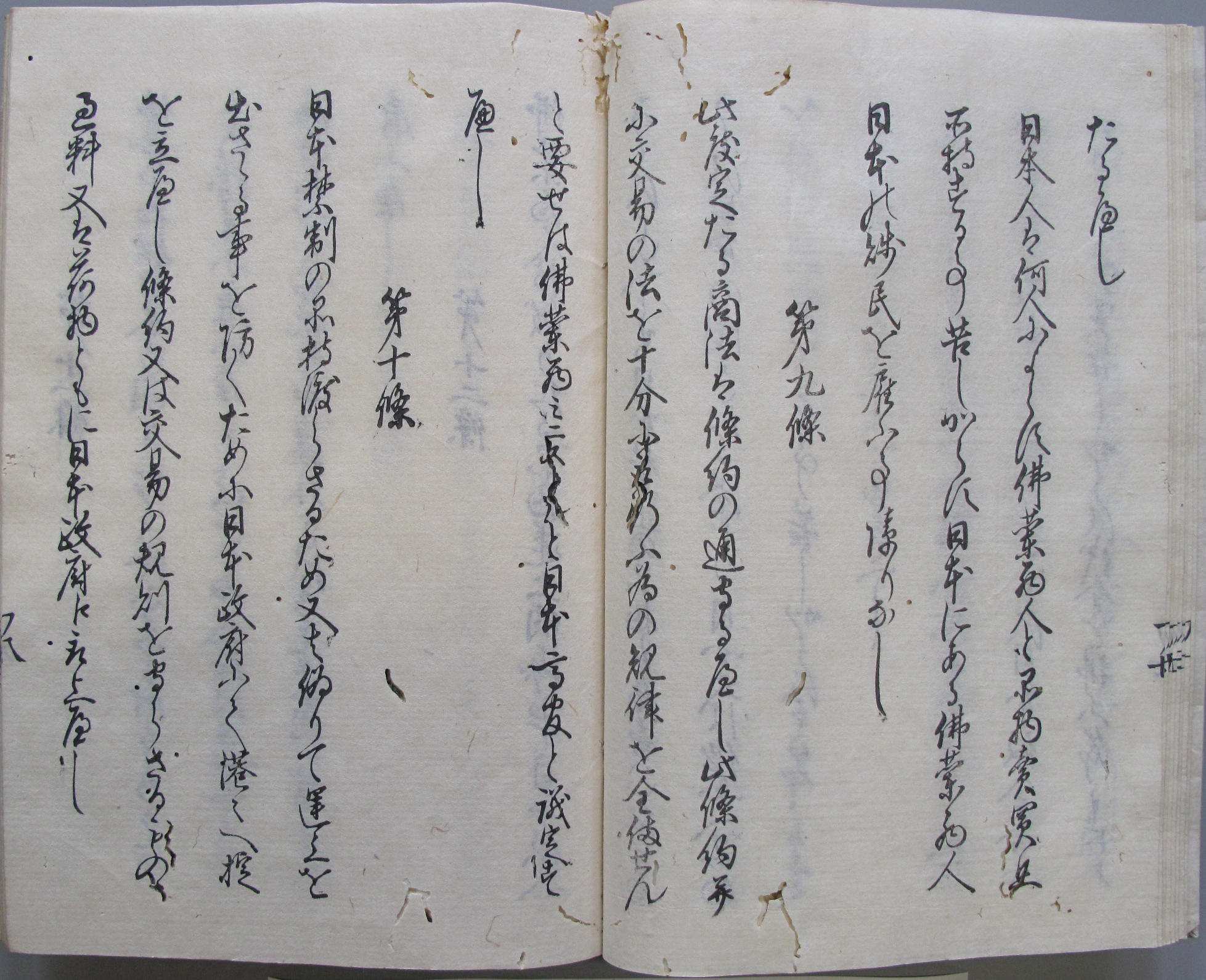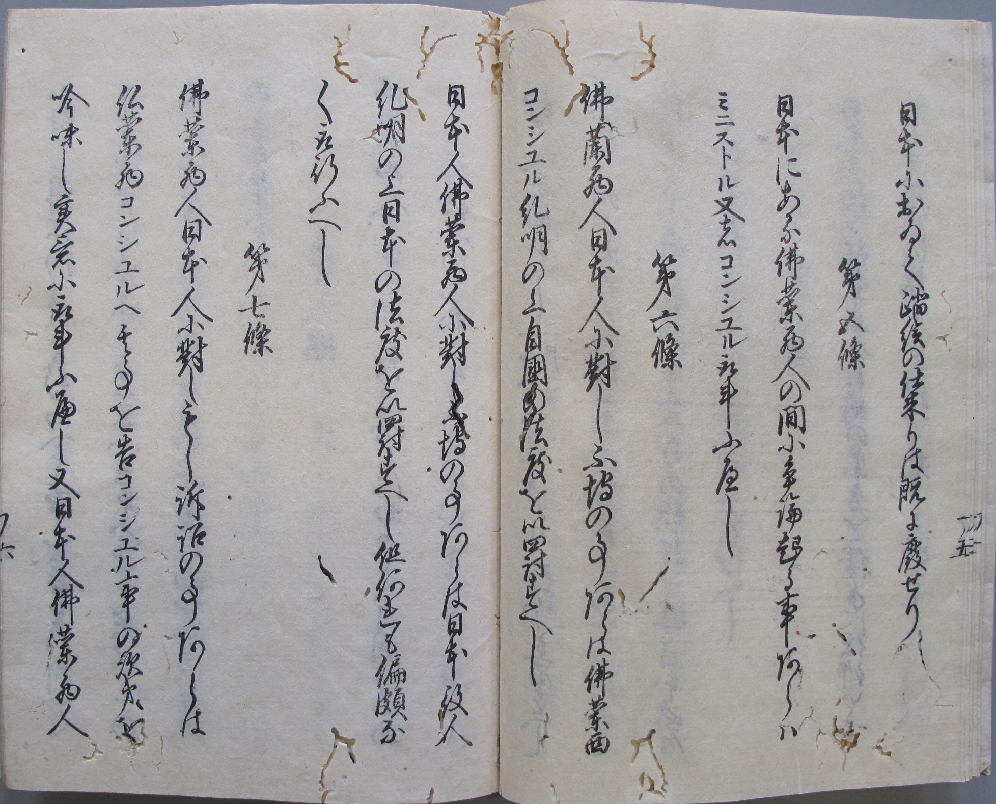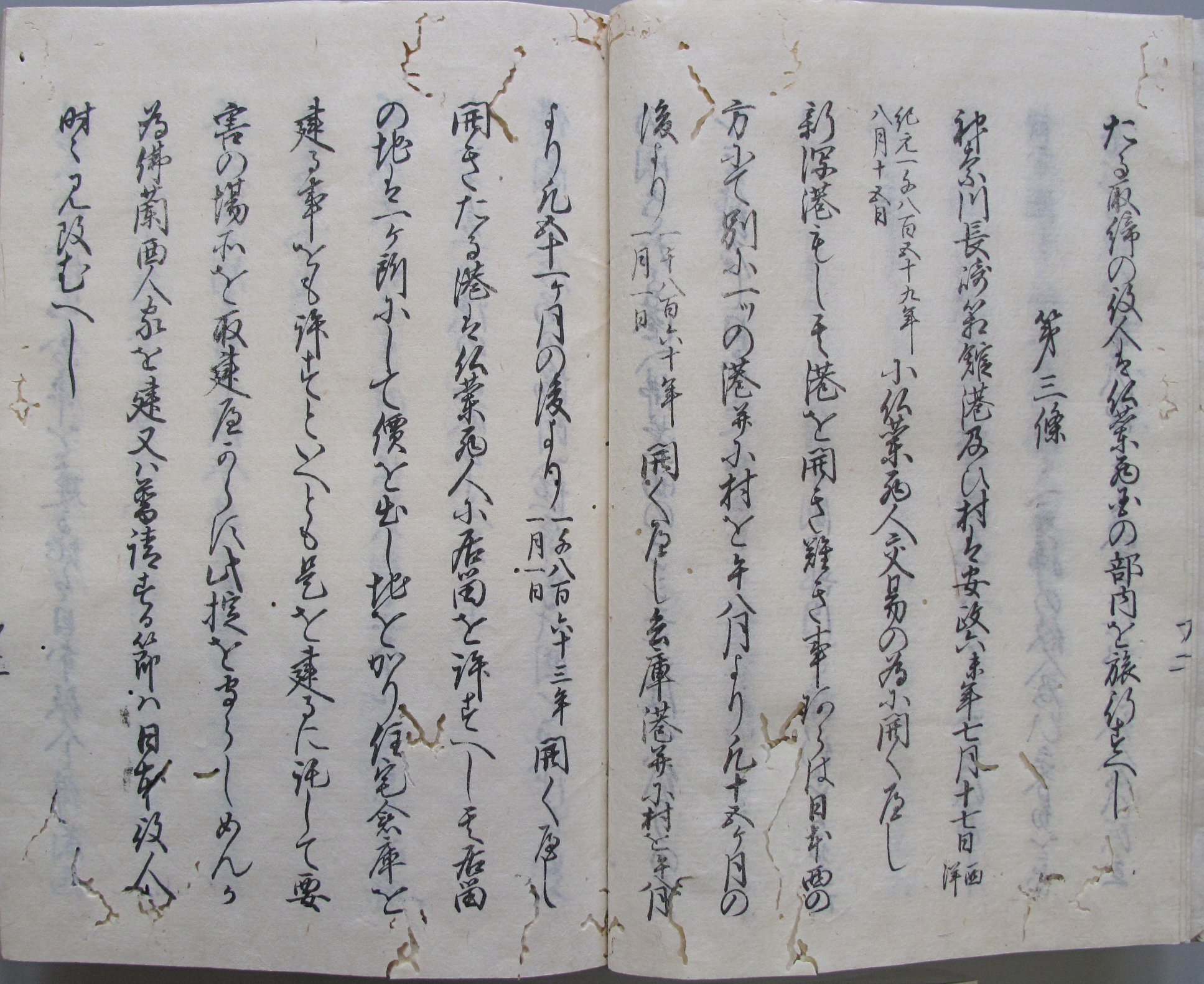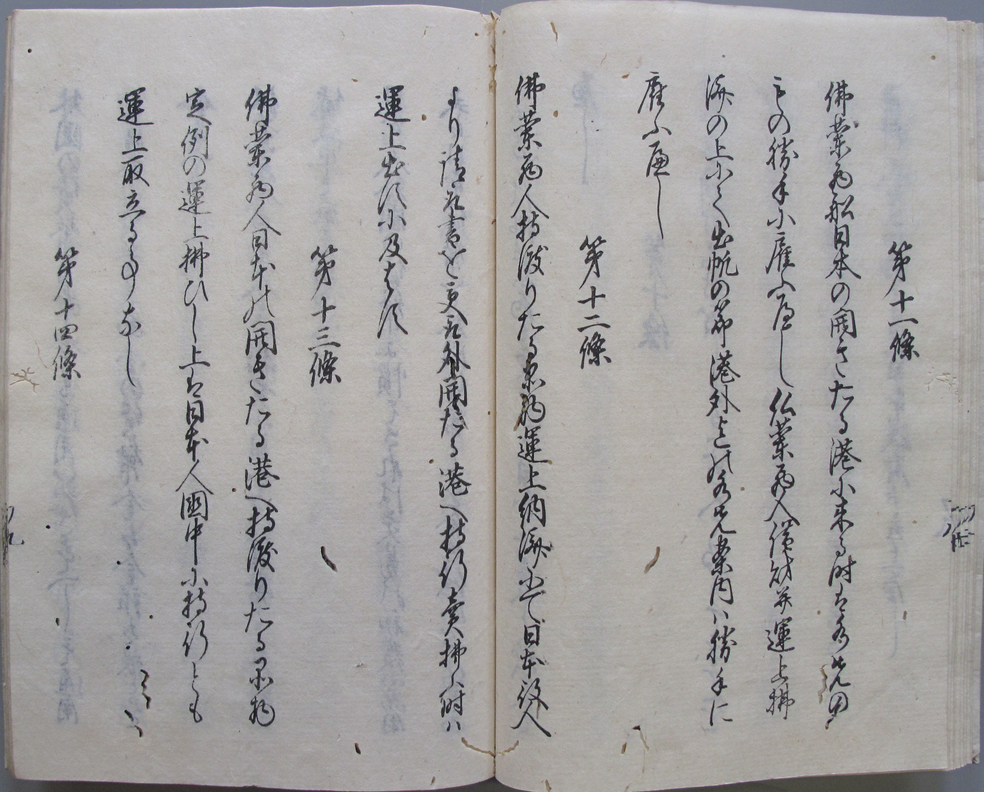 木版本 安政5(1858)年に米・露・仏・英・蘭と通商条約を締結。その条約文などについて書かれています。通商条約の内容は、印刷物として広く流布しました。