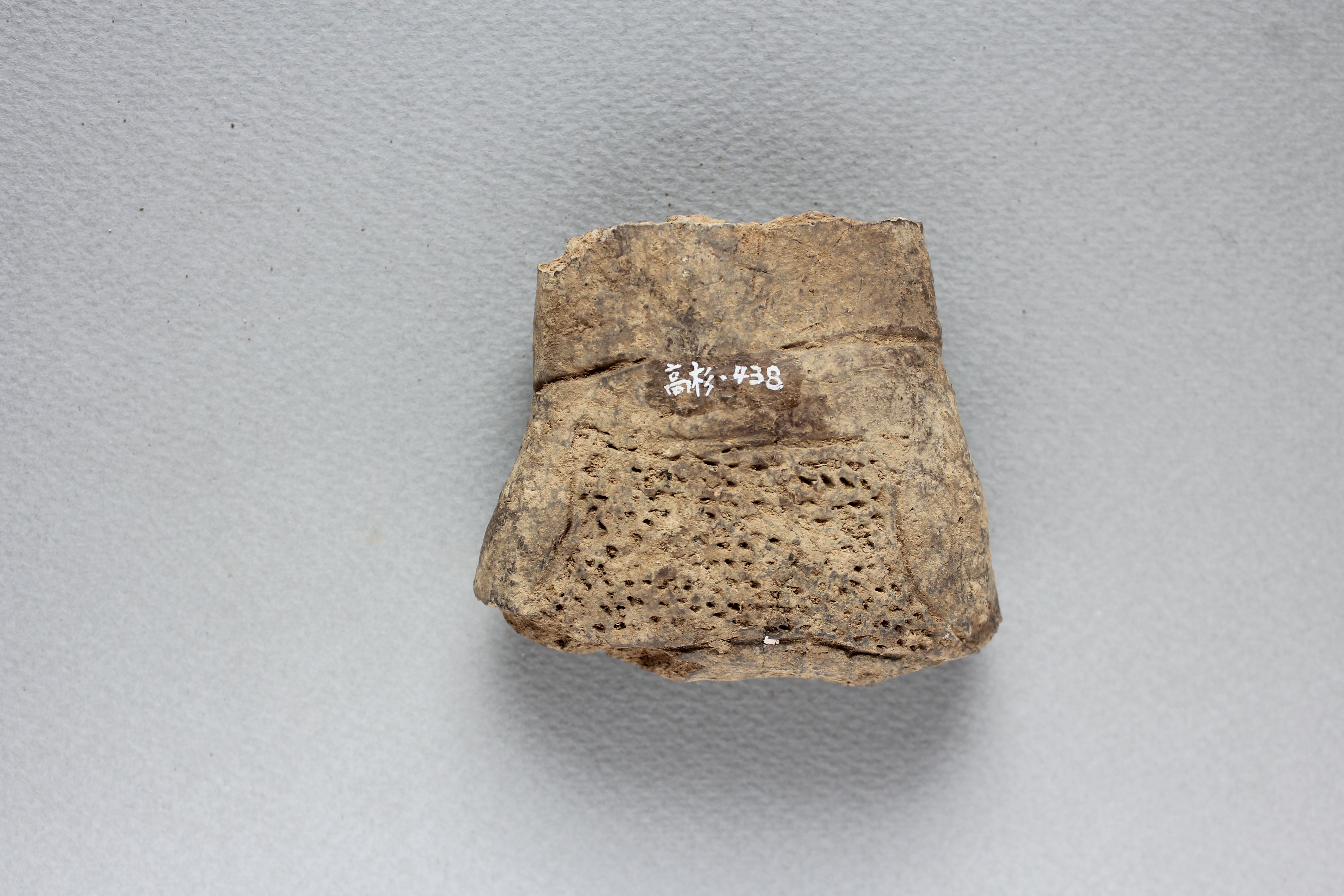 腹部と腰のみ残る。腹部にヘソと正中線の表現有り。腰には沈線で腹掛けあるいは下帯が描かれている。脚は折れているが屈折しているとみられる。