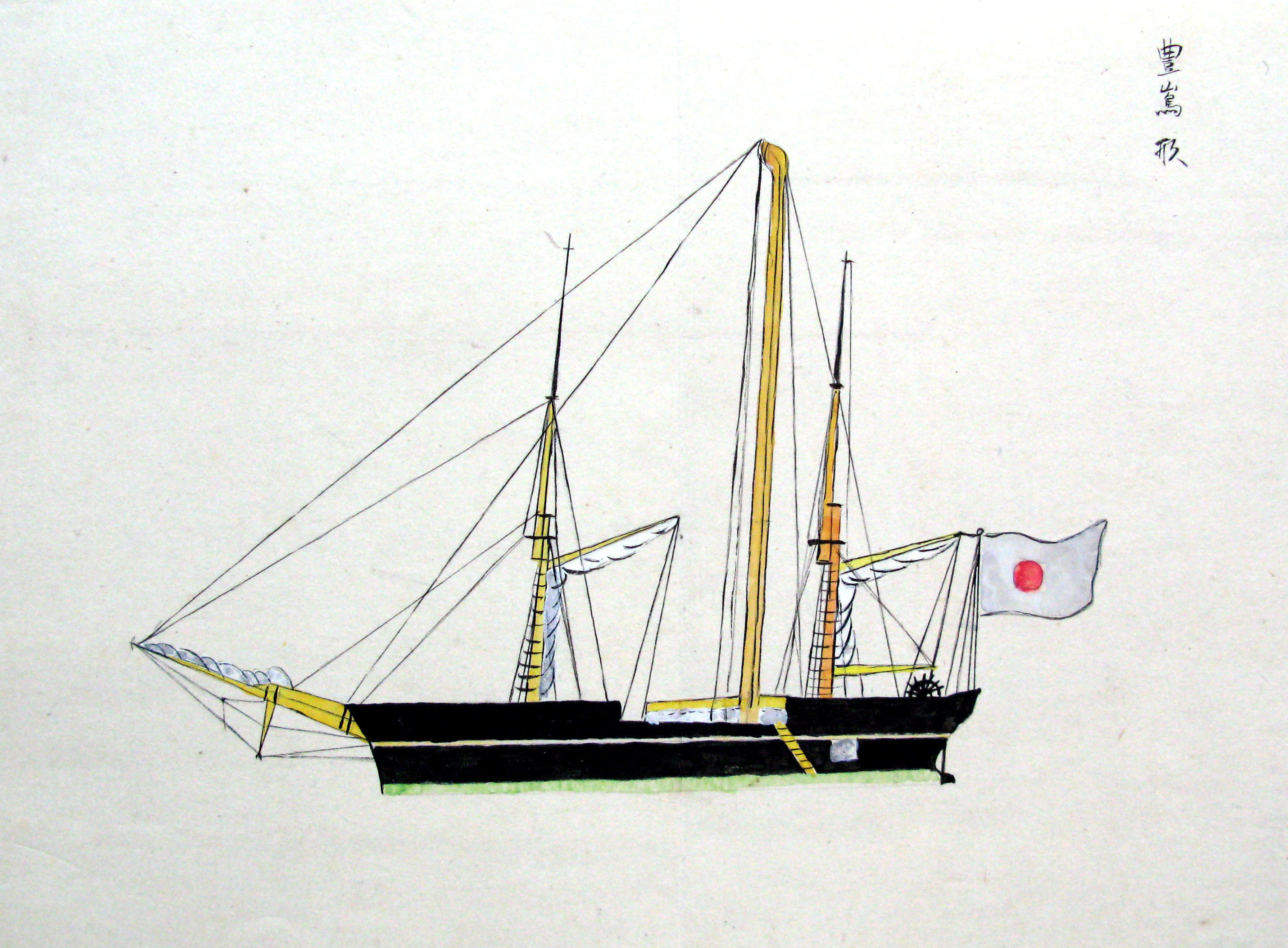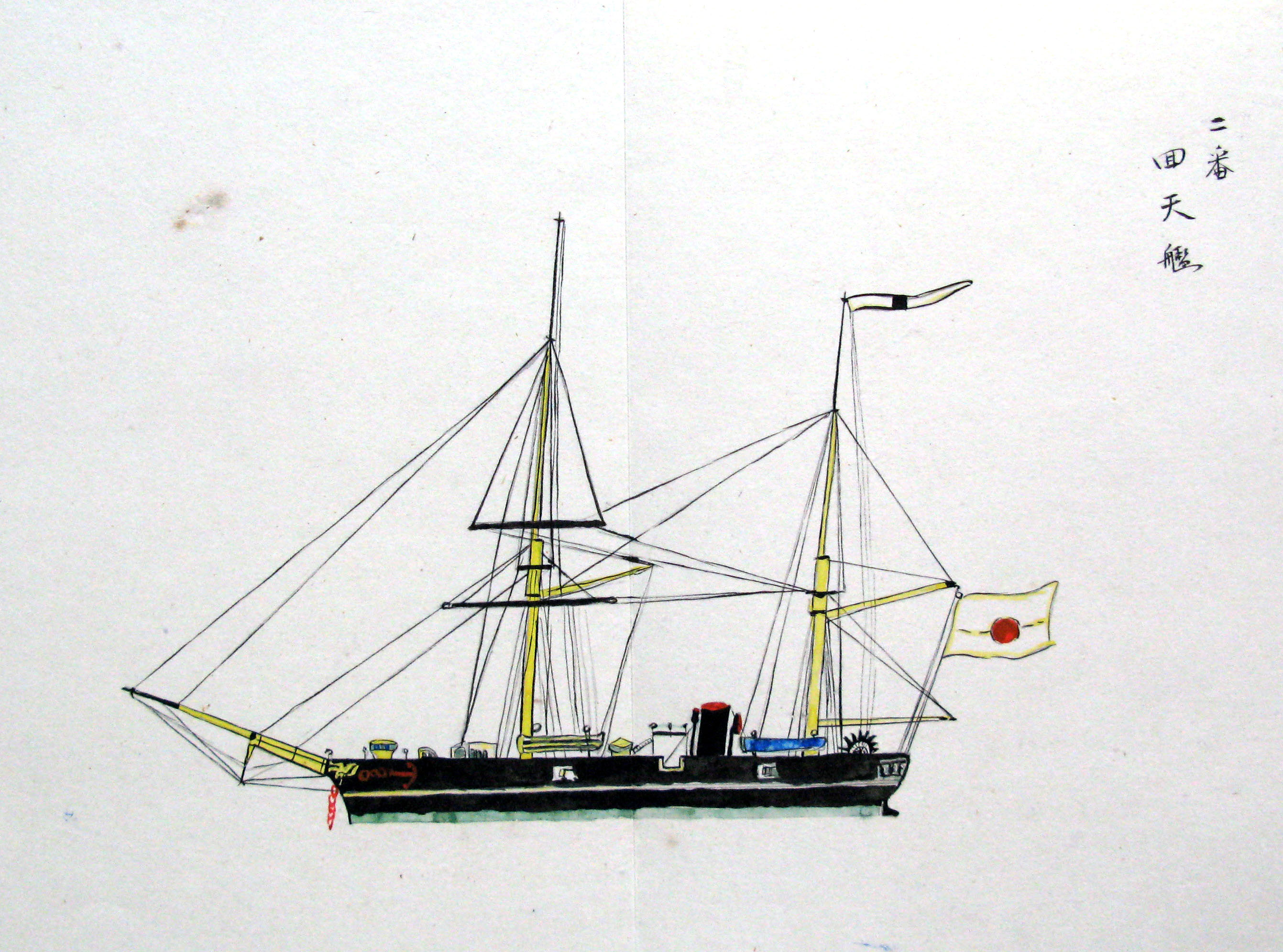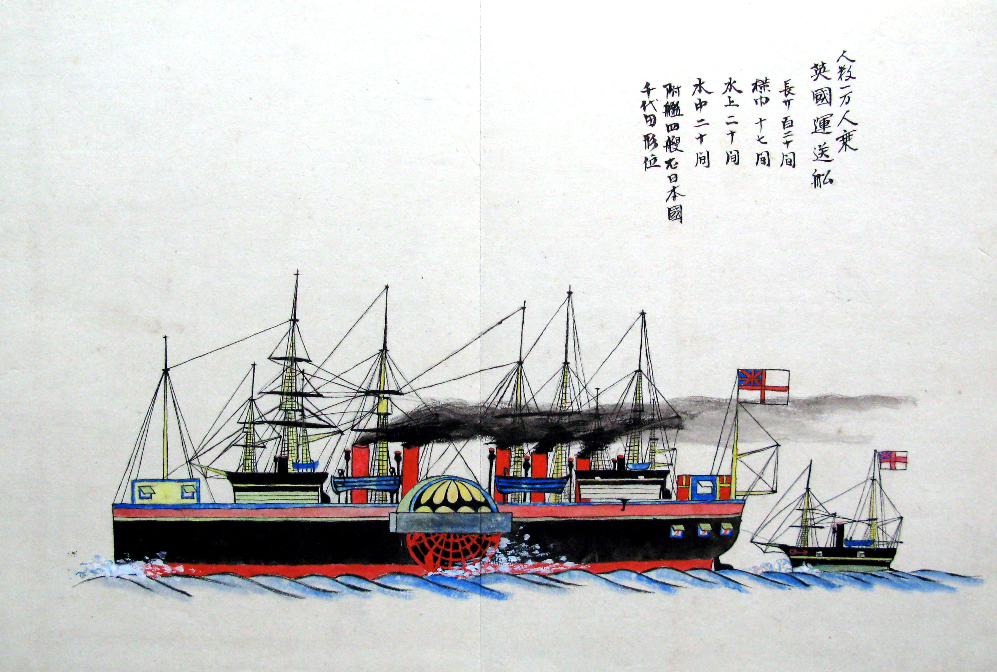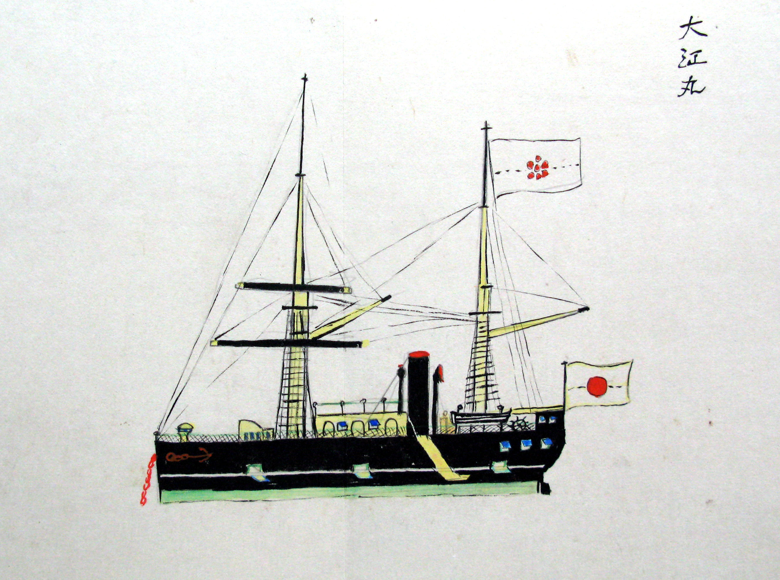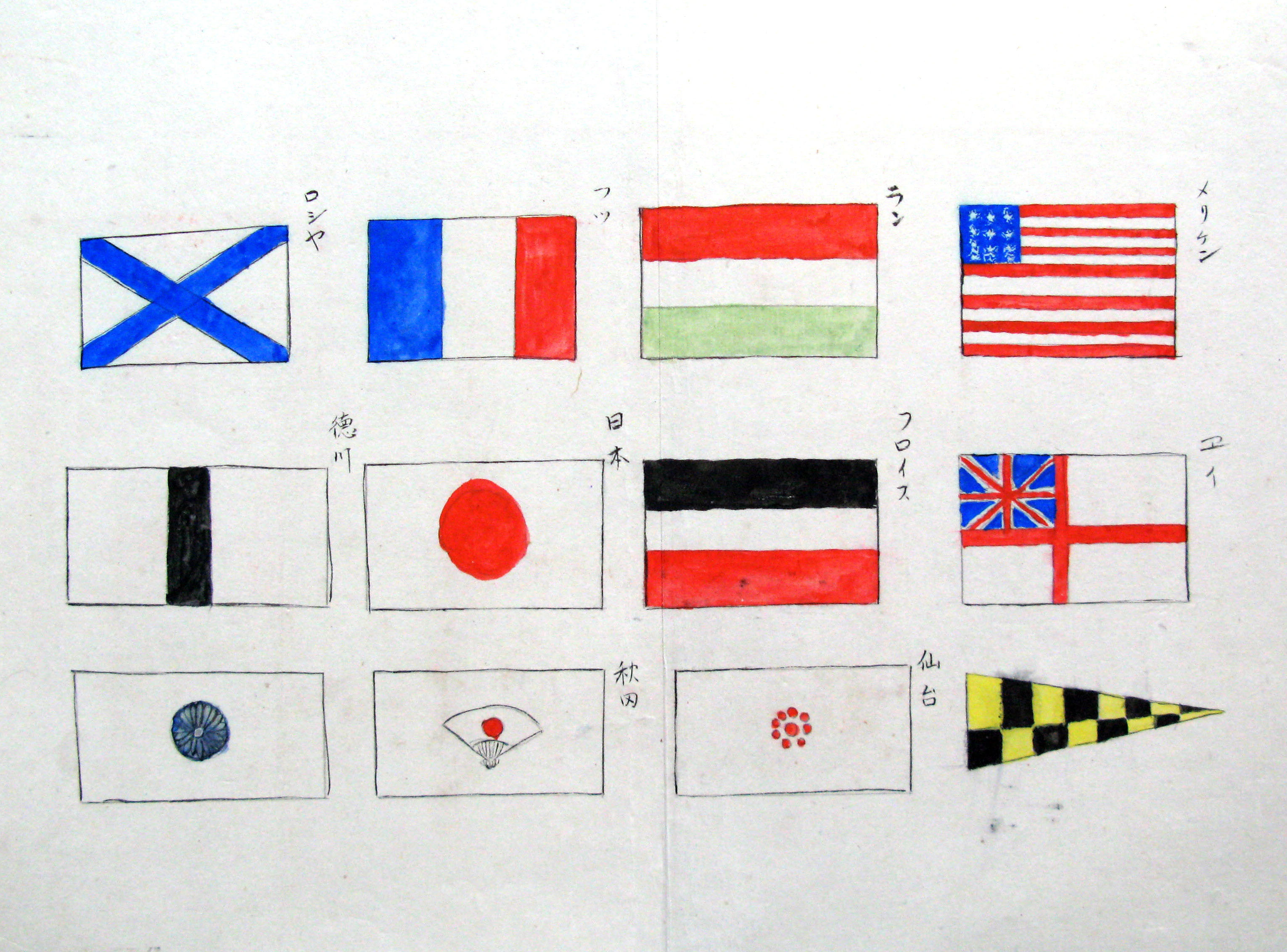 折本(紙本着色) 幕府が所有していた軍艦など37隻が描かれ、後半には箱館港に集結する軍艦・宮古湾での海戦の様子、江差で座礁する開陽などを描いた部分が含まれています。