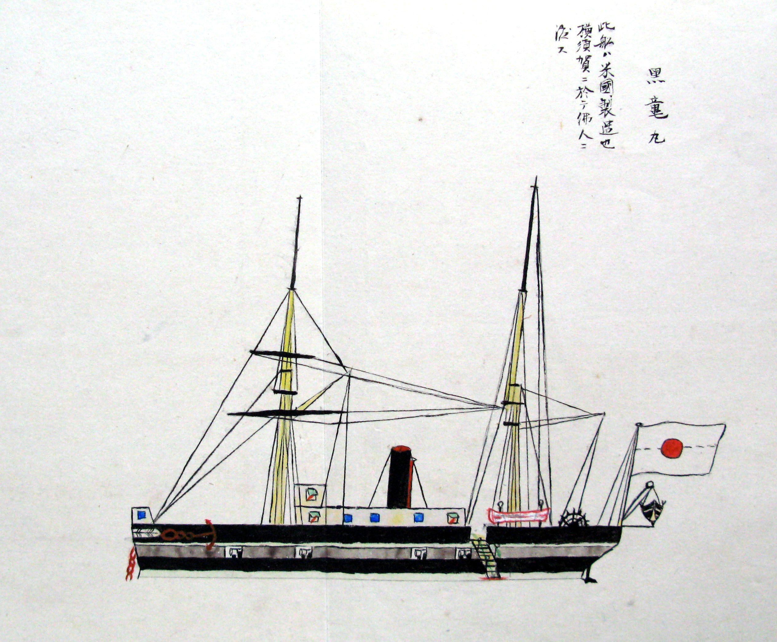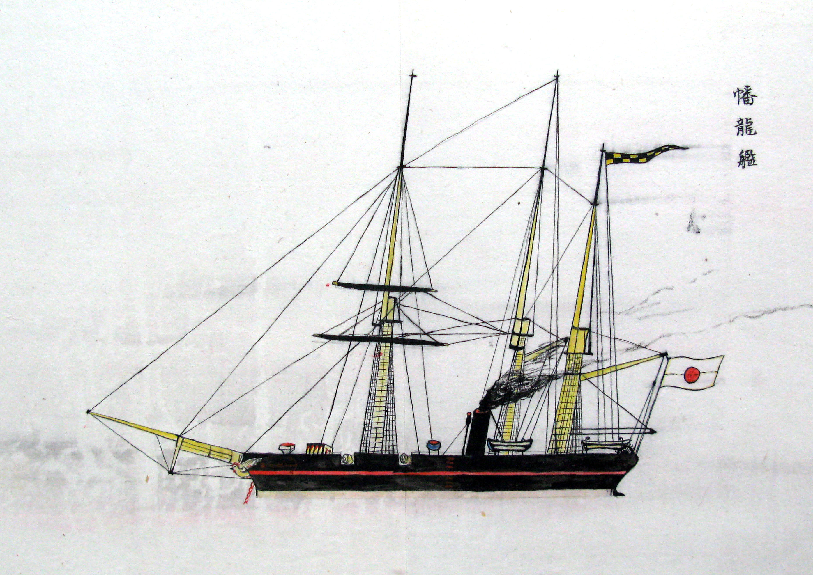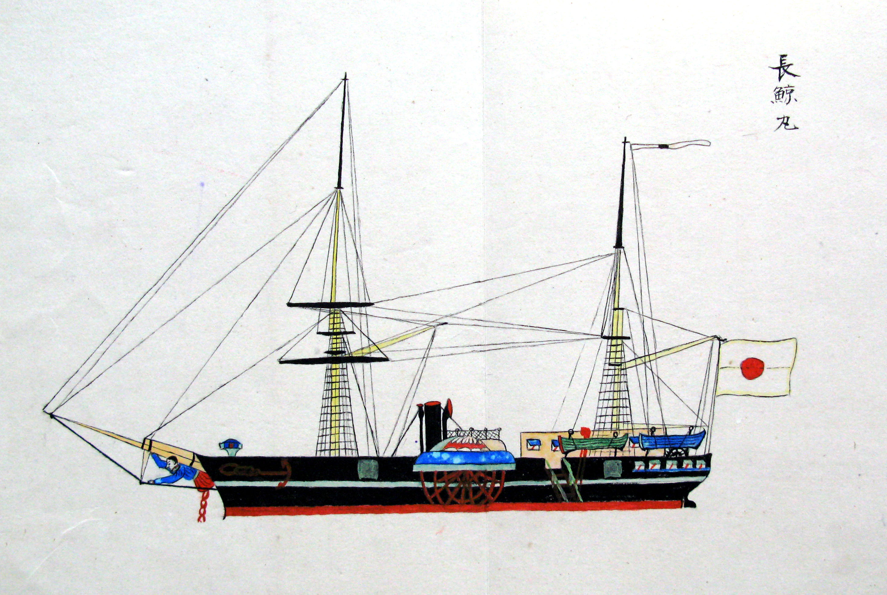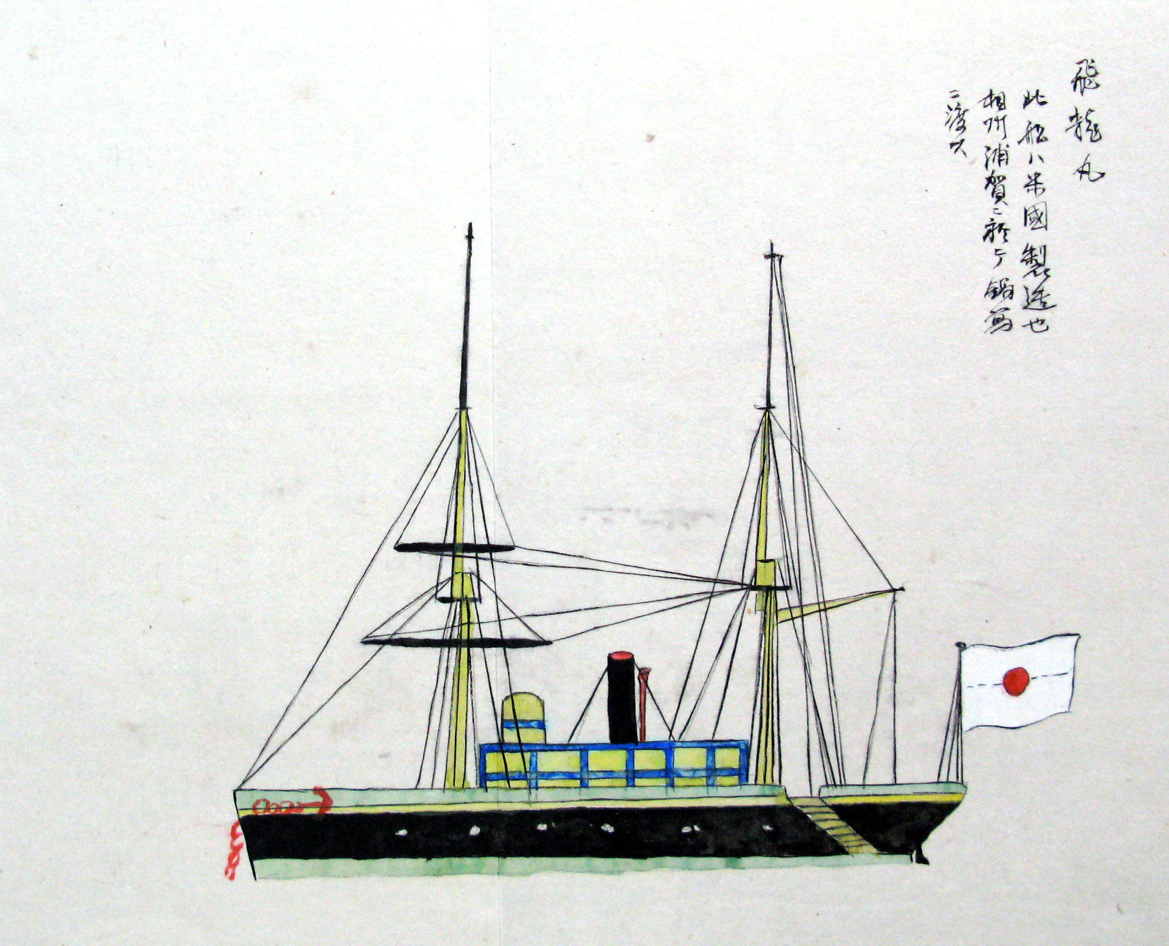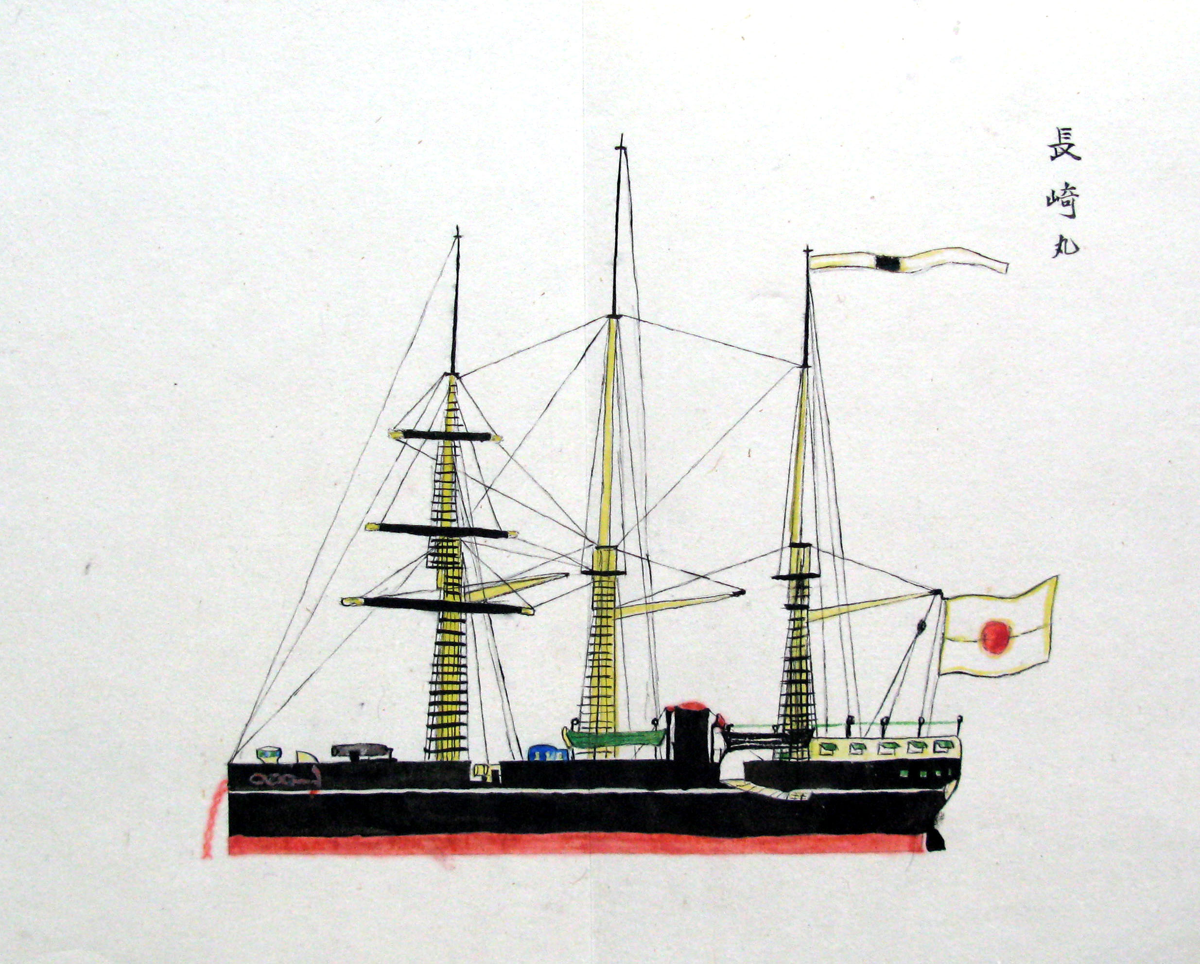 折本(紙本着色) 幕府が所有していた軍艦など37隻が描かれ、後半には箱館港に集結する軍艦・宮古湾での海戦の様子、江差で座礁する開陽などを描いた部分が含まれています。
