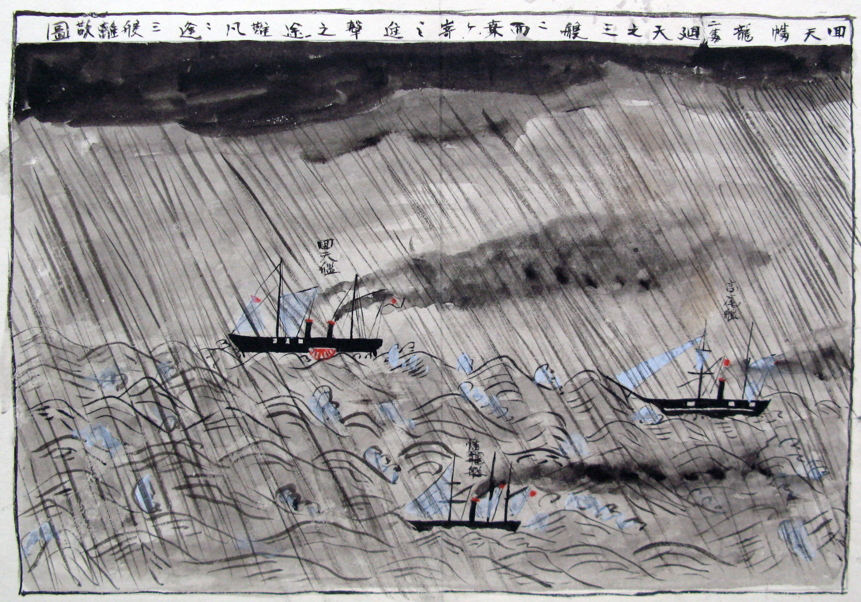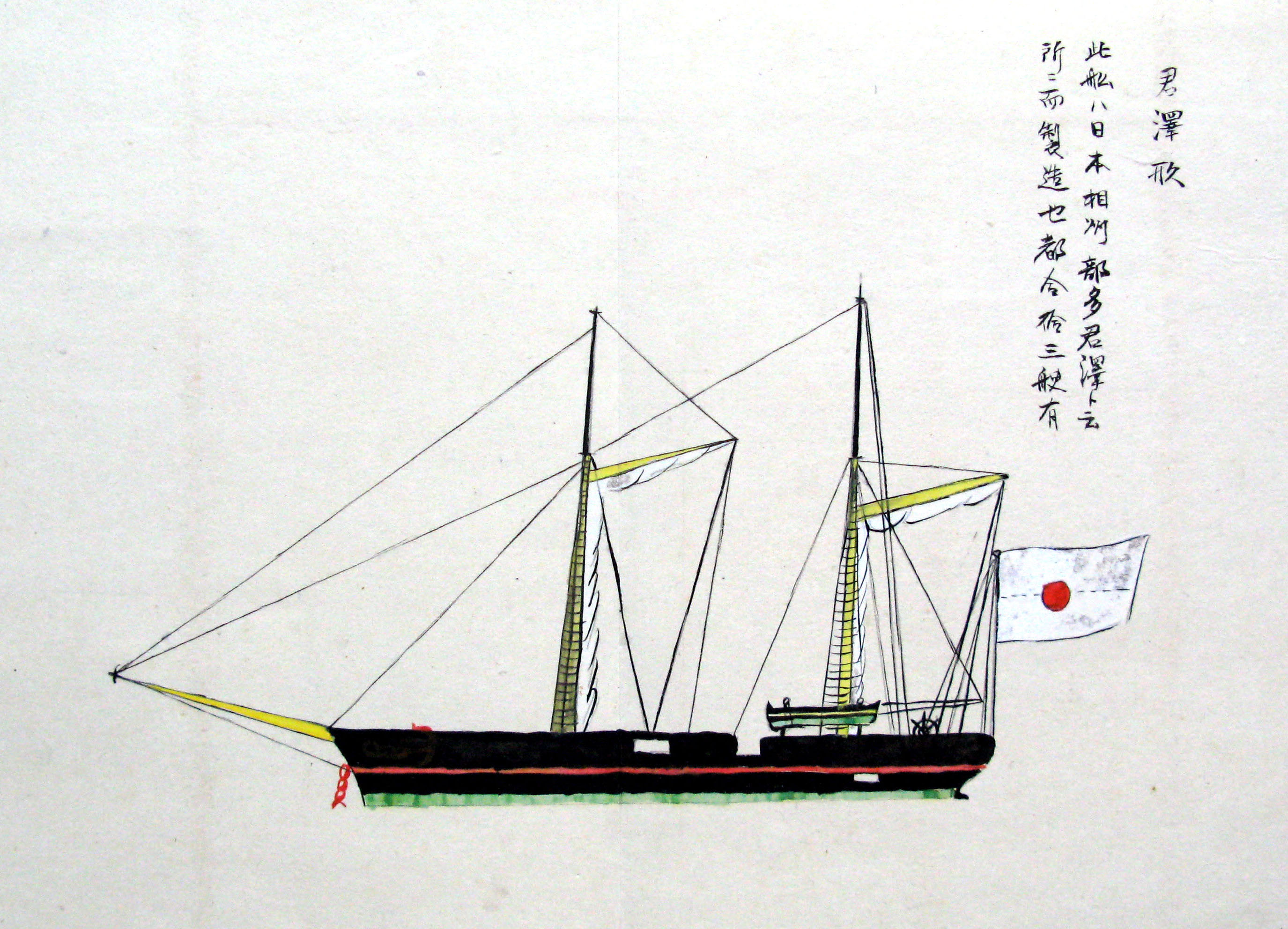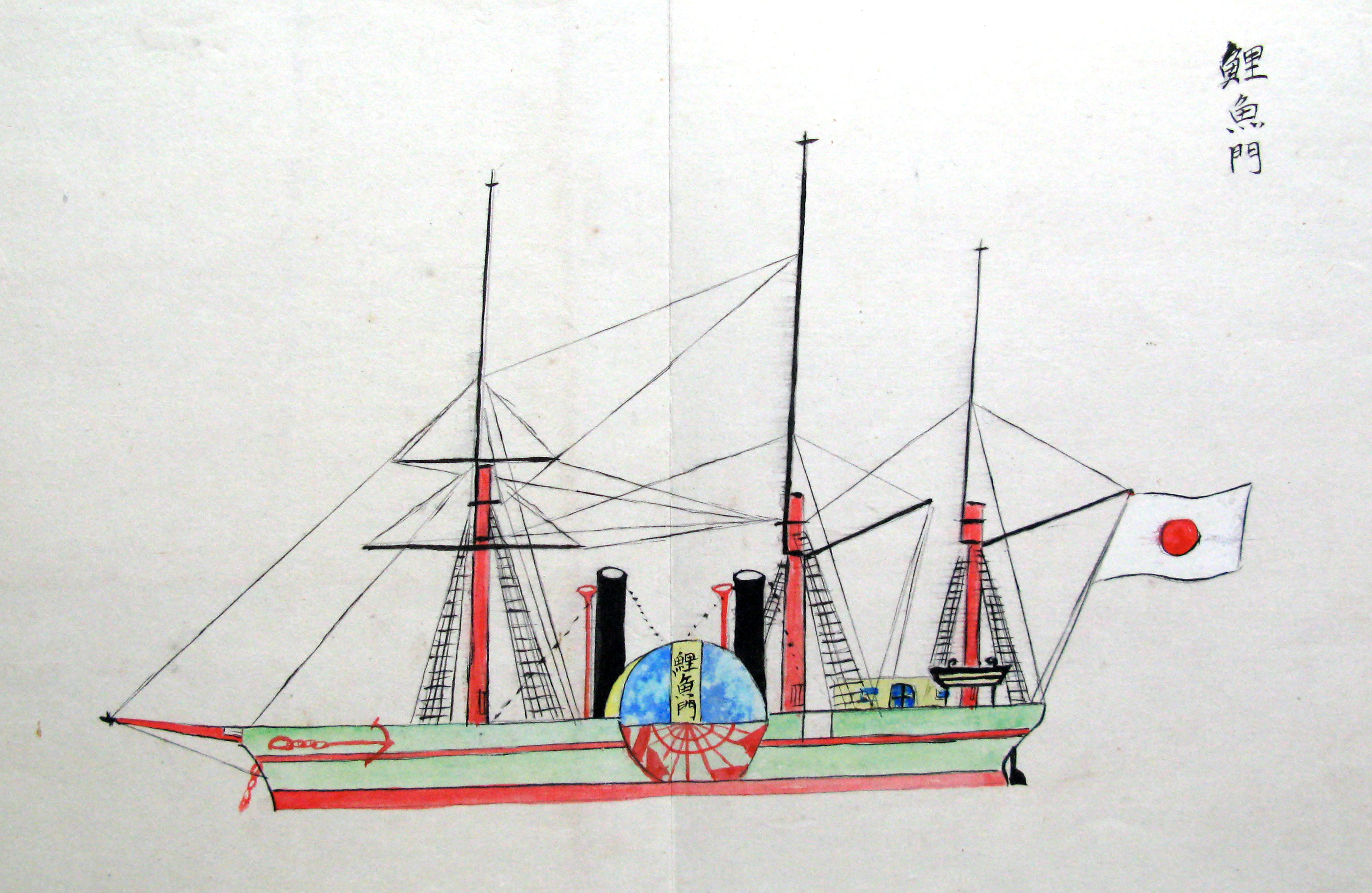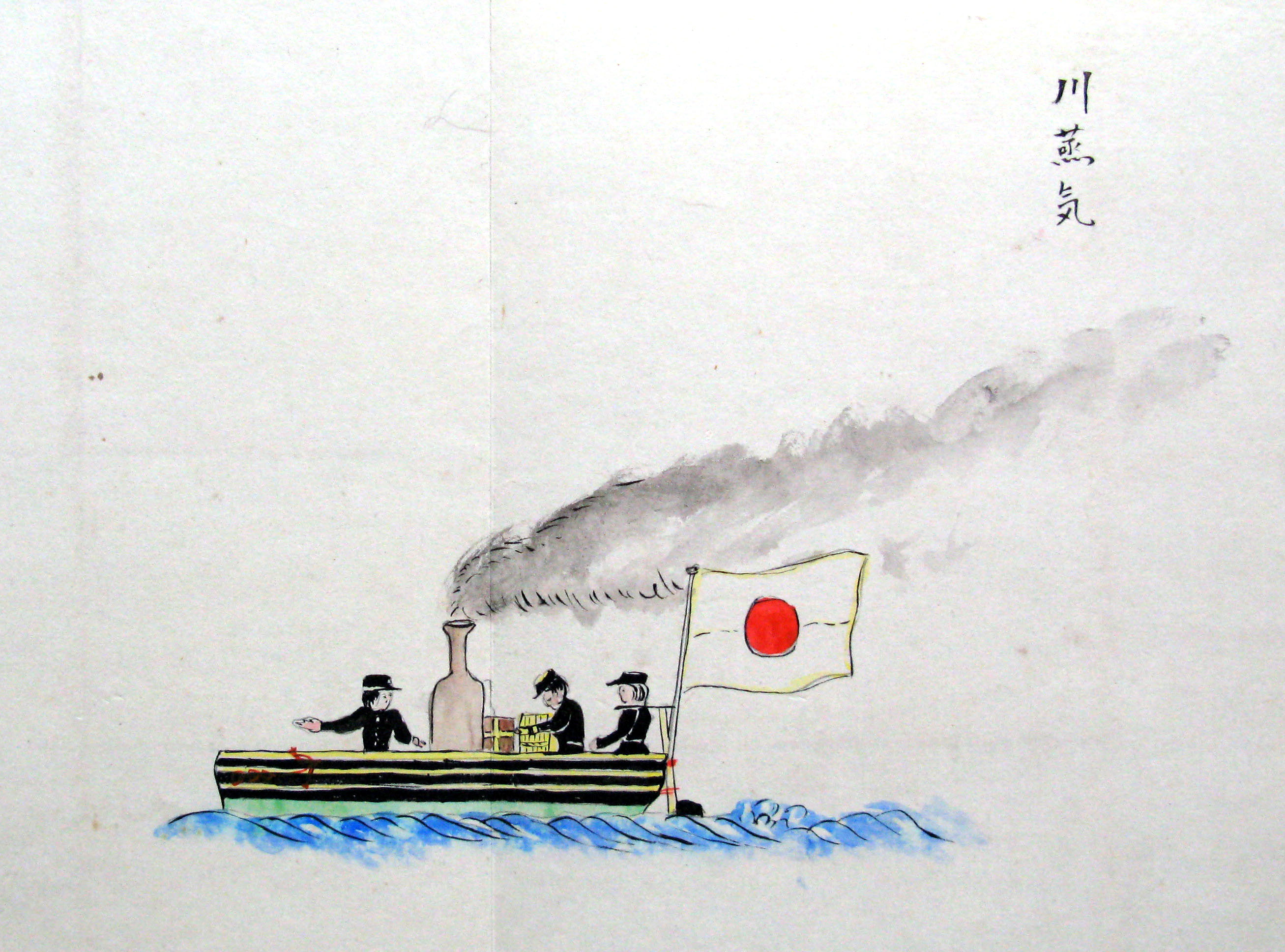 折本(紙本着色) 幕府が所有していた軍艦など37隻が描かれ、後半には箱館港に集結する軍艦・宮古湾での海戦の様子、江差で座礁する開陽などを描いた部分が含まれています。