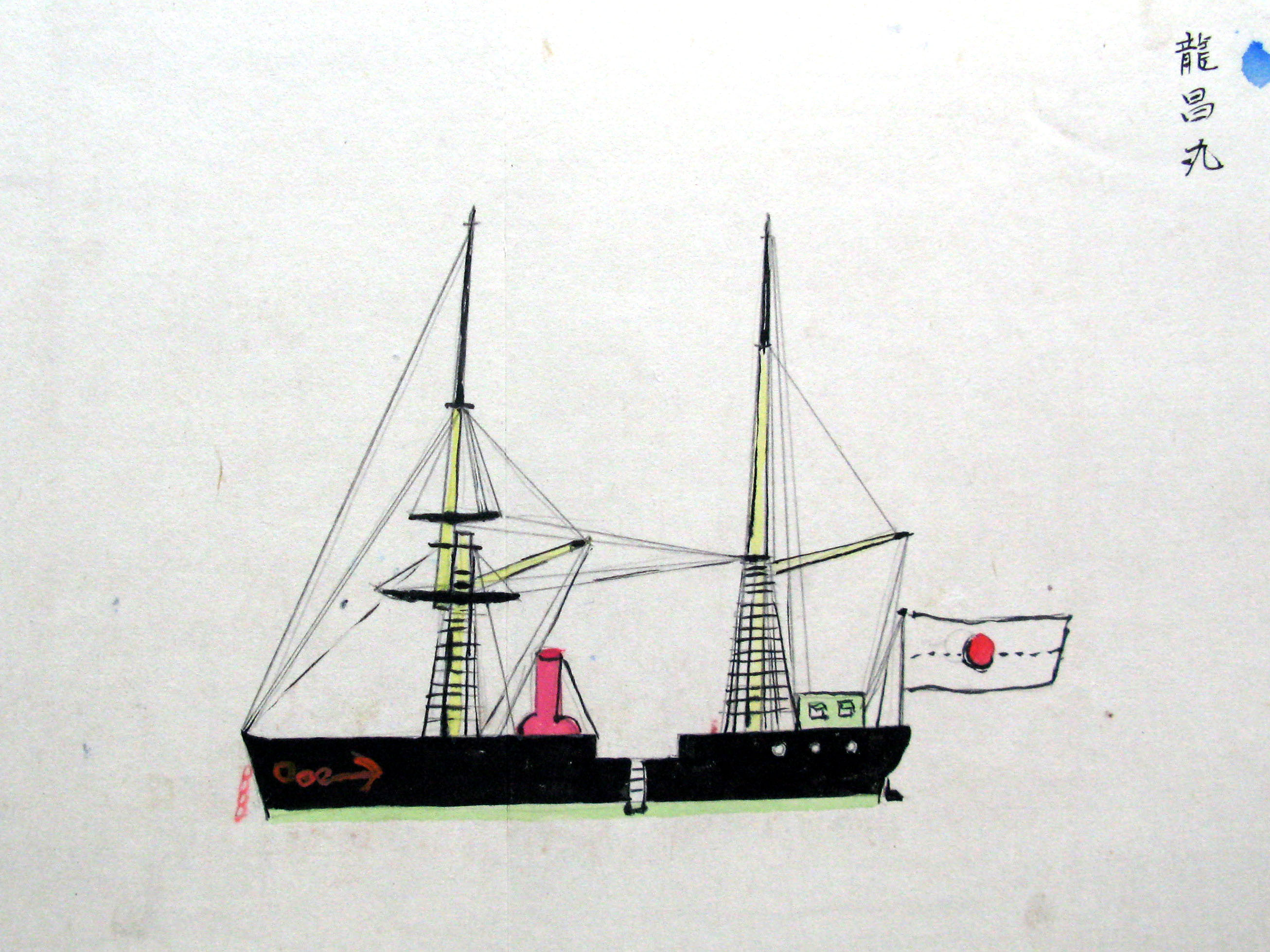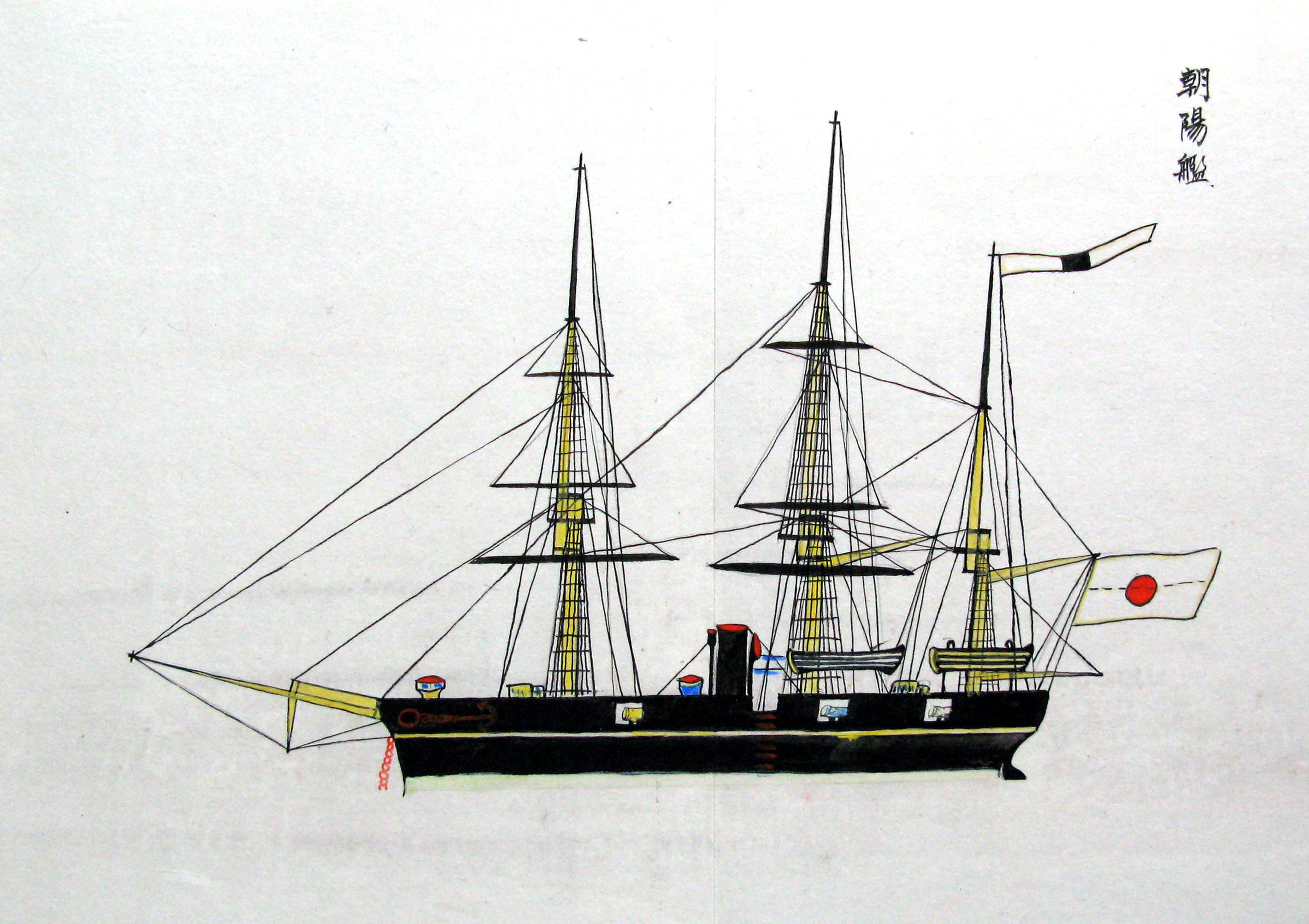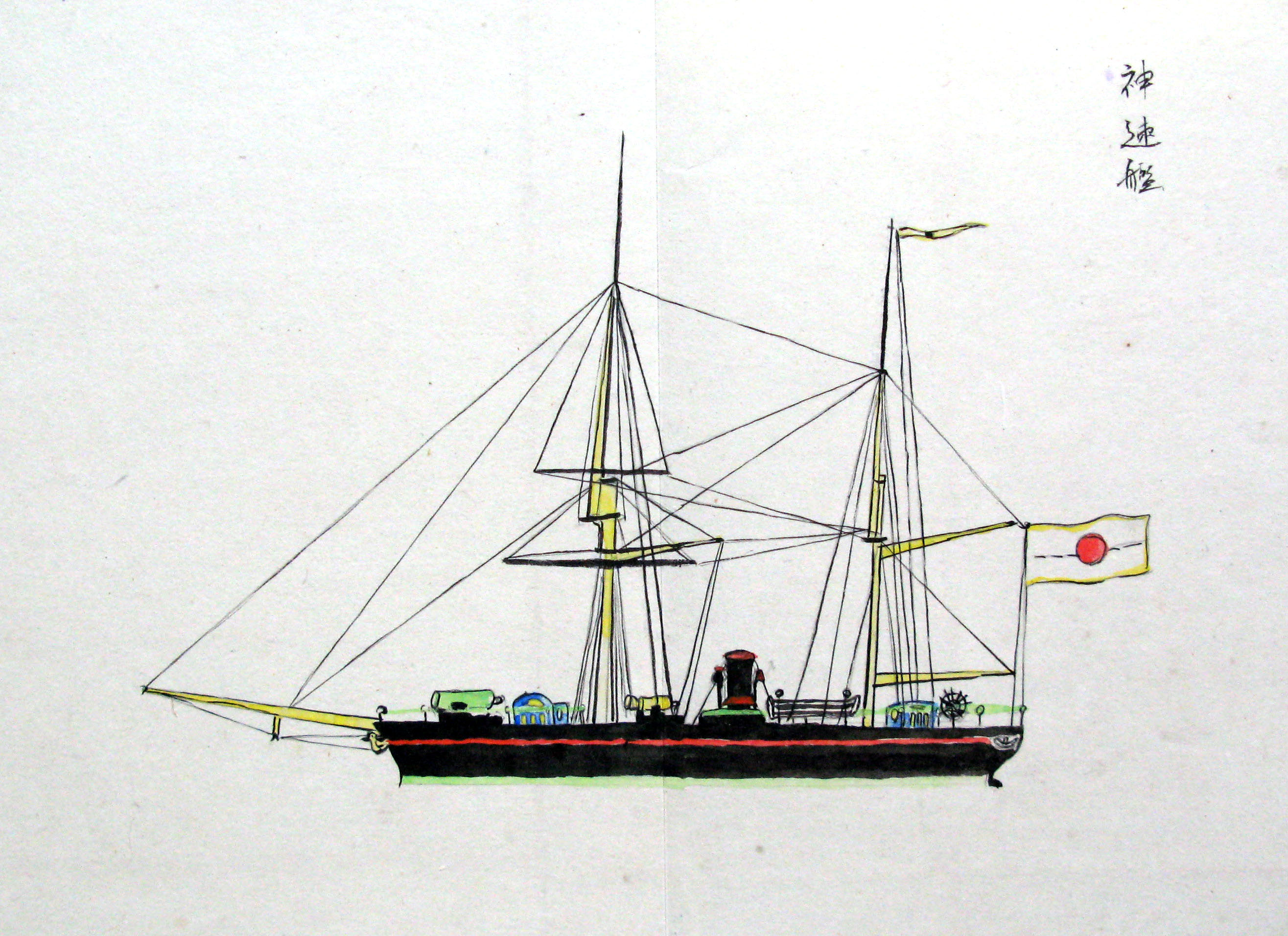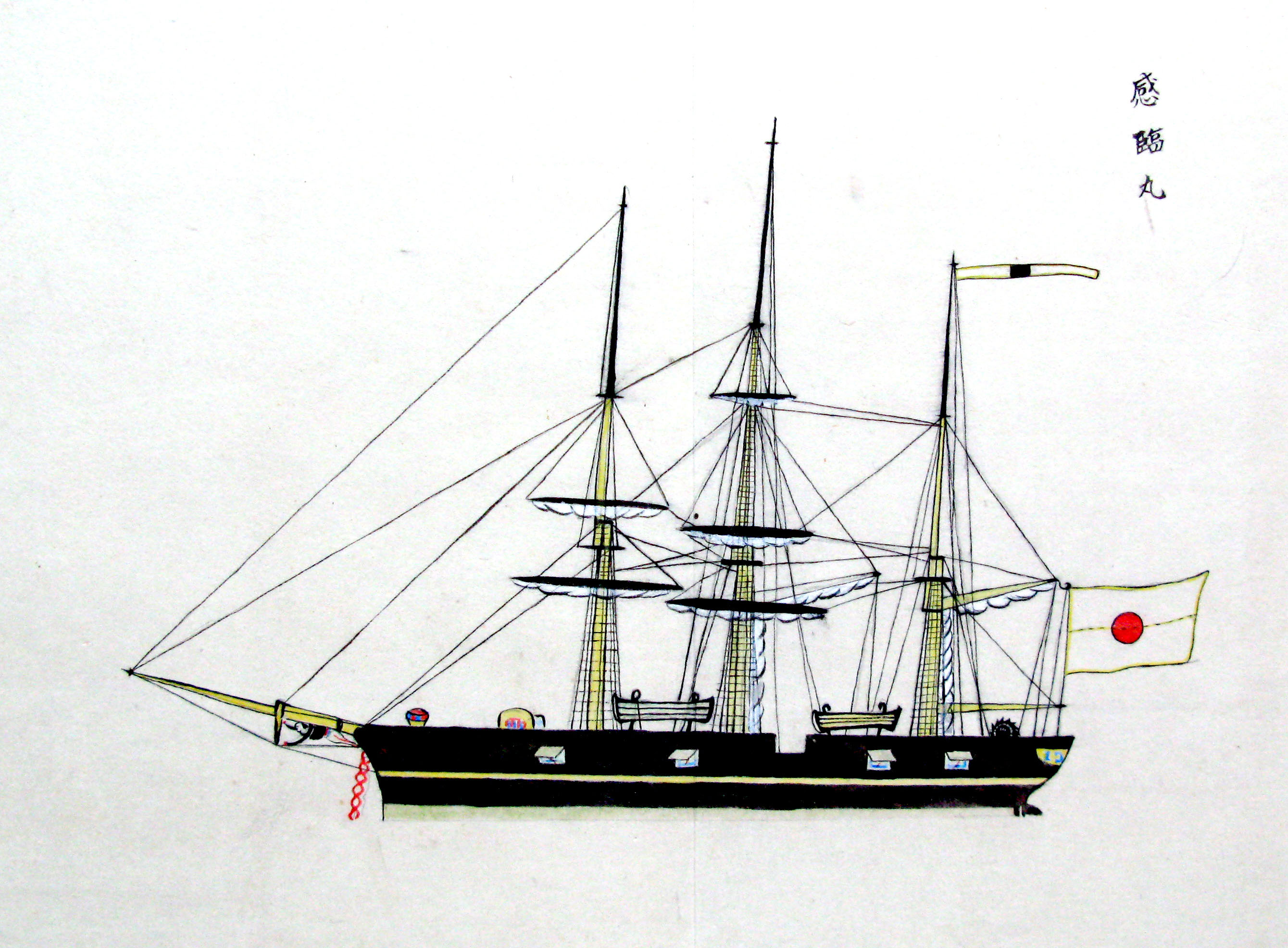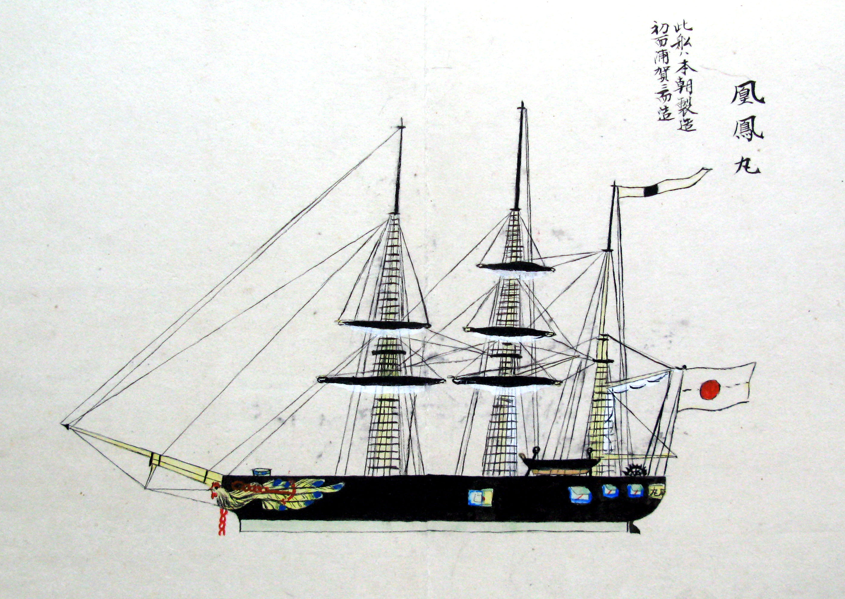 折本(紙本着色) 幕府が所有していた軍艦など37隻が描かれ、後半には箱館港に集結する軍艦・宮古湾での海戦の様子、江差で座礁する開陽などを描いた部分が含まれています。