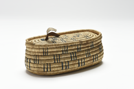 収集地:北千島 シュムシュ島,コイリング 丸型 蓋付 黒木綿糸で文様