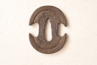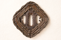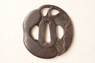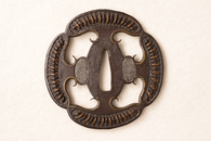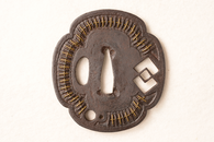 鉄地 木瓜形 小透 真鍮 鉄籠目象嵌