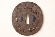 鉄地 長丸形 鉄金象嵌 銘:信光作