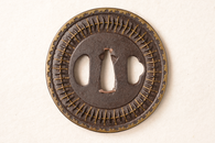 鉄地 丸形 真鍮 鉄籠目象嵌