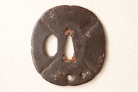 鉄地 丸形 小透 真鍮象嵌